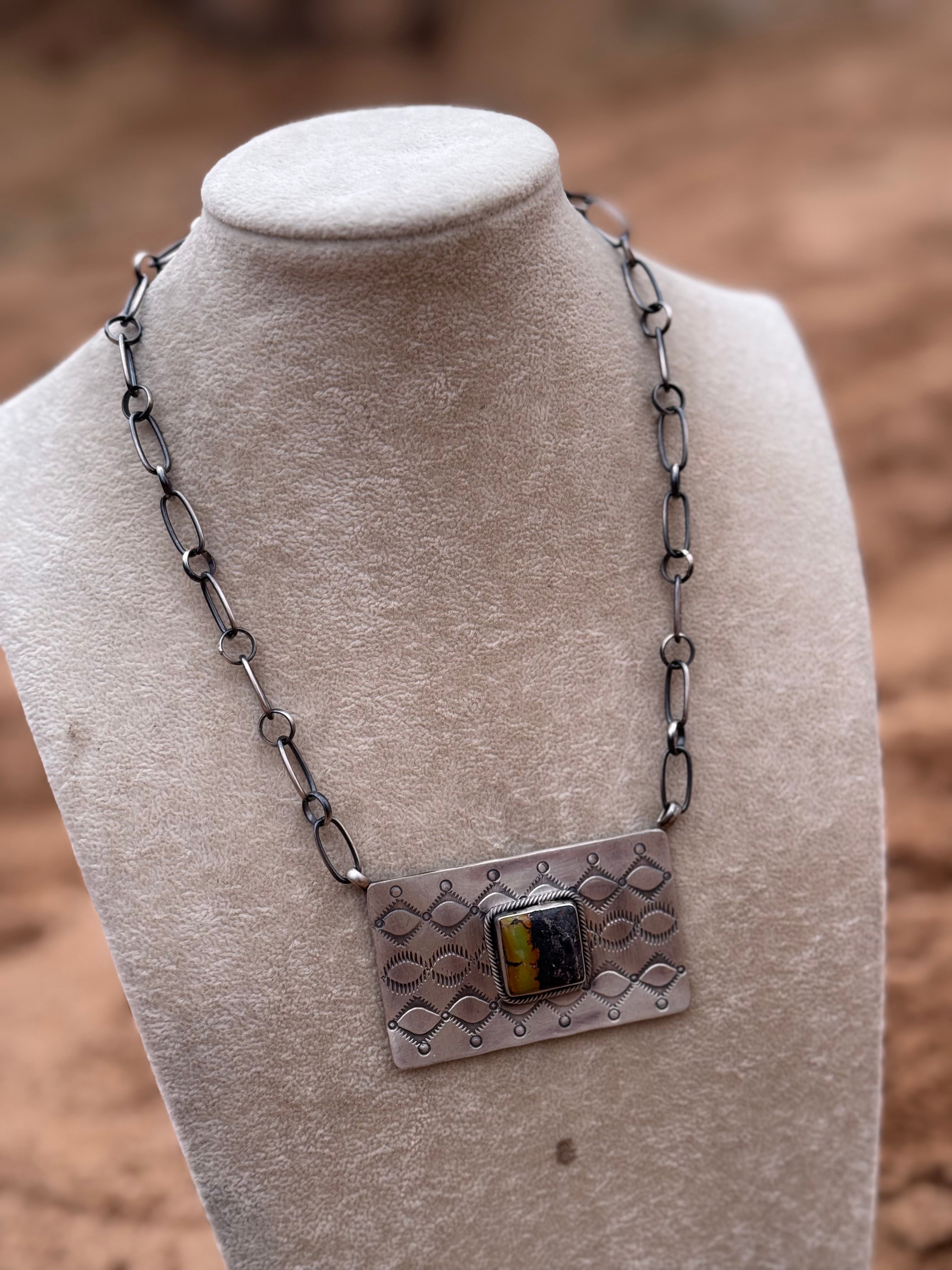 Danny Henio Black Jack Turquoise & Sterling Silver Bar Necklace