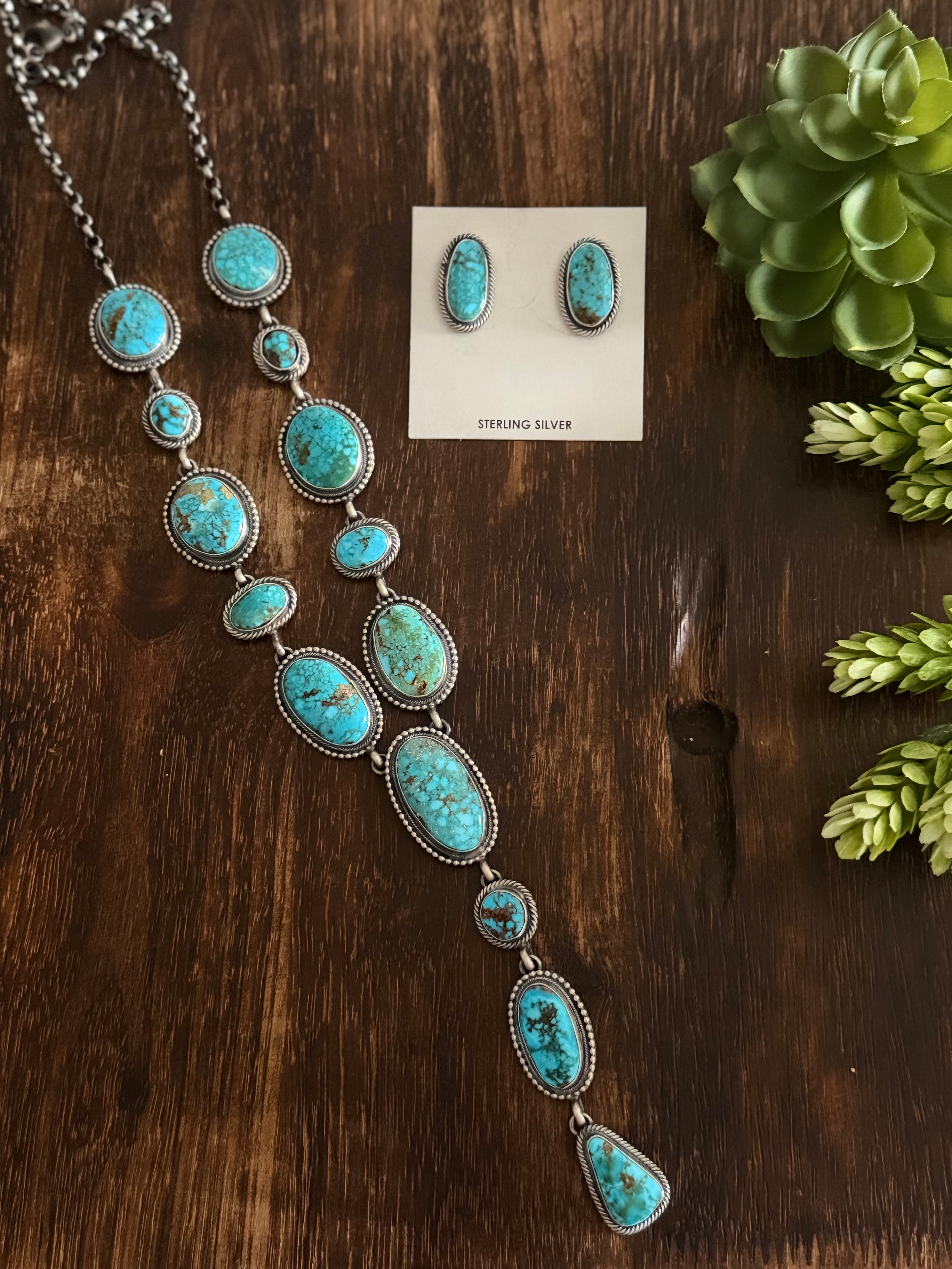 Darrin Livingston Kingman Turquoise & Sterling Silver Lariat Necklace Set