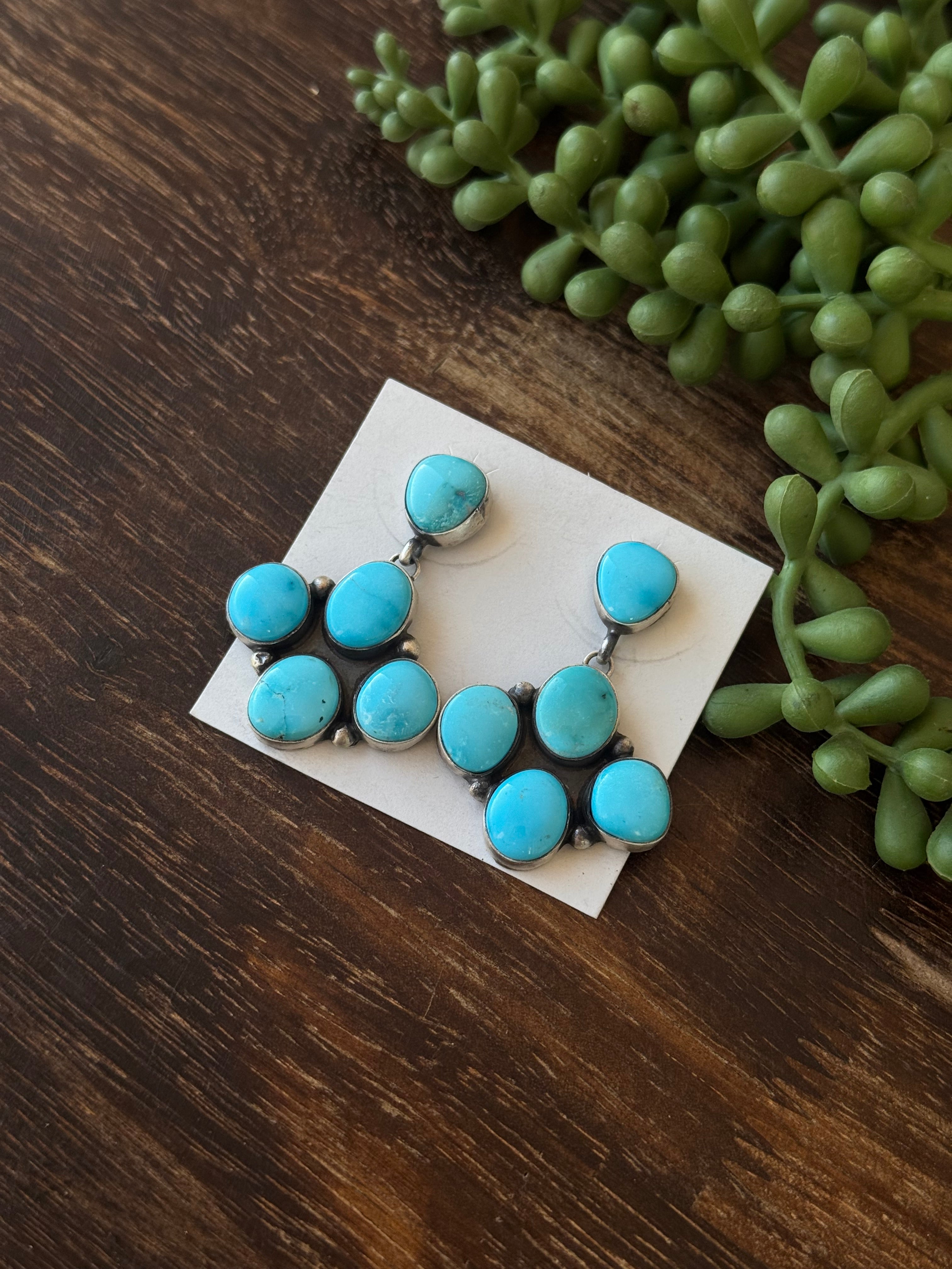 Darrin Livingston Blue Ridge Turquoise & Sterling Silver Post Dangle Cluster Earrings