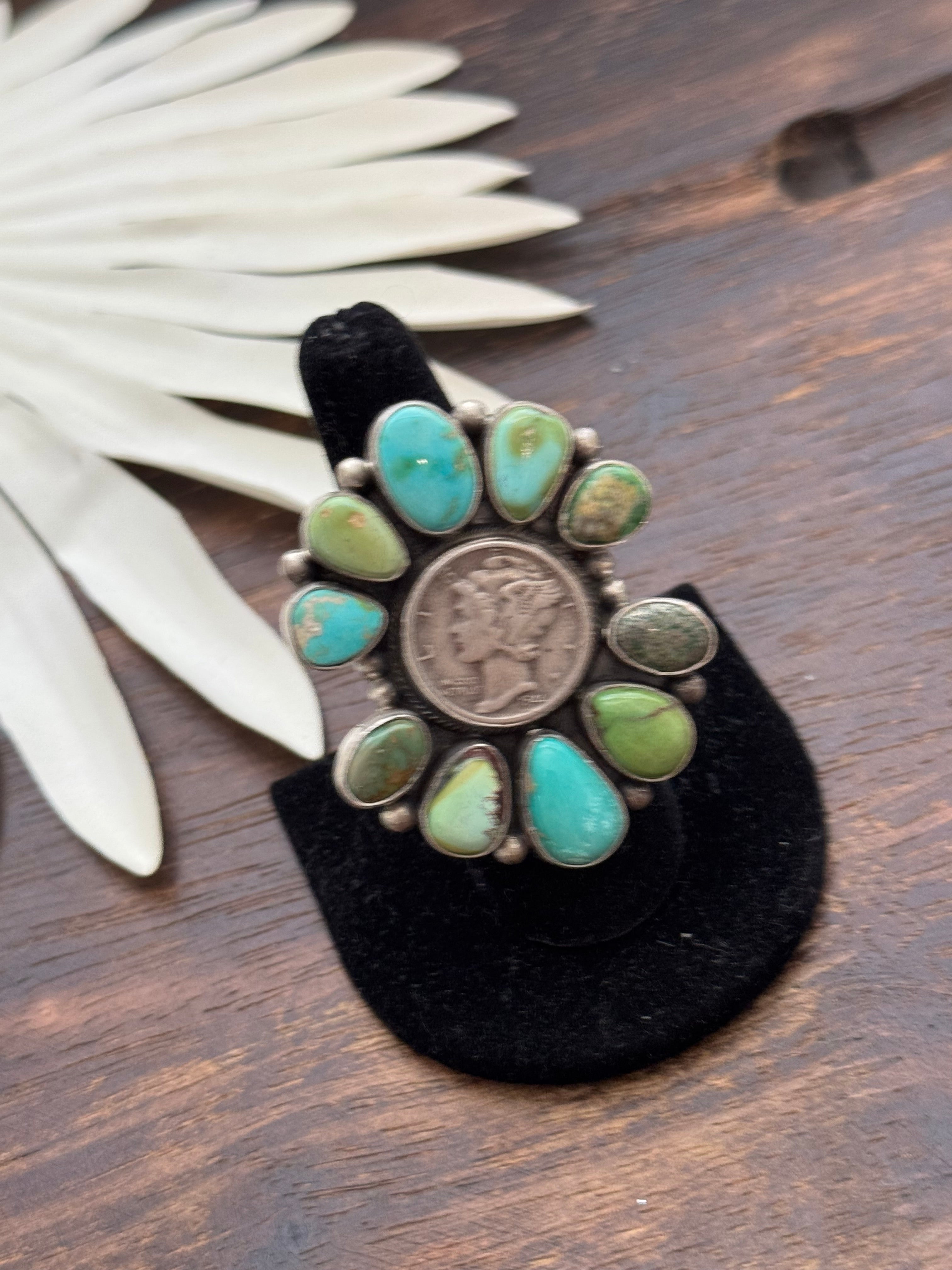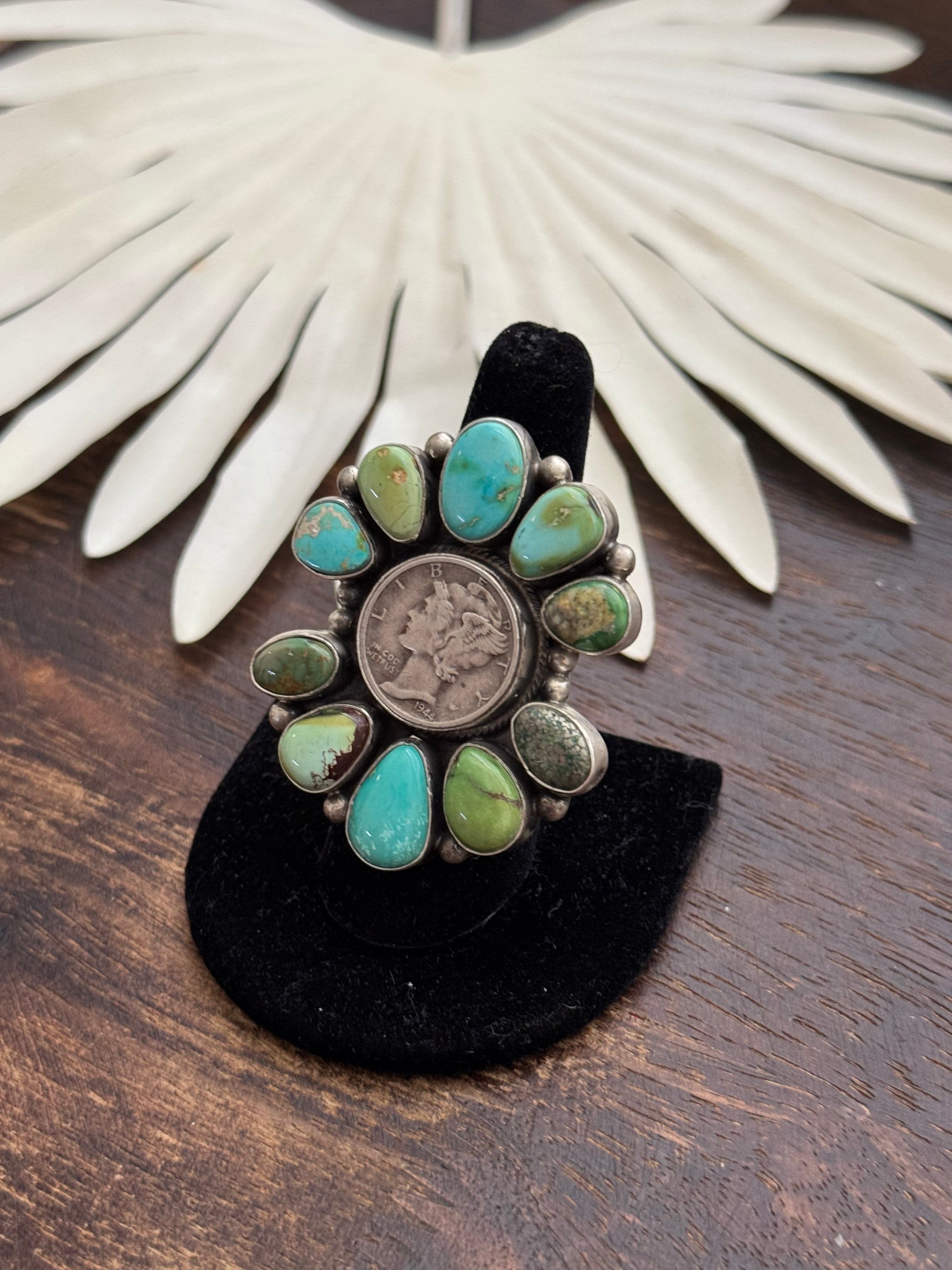Dave Skeets Multi Stone & Sterling Silver Cluster Liberty Coin Ring Size 8.5