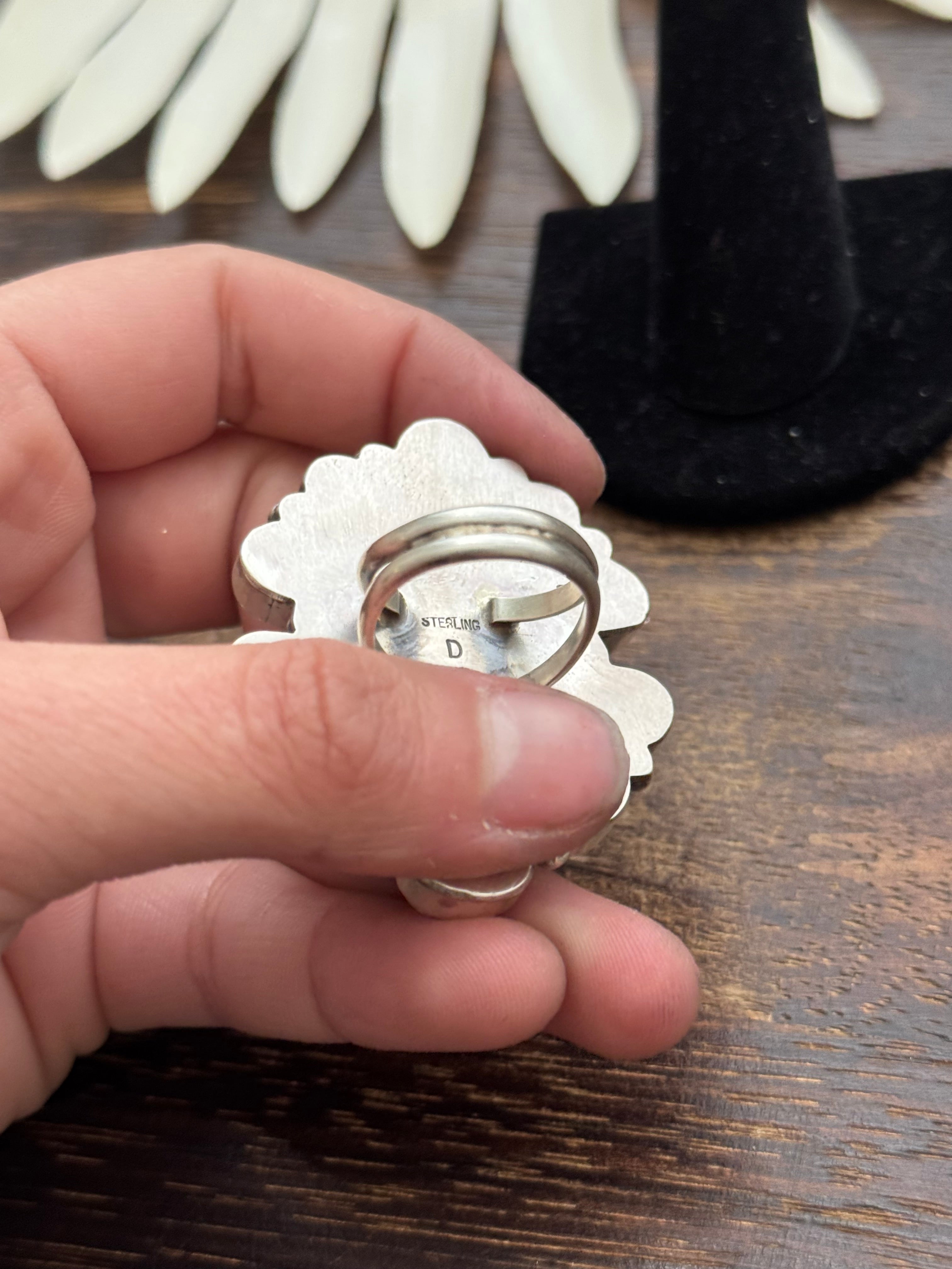 Beautiful ring. Dave Skeets Multi Stone & Sterling Silver Cluster Liberty Coin Ring Size 8.5. It measure 1 7/8 inches long and just over 1 1/2 inches wide. Stamped and signed.