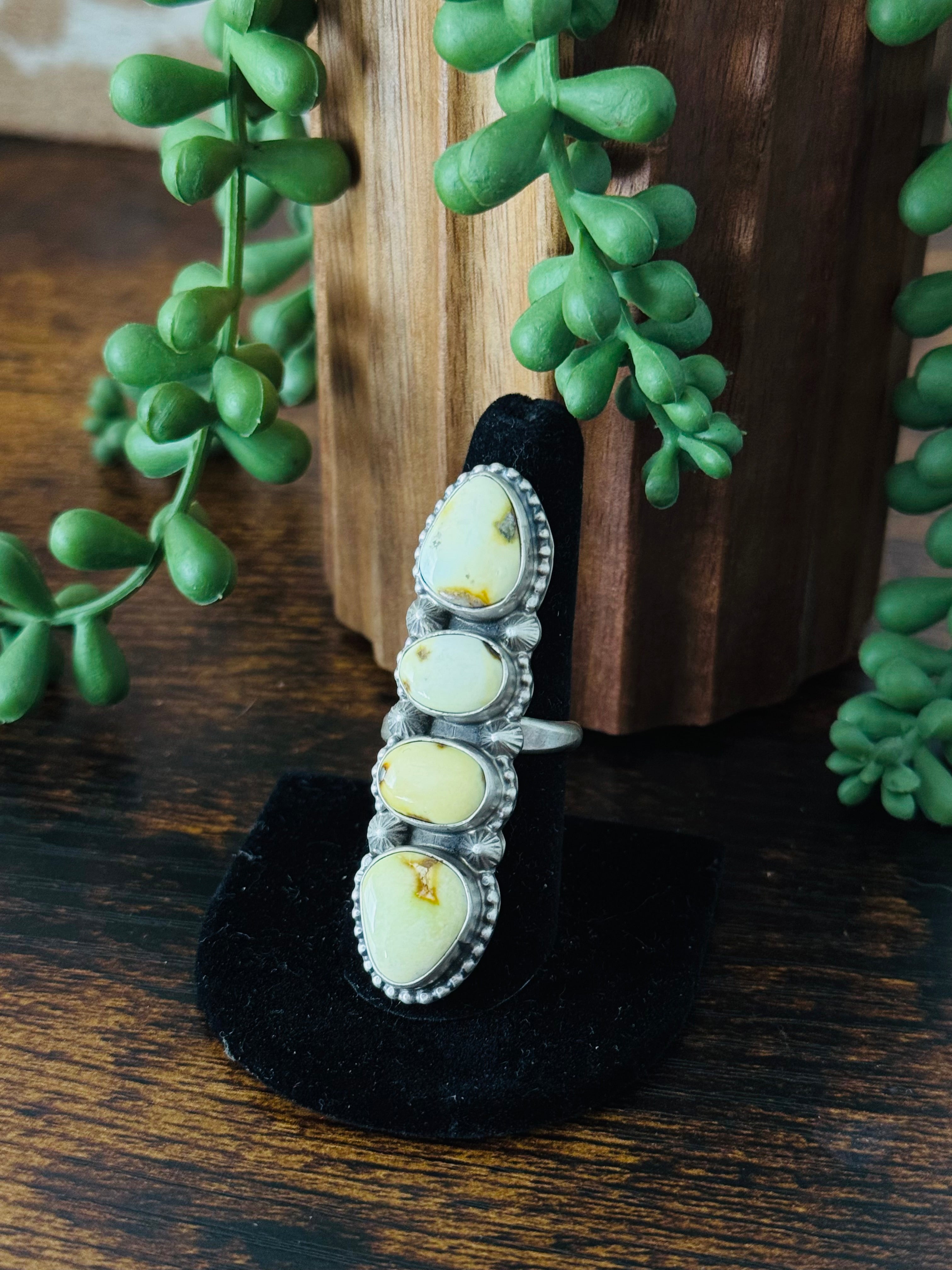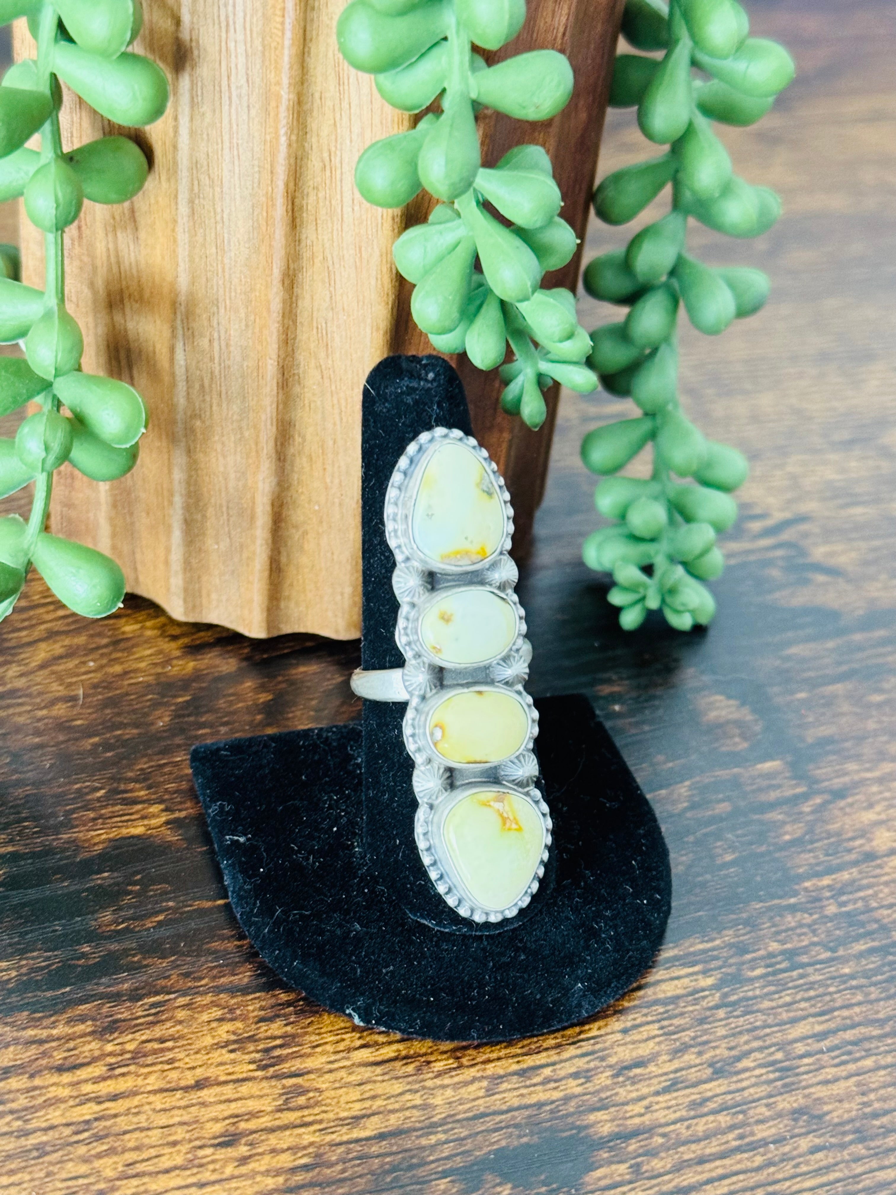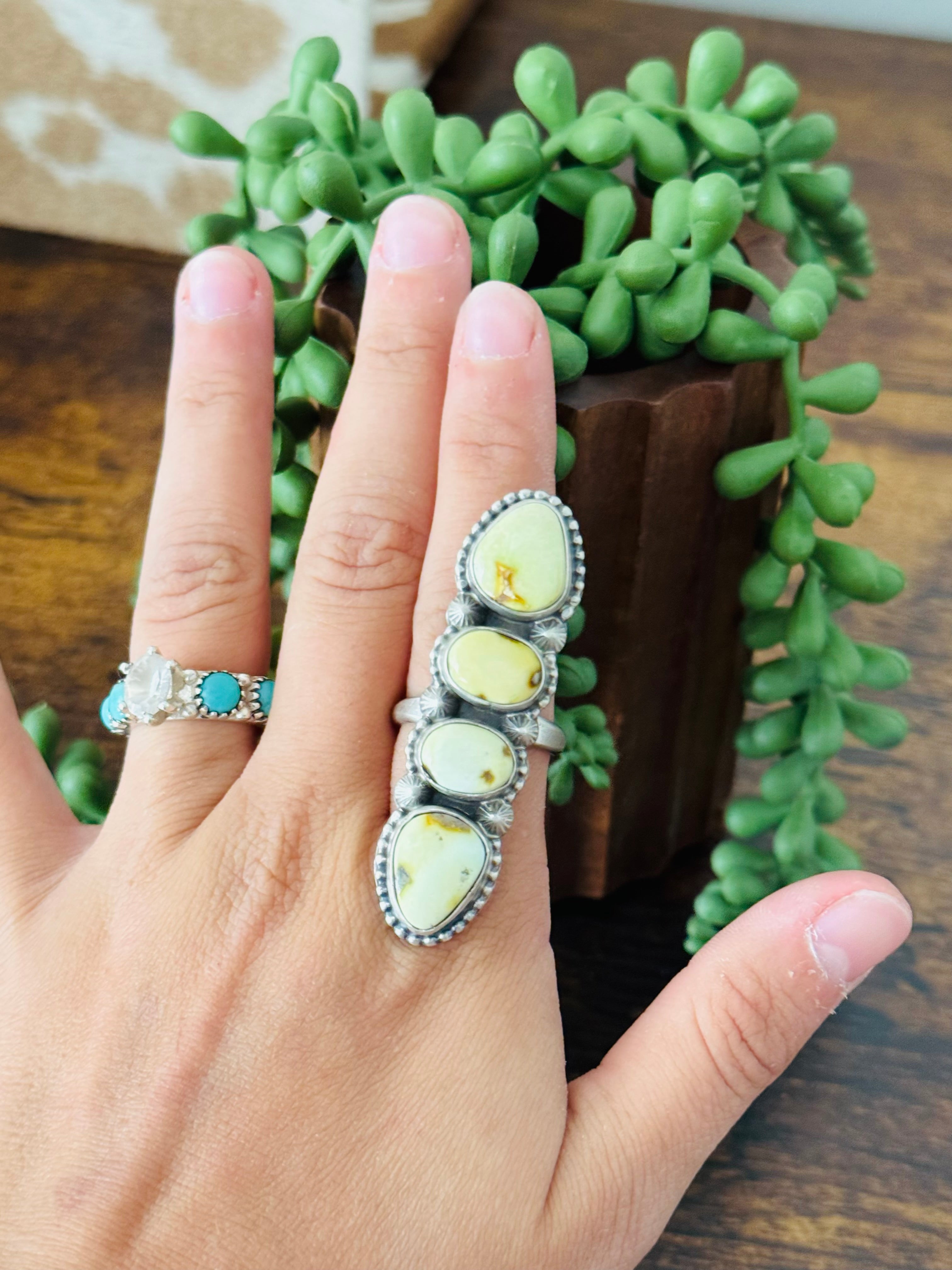 Beautiful ring. Dave Skeets Palomino Variscite & Sterling Silver Adjustable Ring. It measure 2 1/2 inches long and 3/4 of an inch wide.