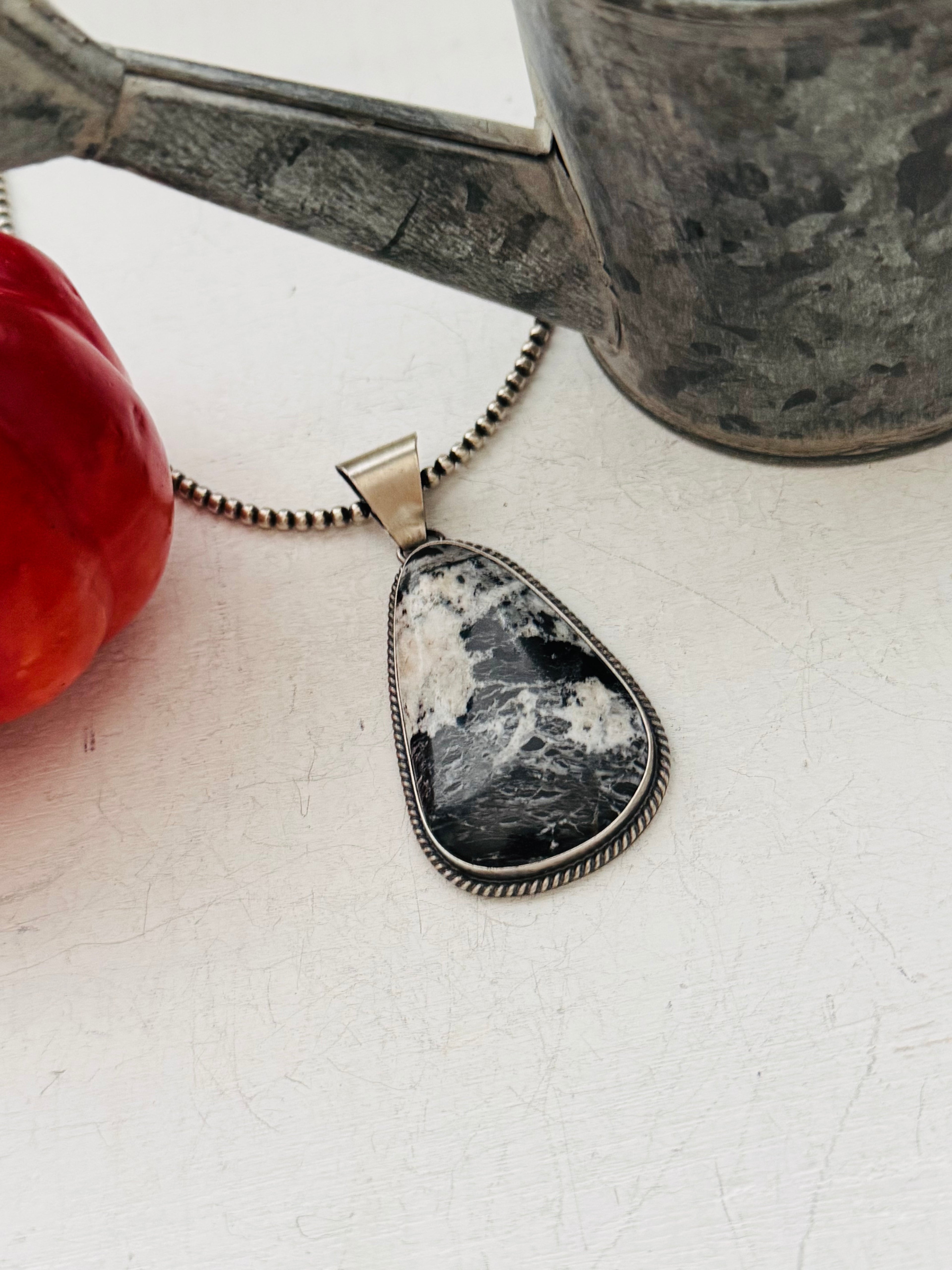 Dave Skeets White Buffalo & Sterling Silver Pendant