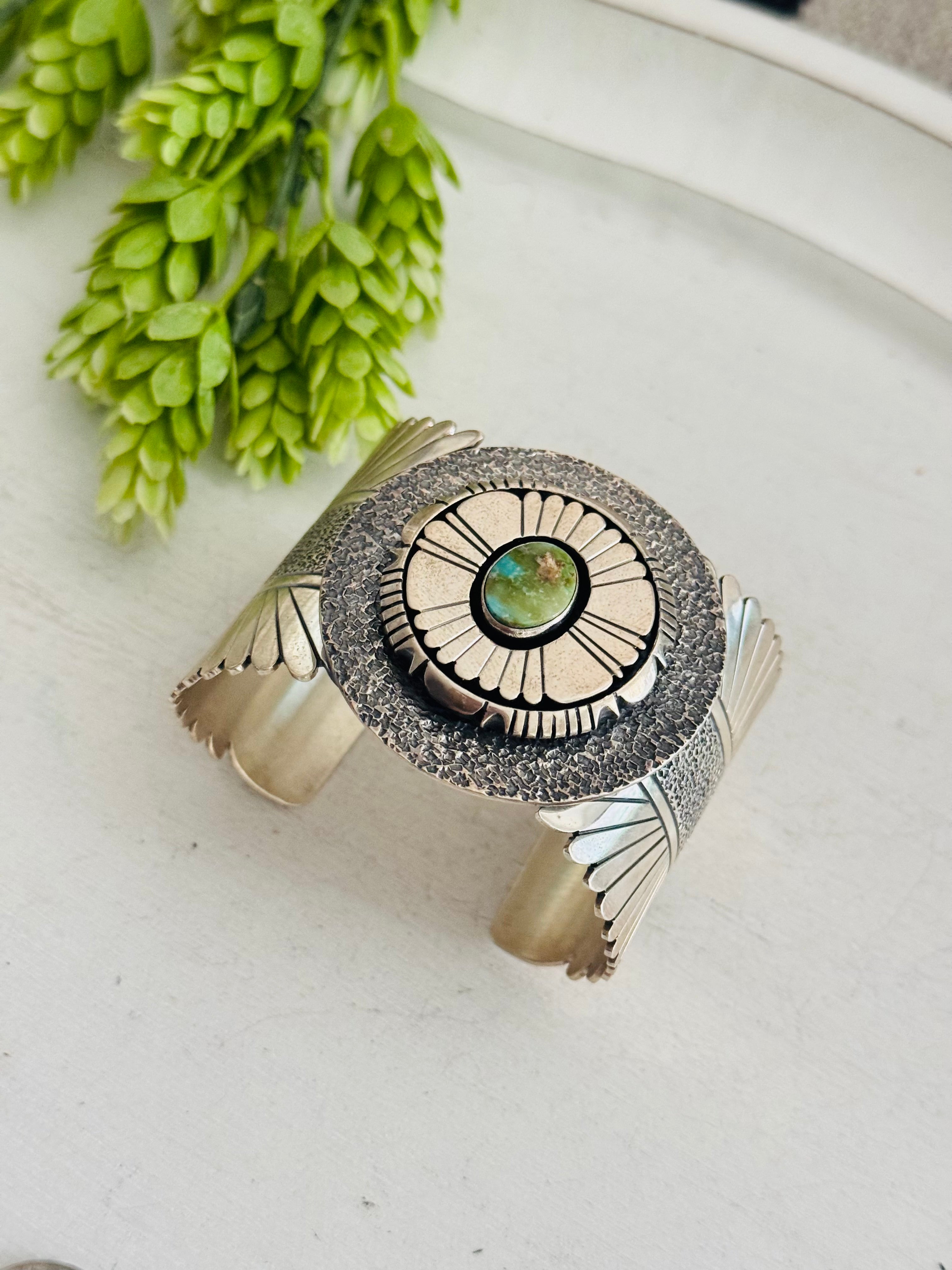David Benally Sonoran Mountain Turquoise & Sterling Silver Cluster Cuff Bracelet