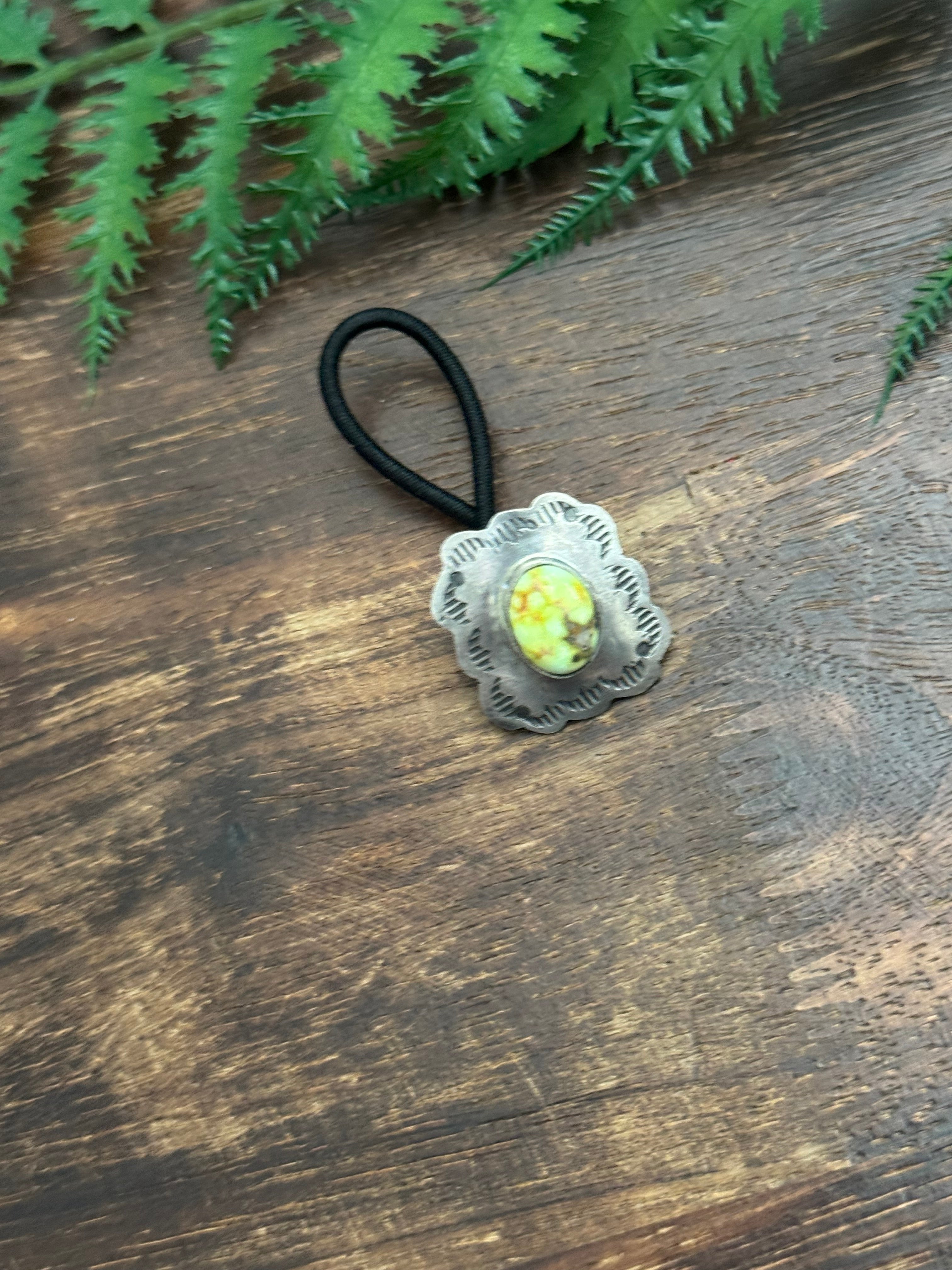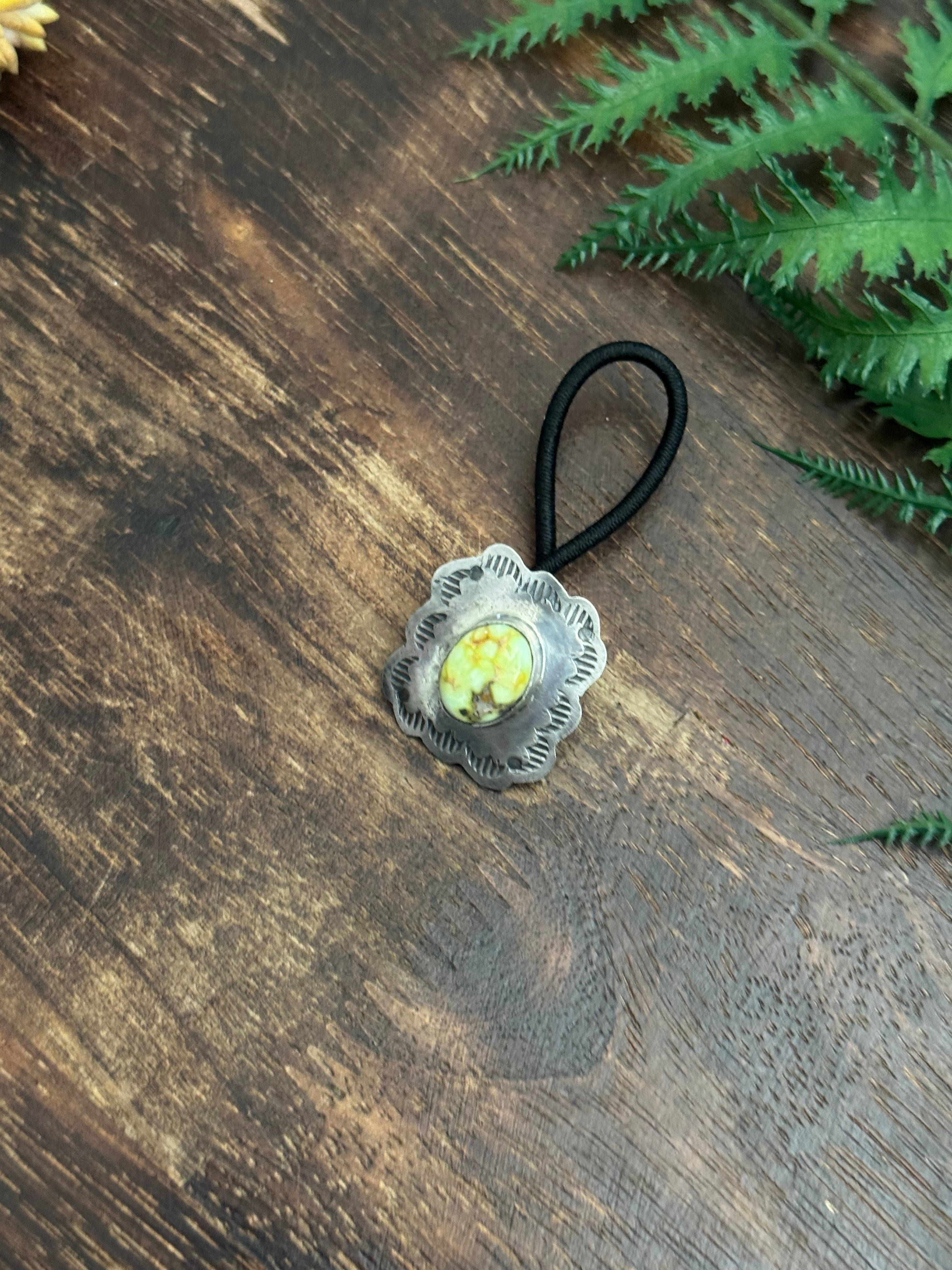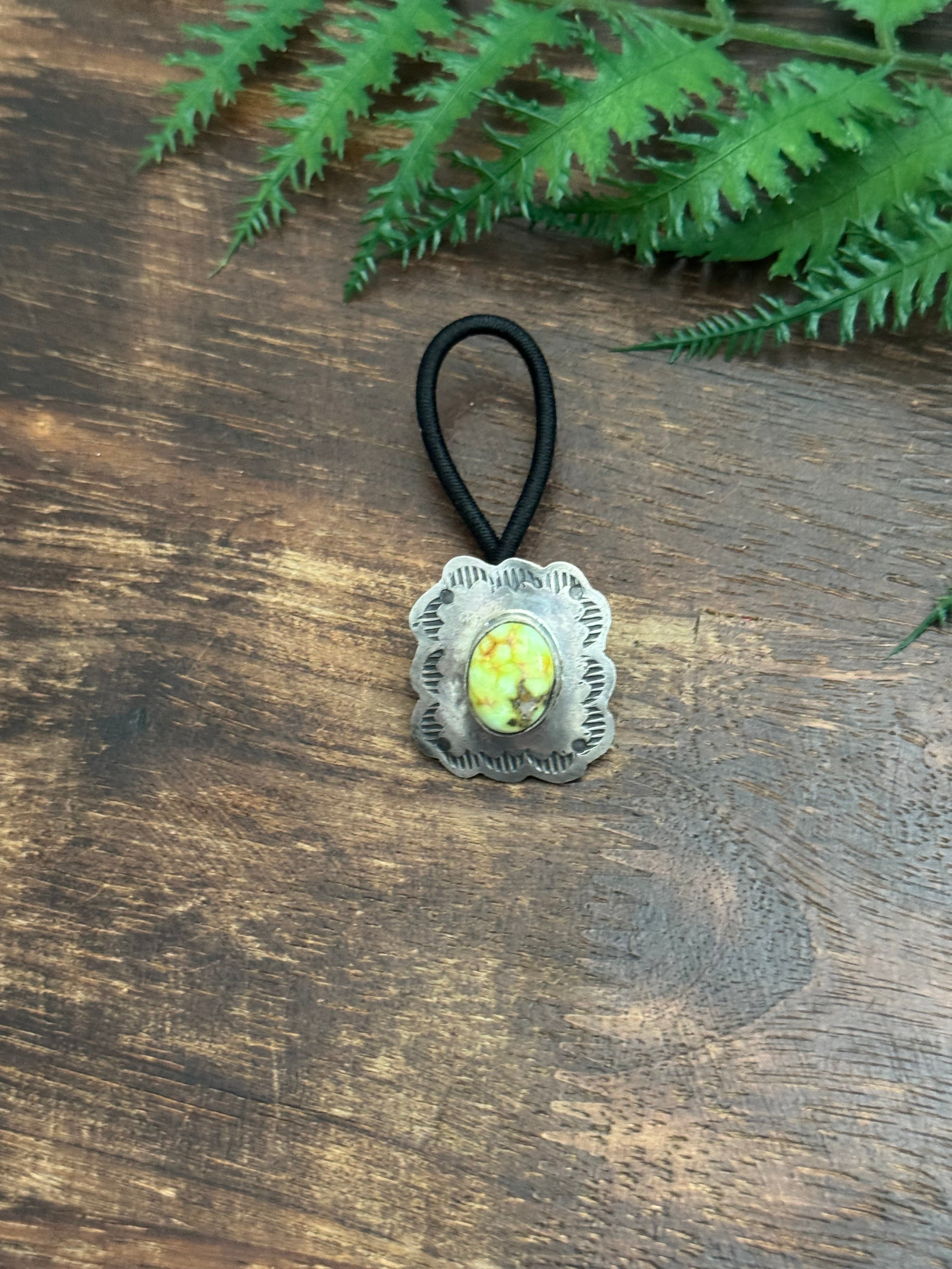 David Hoskins Palomino Variscite & Sterling Silver Concho Ponytail Holder