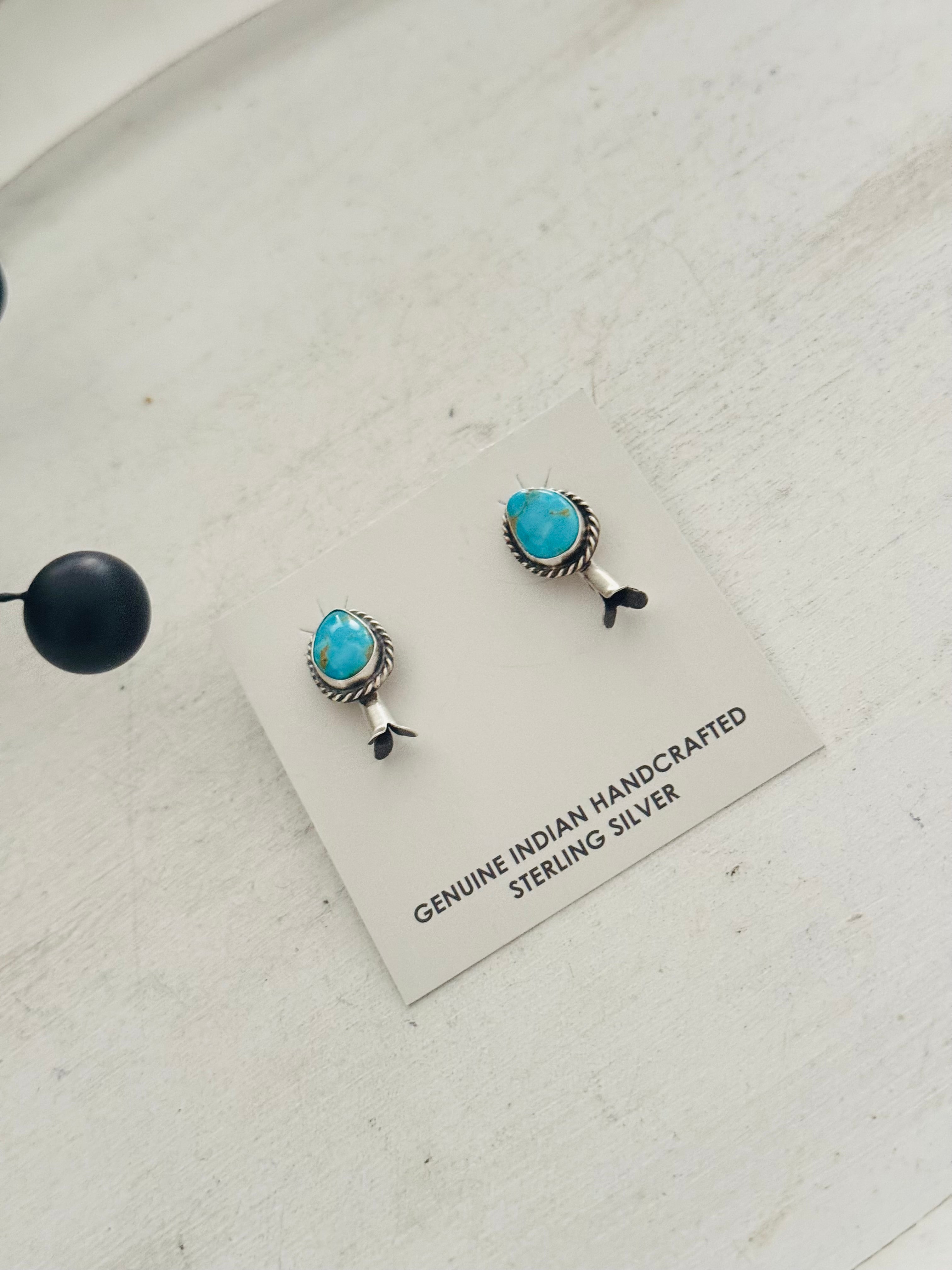 Donovan Nez Kingman Turquoise & Sterling Silver Post Dangle Blossom Earrings