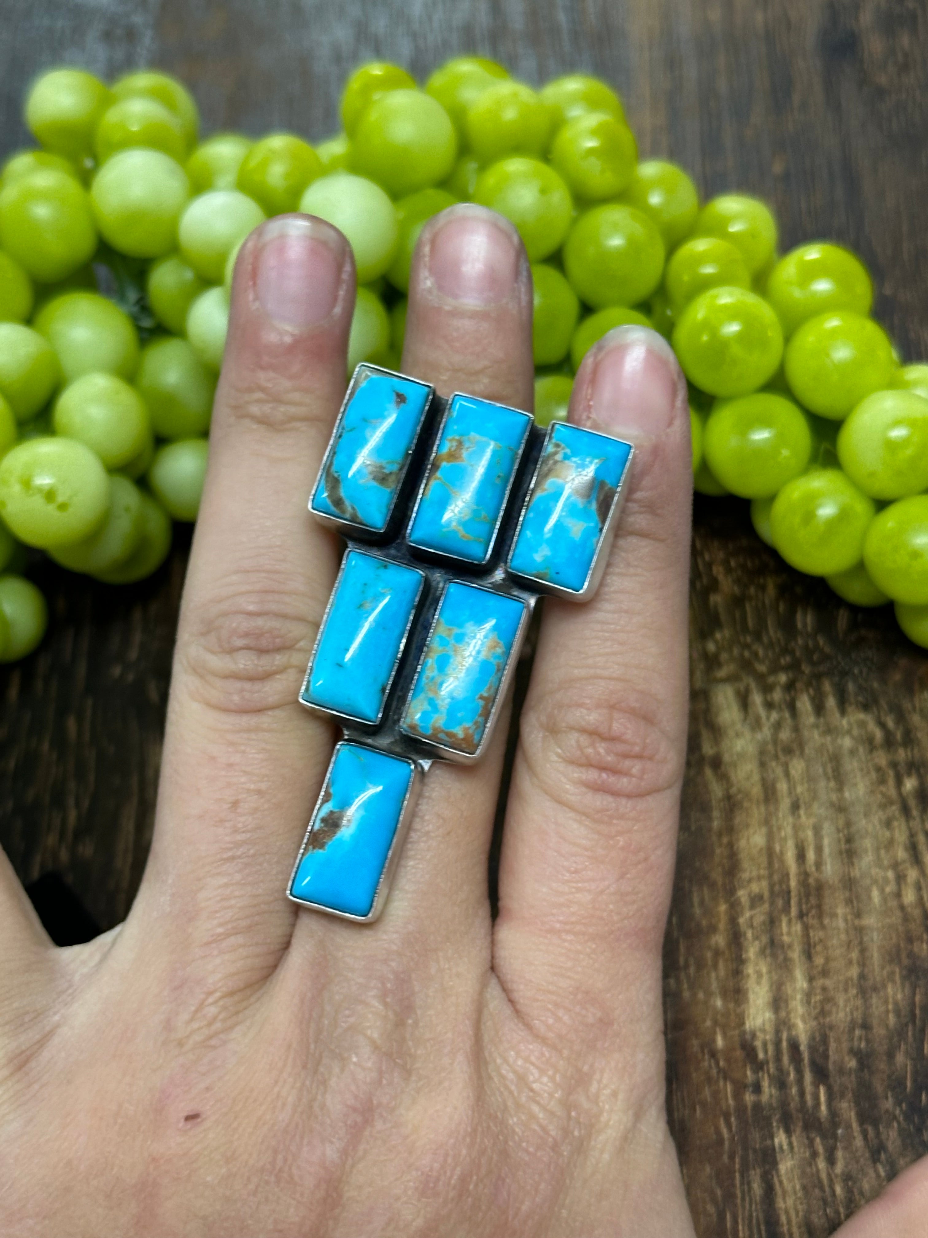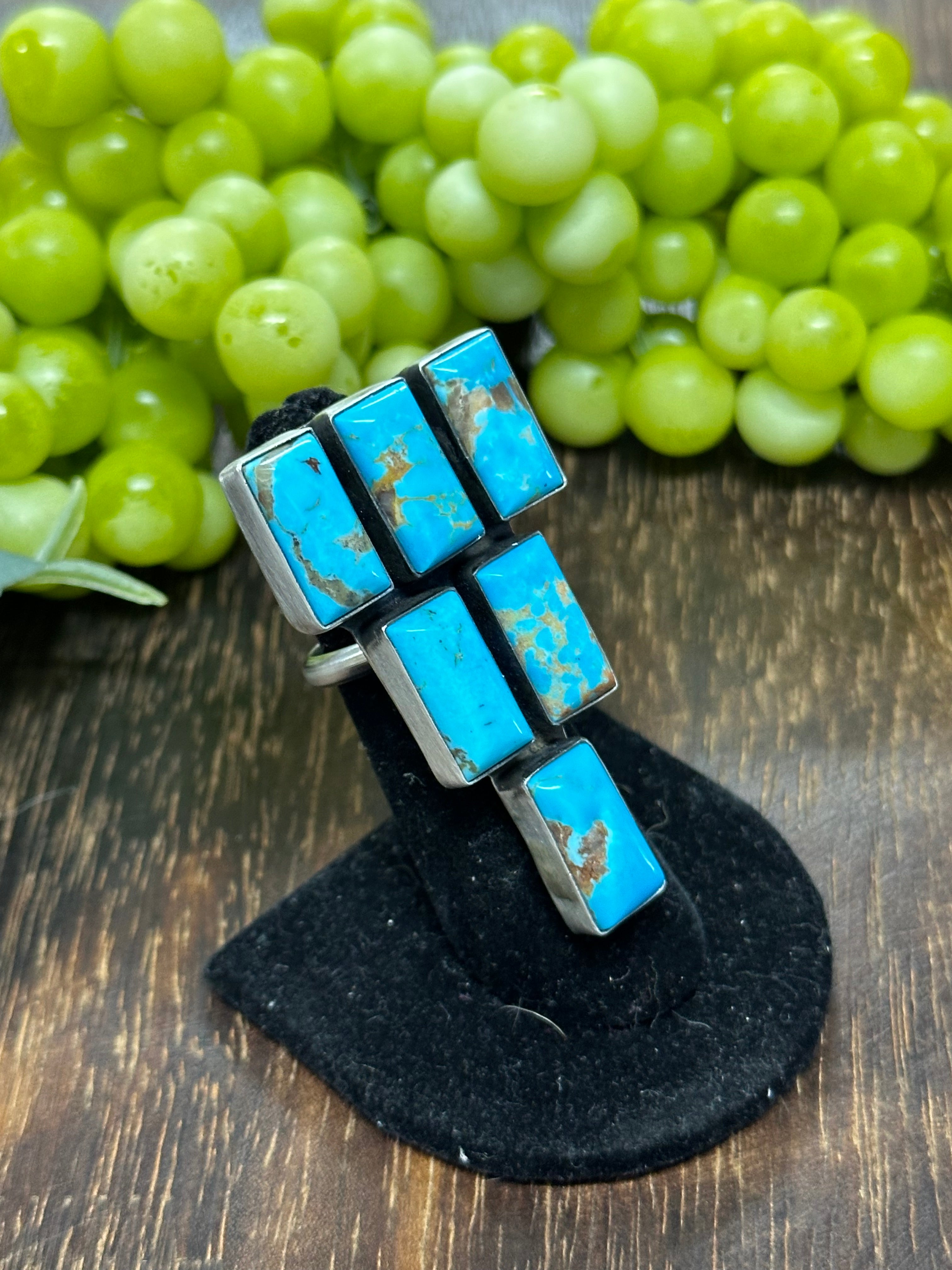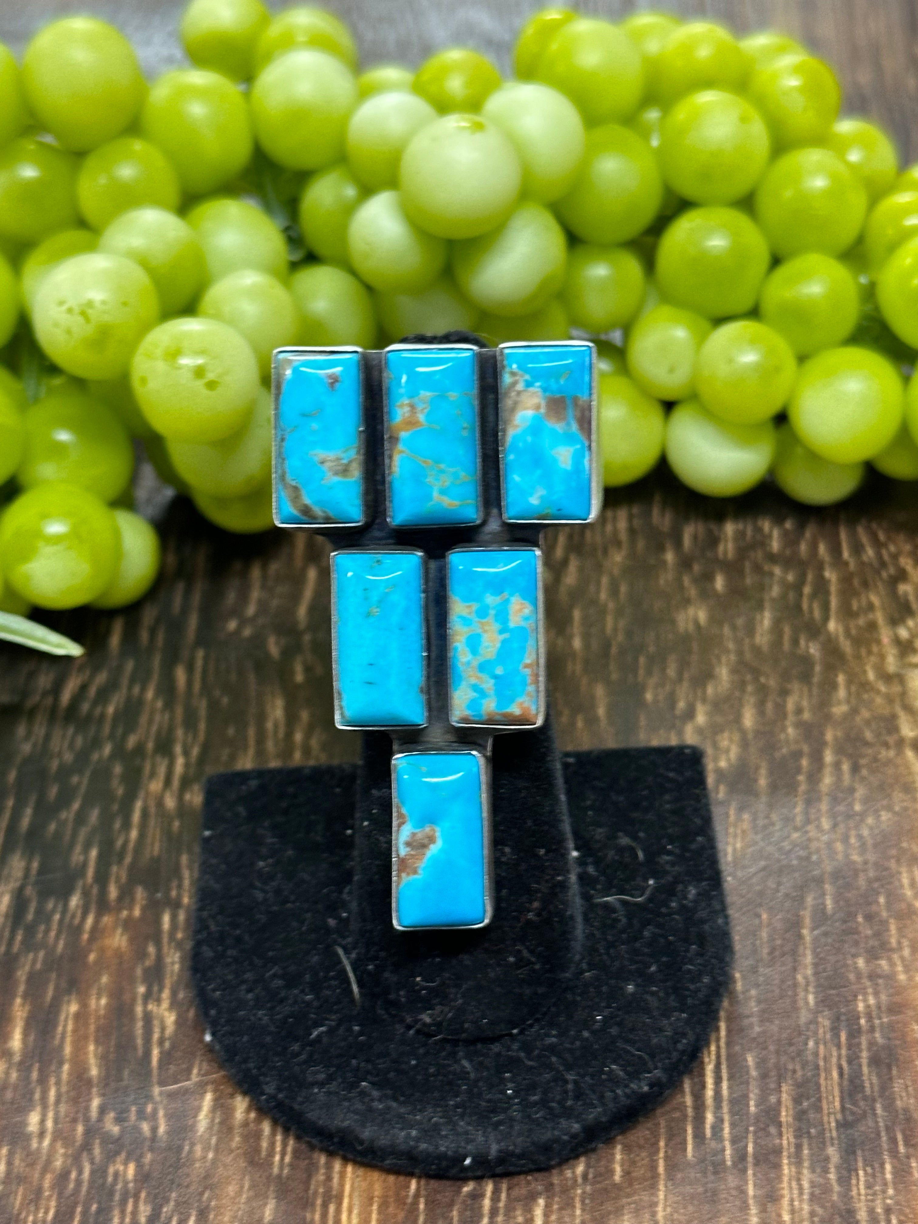 Beautiful Necklace and ring. Donovan Skeets Kingman Turquoise & Sterling Silver Cluster Necklace & Adjustable Ring Set. It measures 25 1/2 inches long with hang while the chain measures 19 inches long. The ring measures 2 1/4 inches long and 1 1/4 inches wide. Stamped sterling silver and signed by artist.