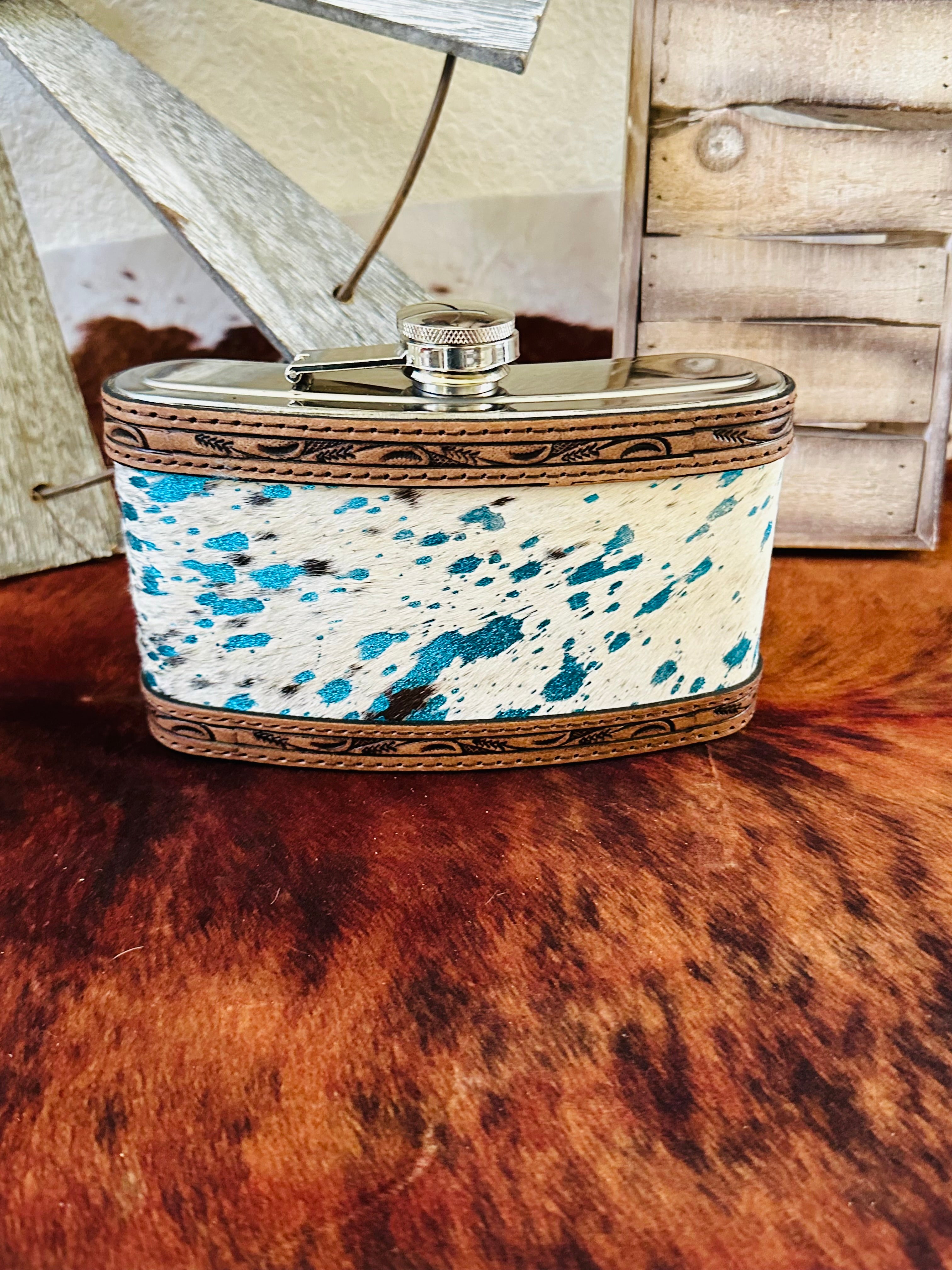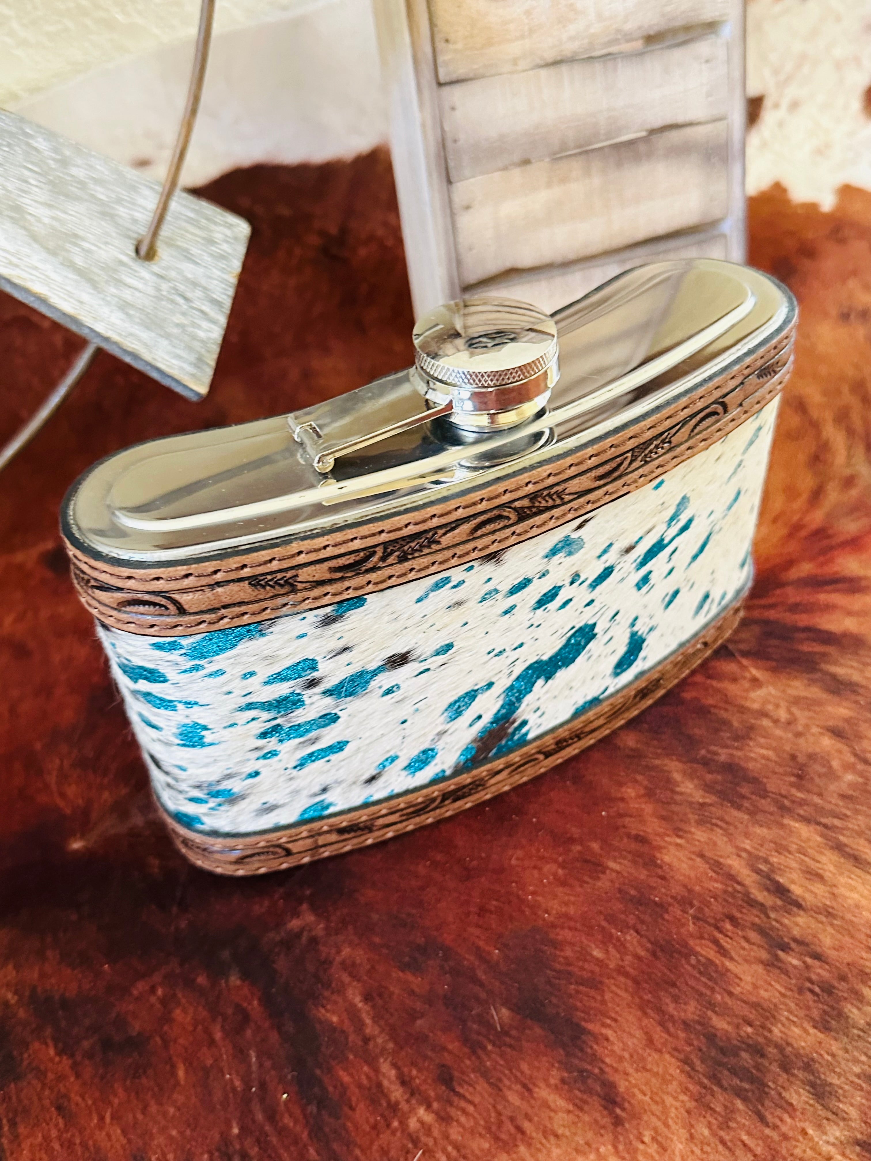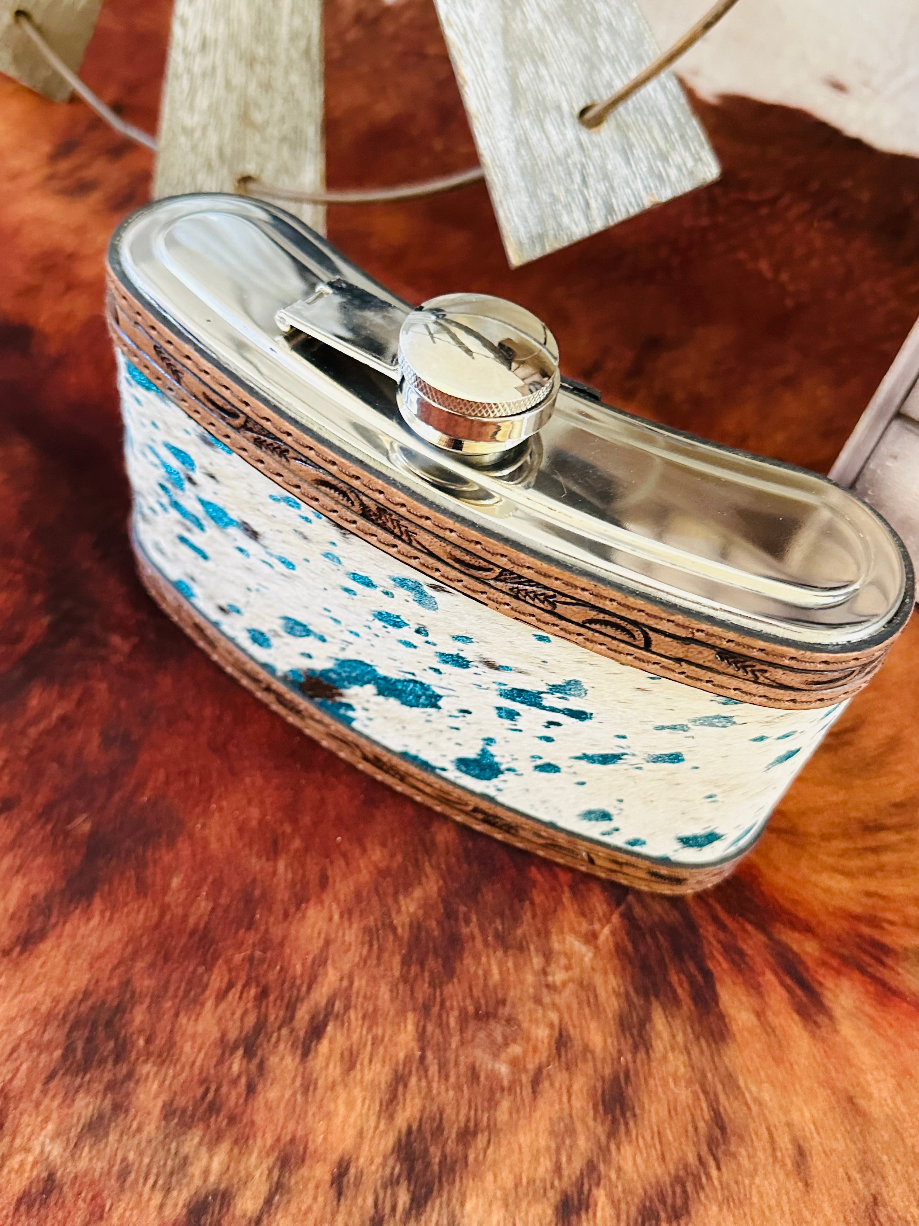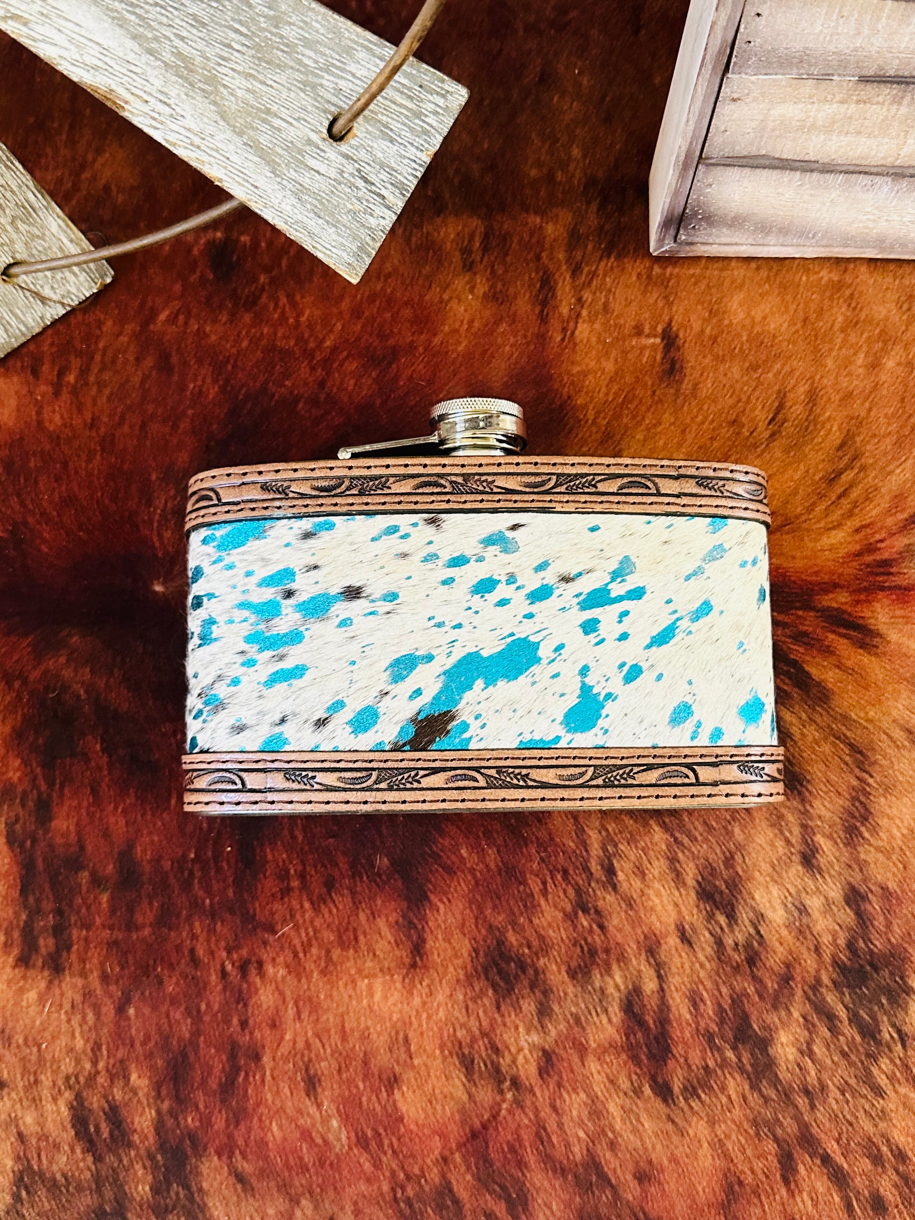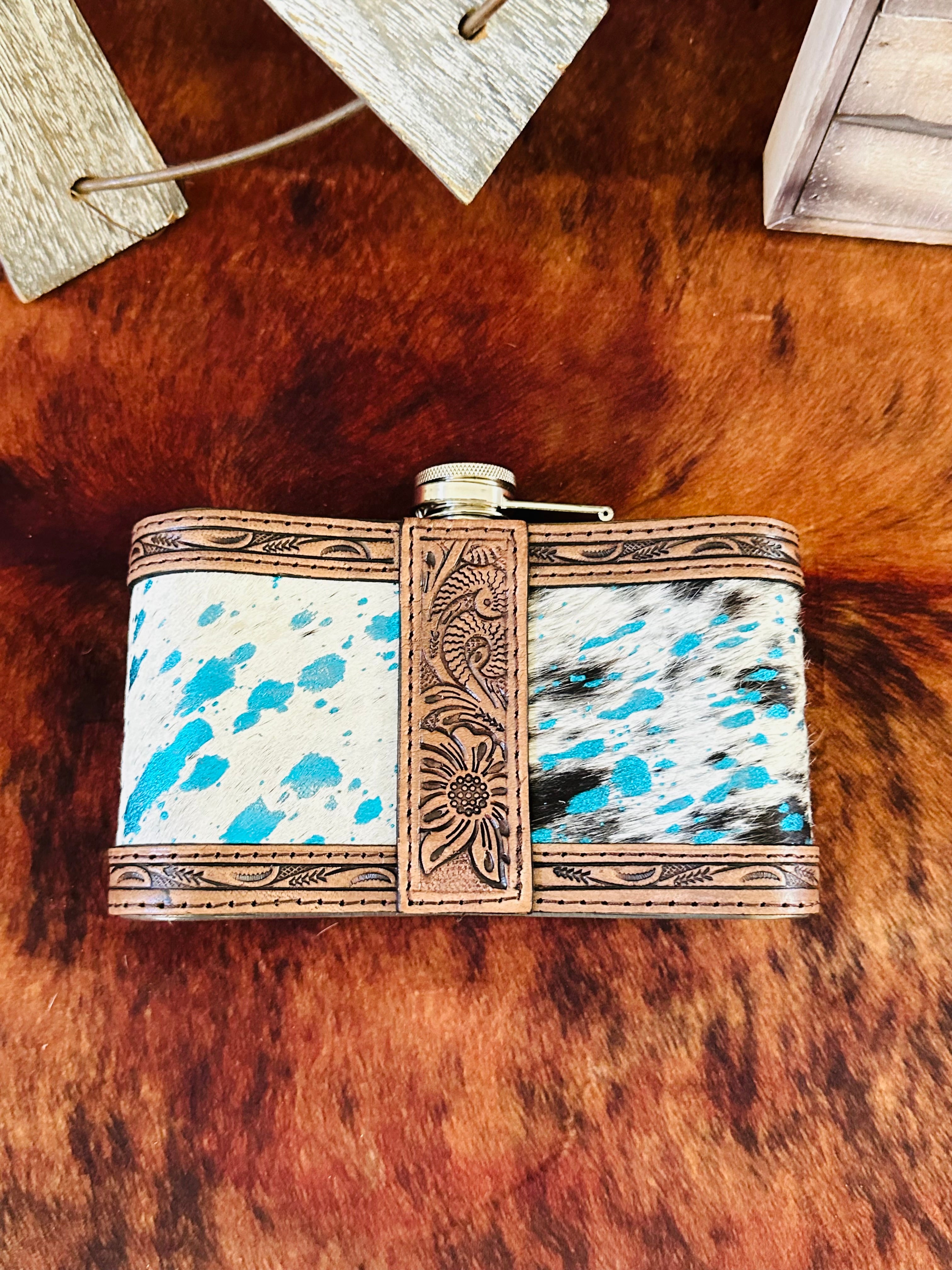 Genuine Tooled Leather & Cowhide 24 oz Flask