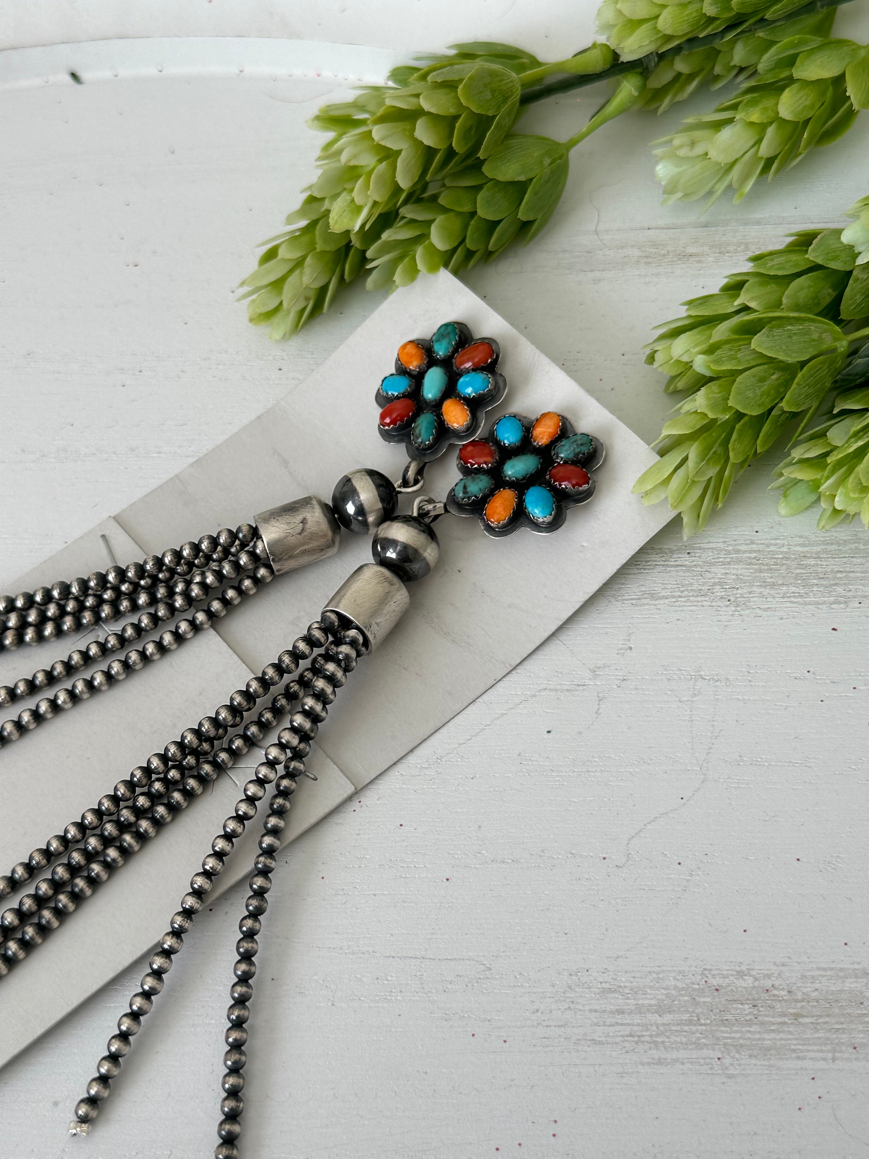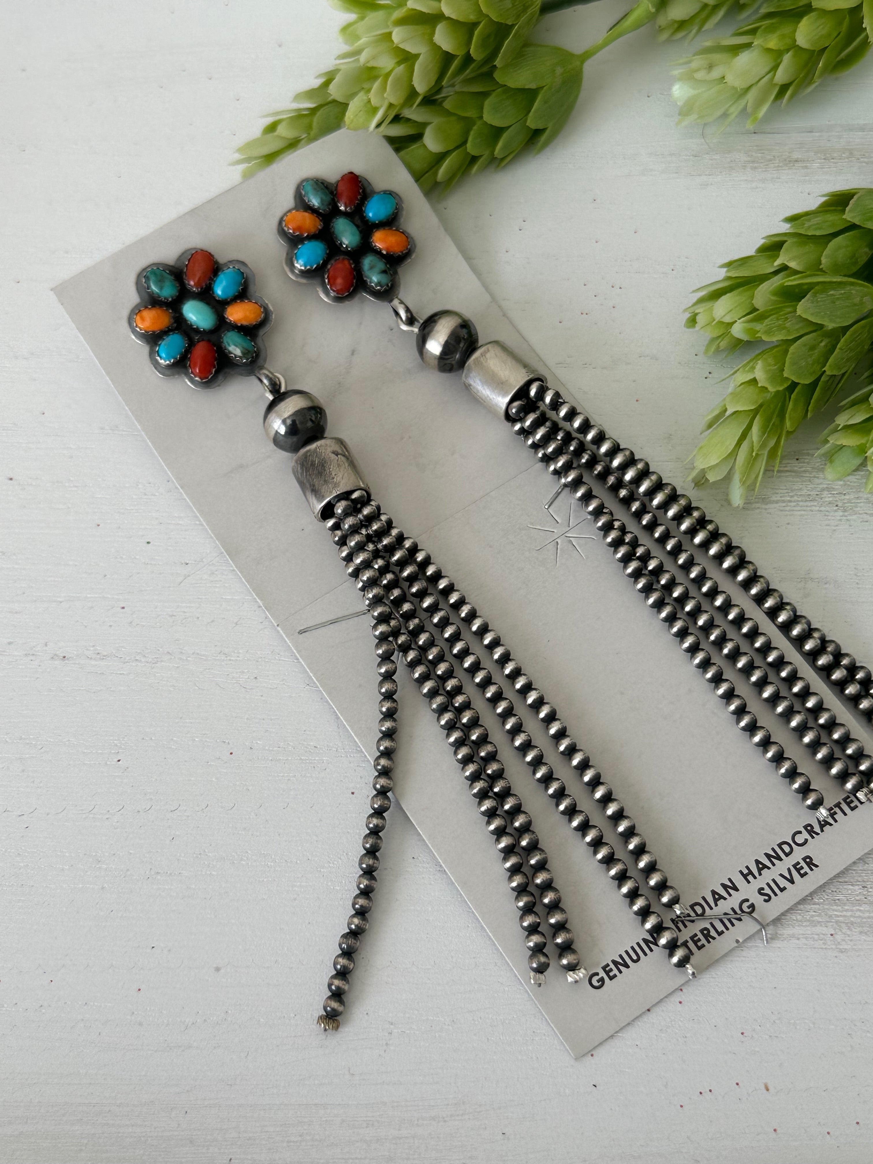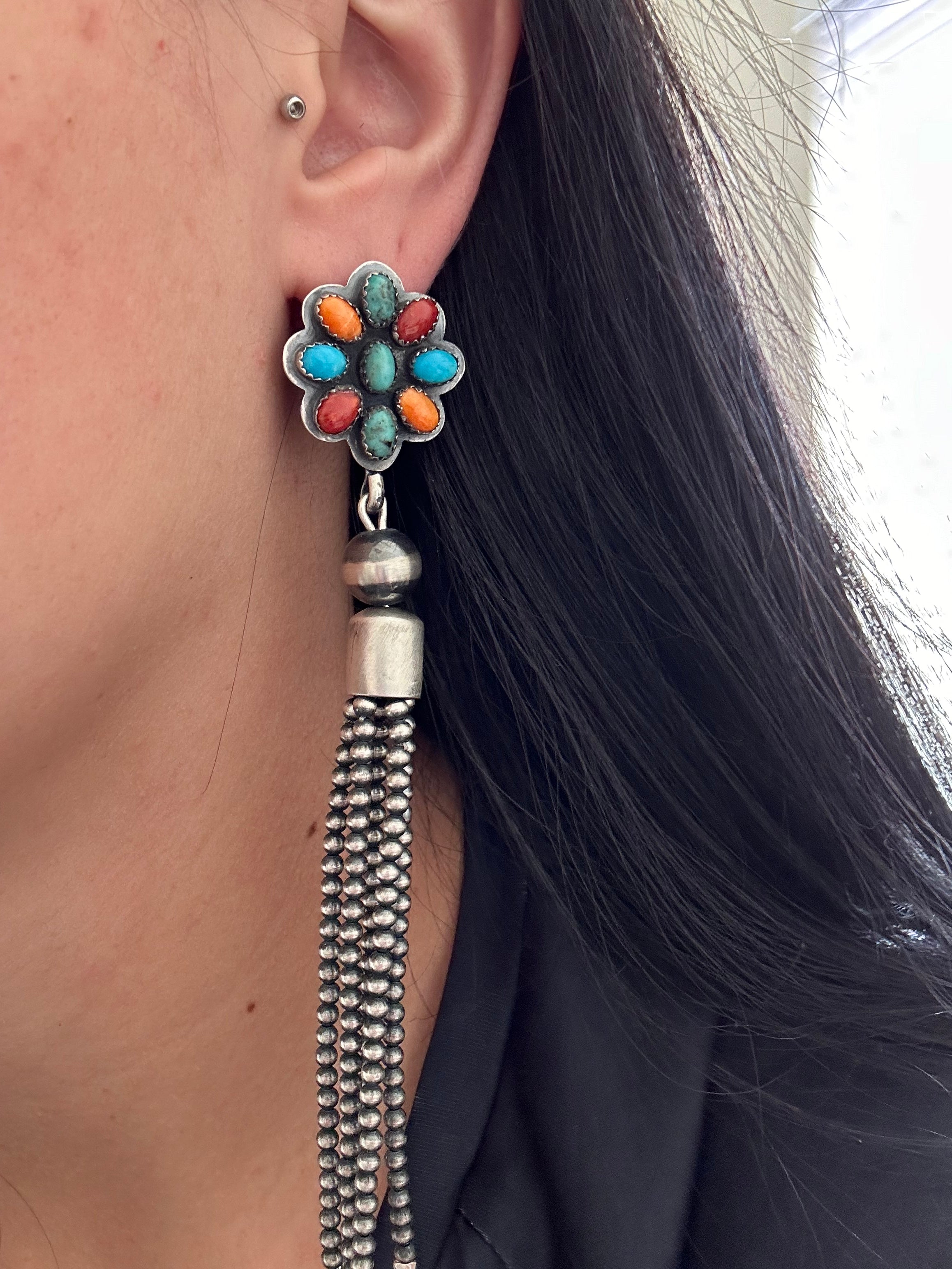 Eleanor Richards Multi Stone & Sterling Silver Post Cluster Dangle Earrings