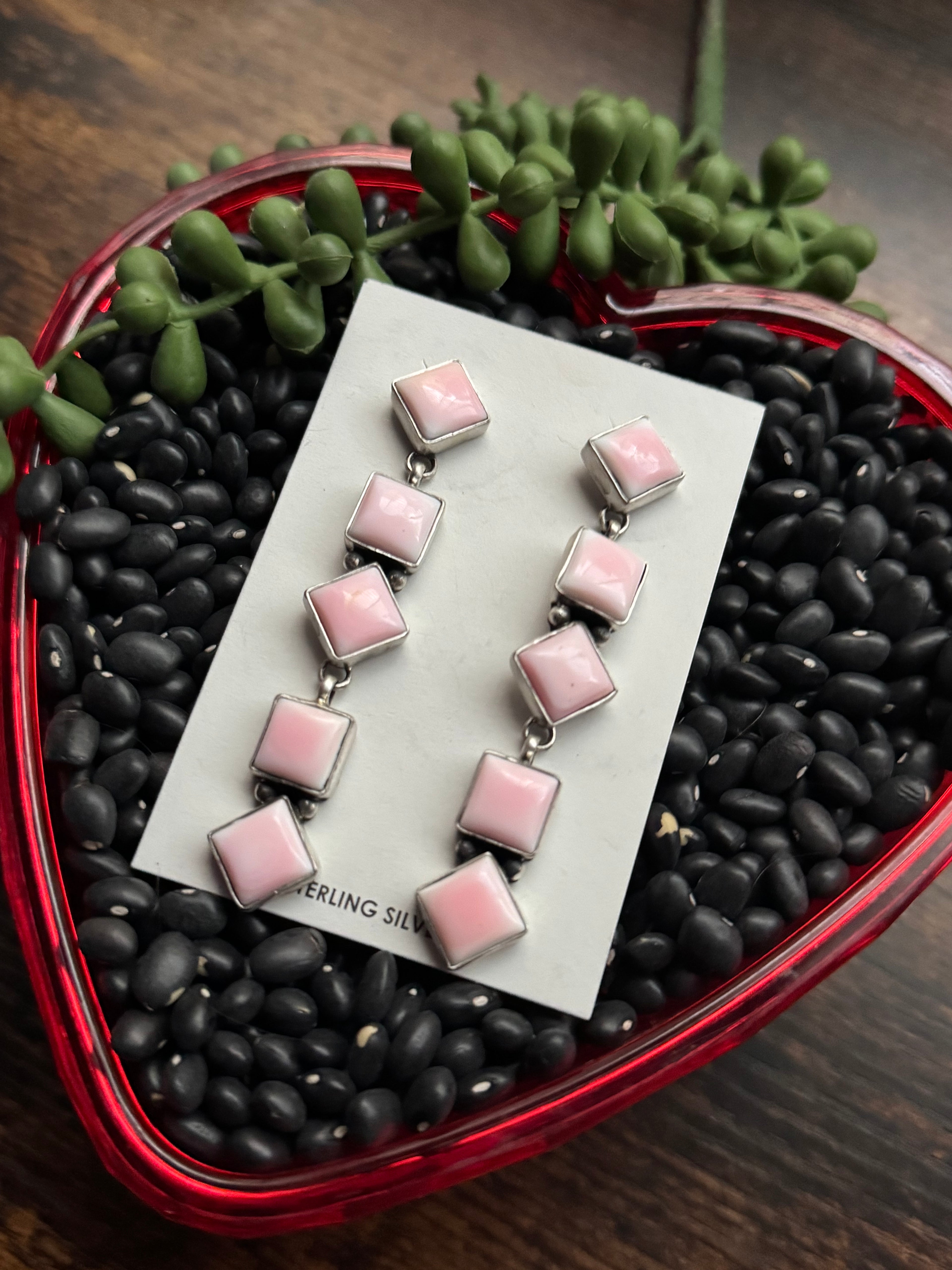 Have a spice of pink in your everyday. Eleanor Richards Pink Conch & Sterling Silver Post Dangle Earrings. It measures just under 3 1/4 inches long and 5/8 of an inch wide. Signed and stamped by the artist.