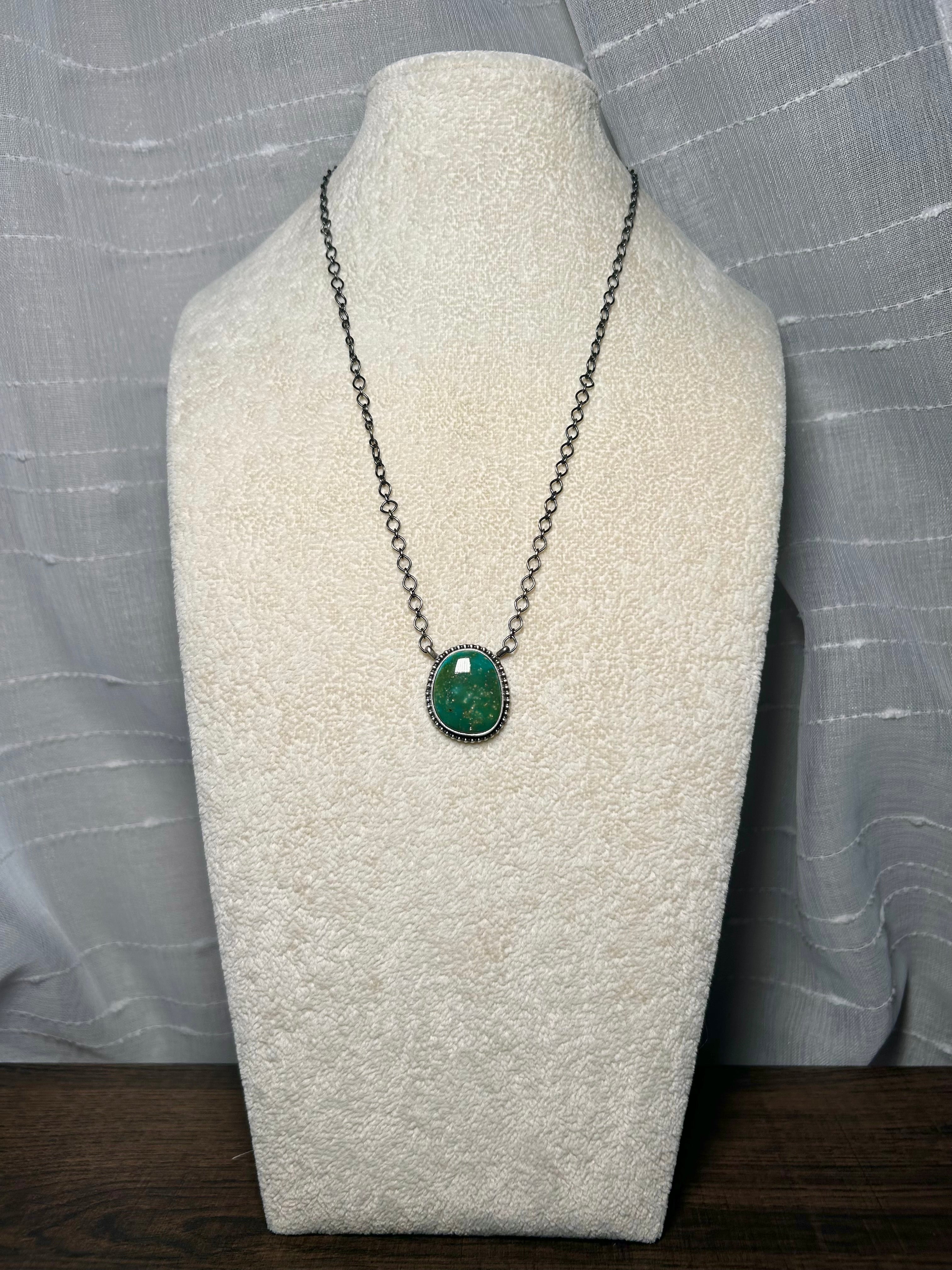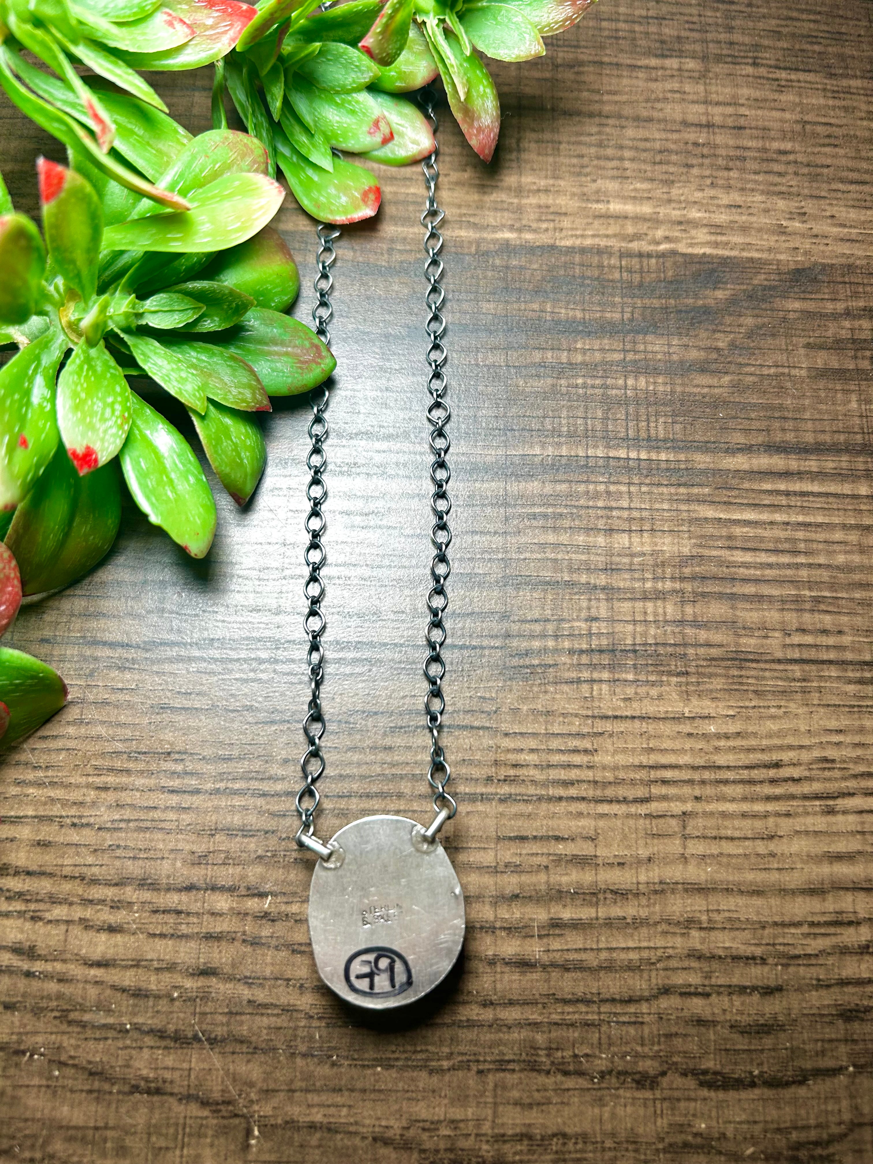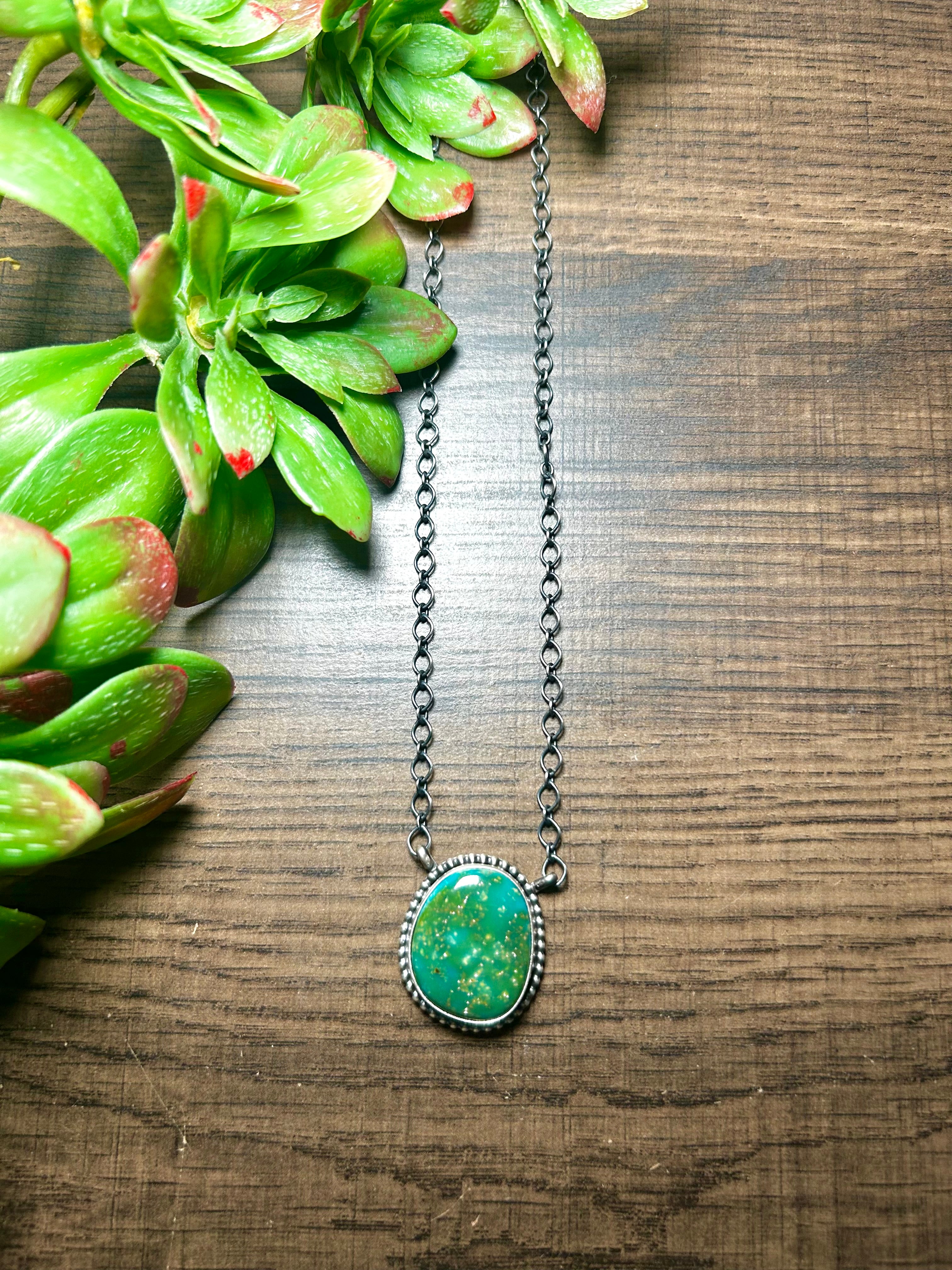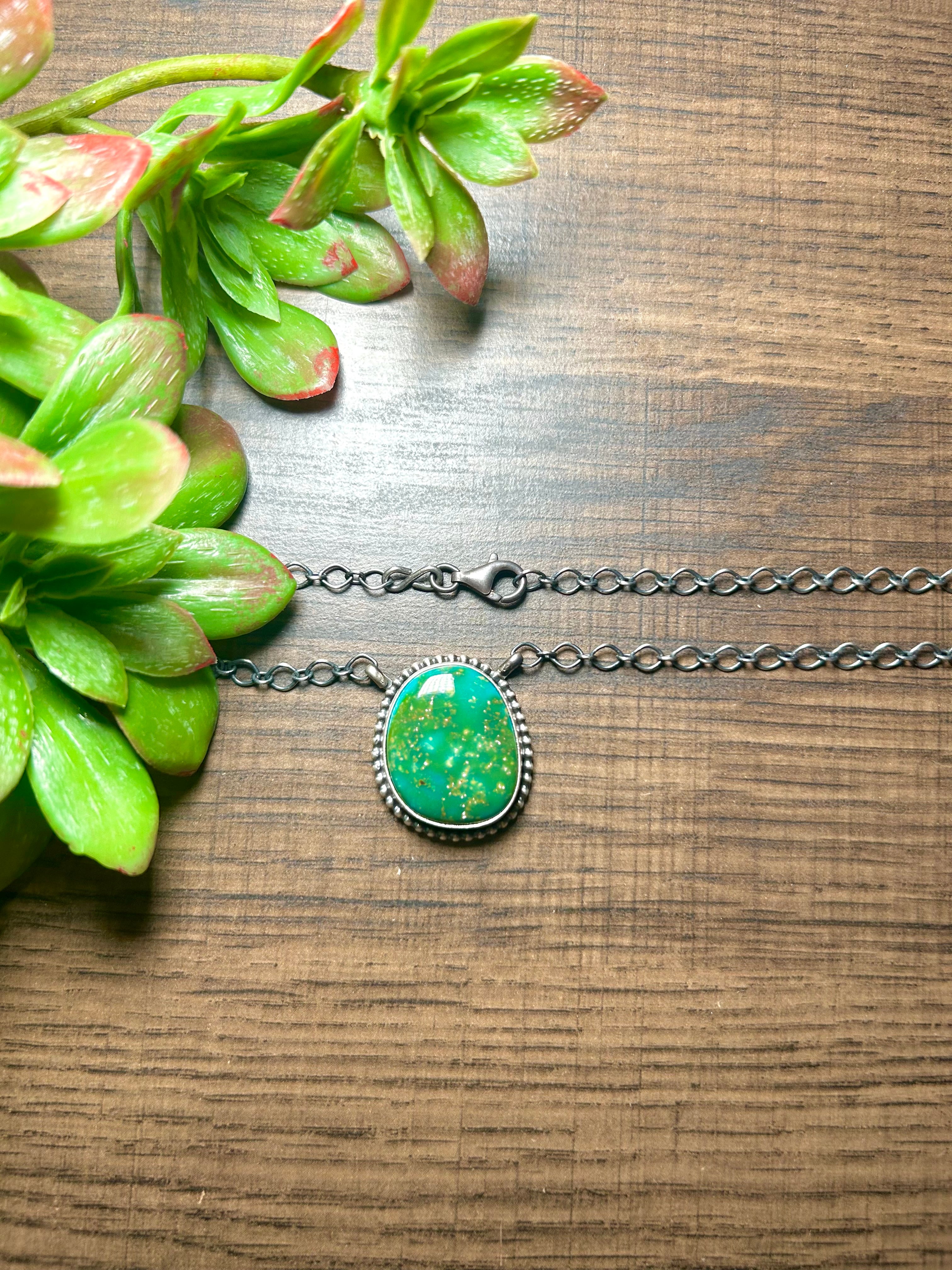 Eli Skeets Kingman Turquoise & Sterling Silver Necklace. The necklaces measures 20 inches long while the chain by itself measures 18 inches long. Signed by the artist and stamped sterling silver.