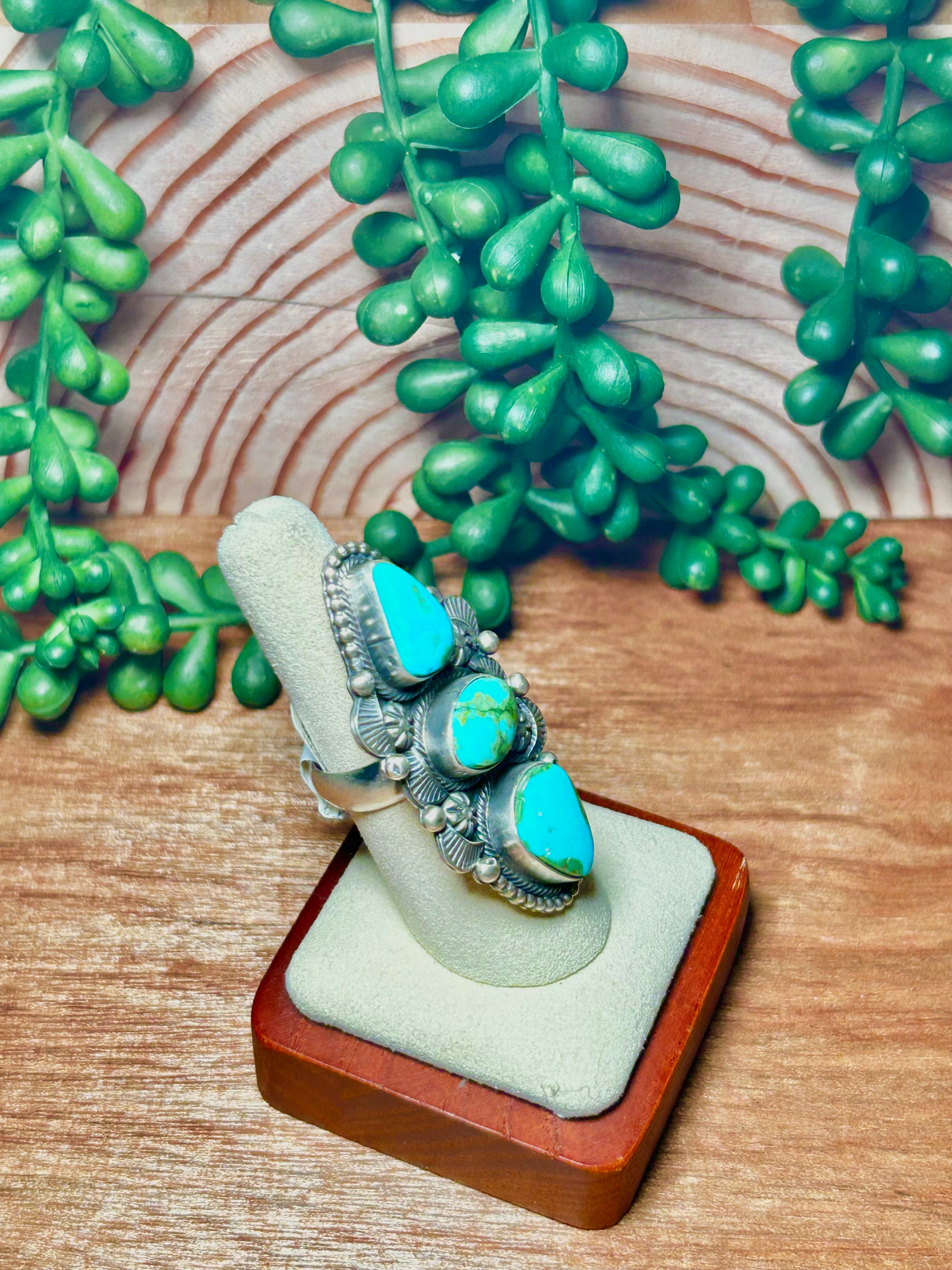 Eli Skeets Made Sonoran Mountain Turquoise & Sterling Silver Ring Size 7.5