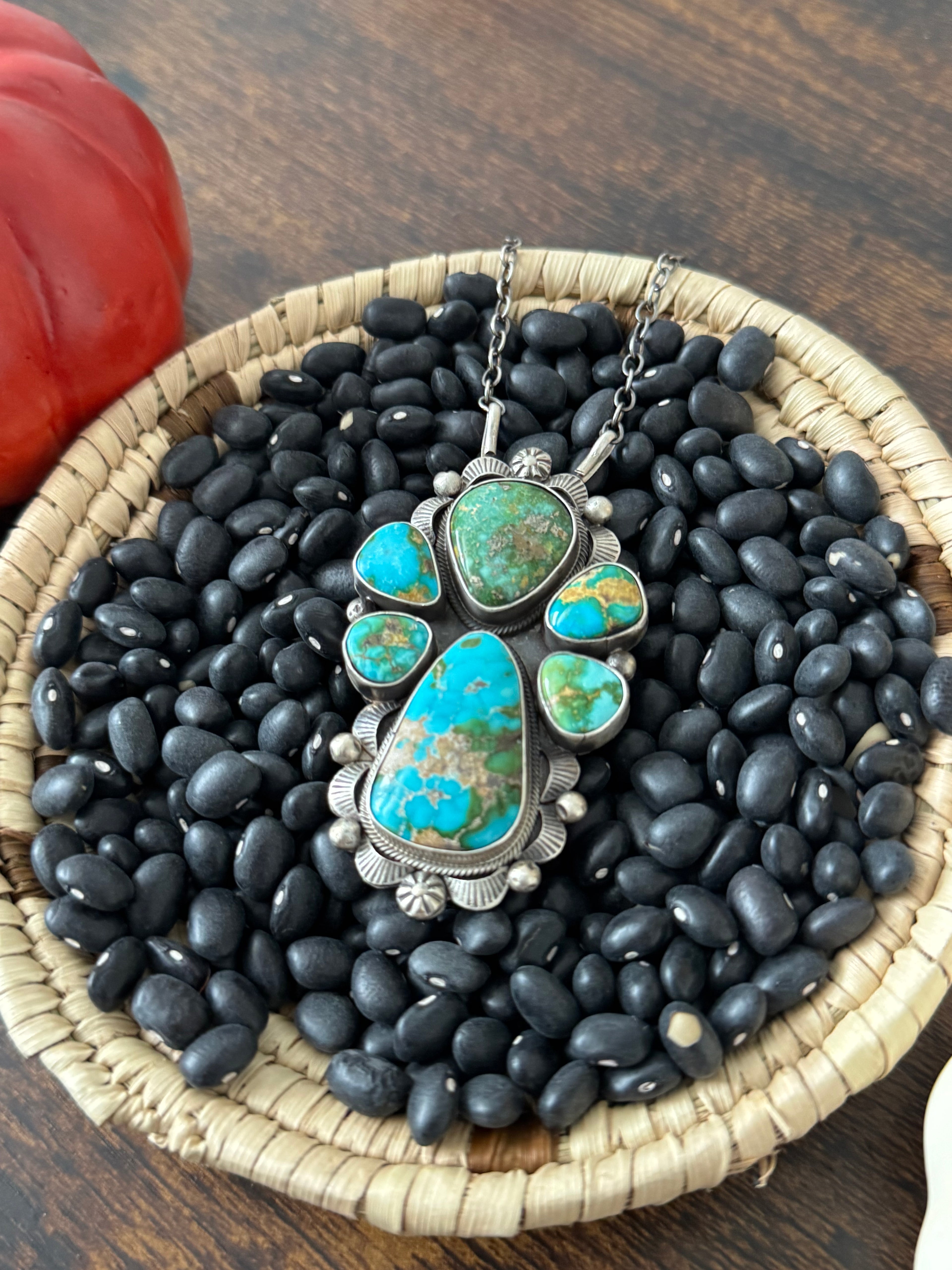 Eli Skeets Sonoran Mountain Turquoise & Sterling Silver Cluster Necklace