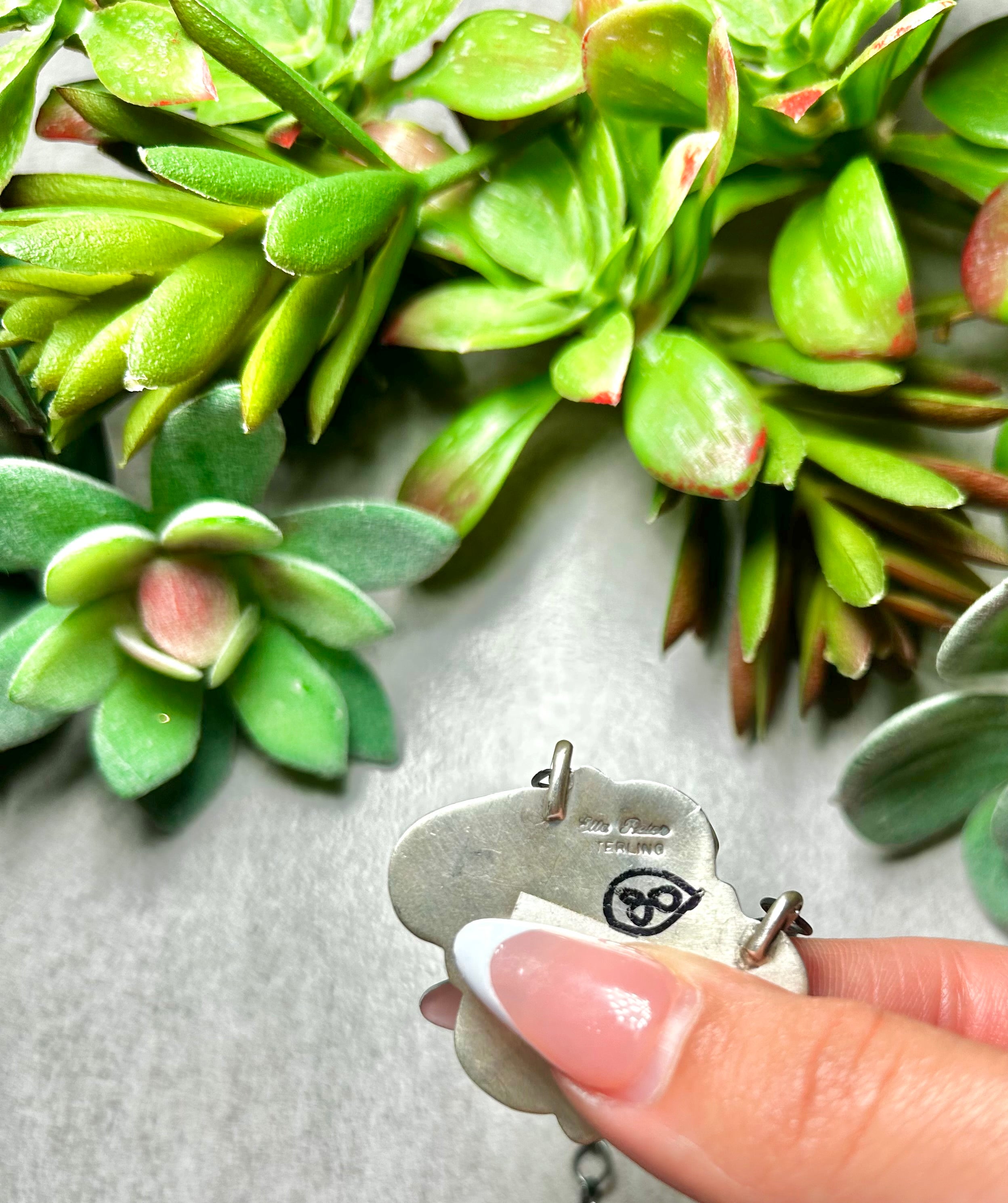 Ella Peters #8 Turquoise & Sterling Silver Necklace. It measures 19 inches long with hang while the chain measures 17 inches long. Signed by the artist and stamped sterling silver.