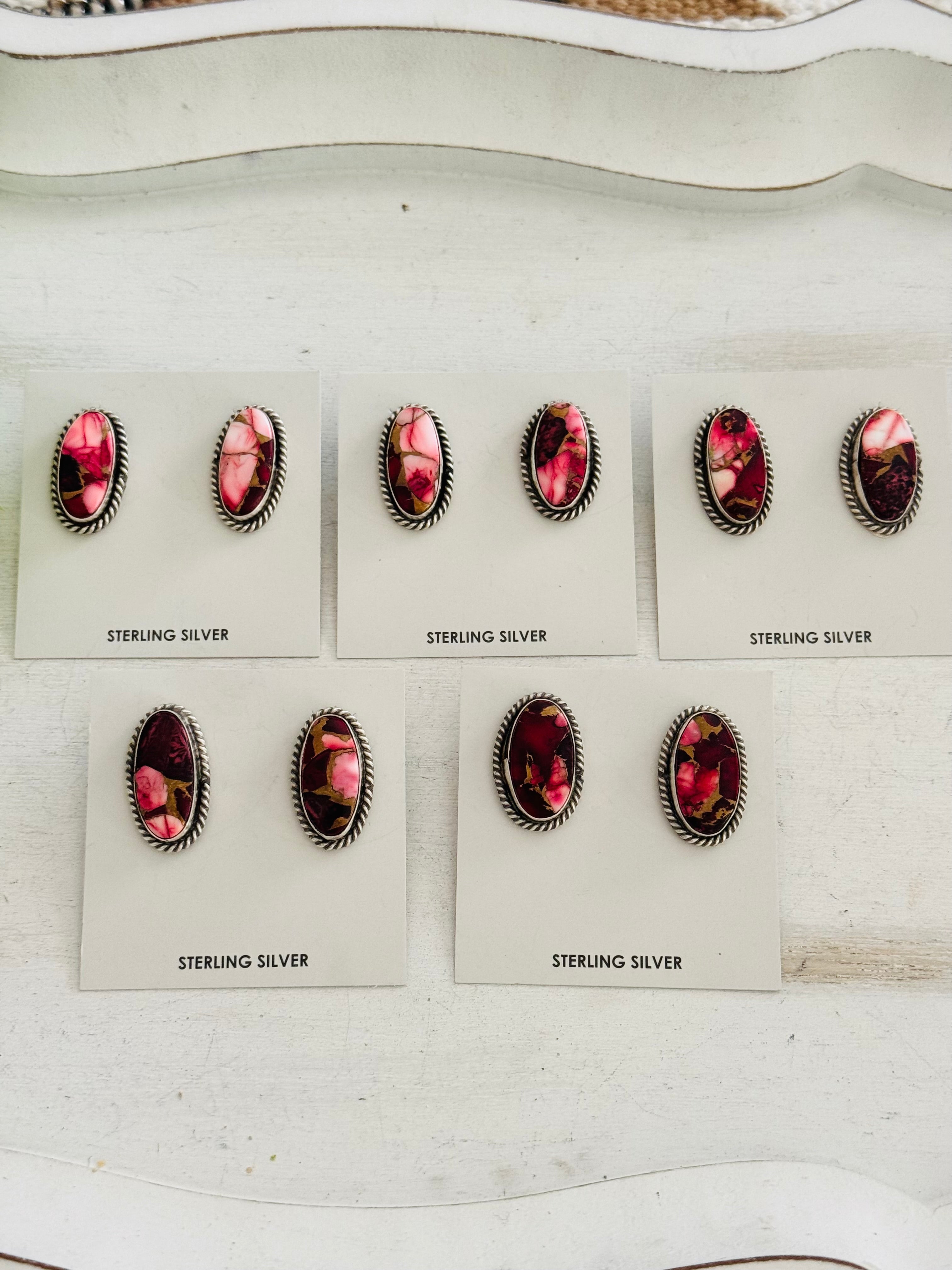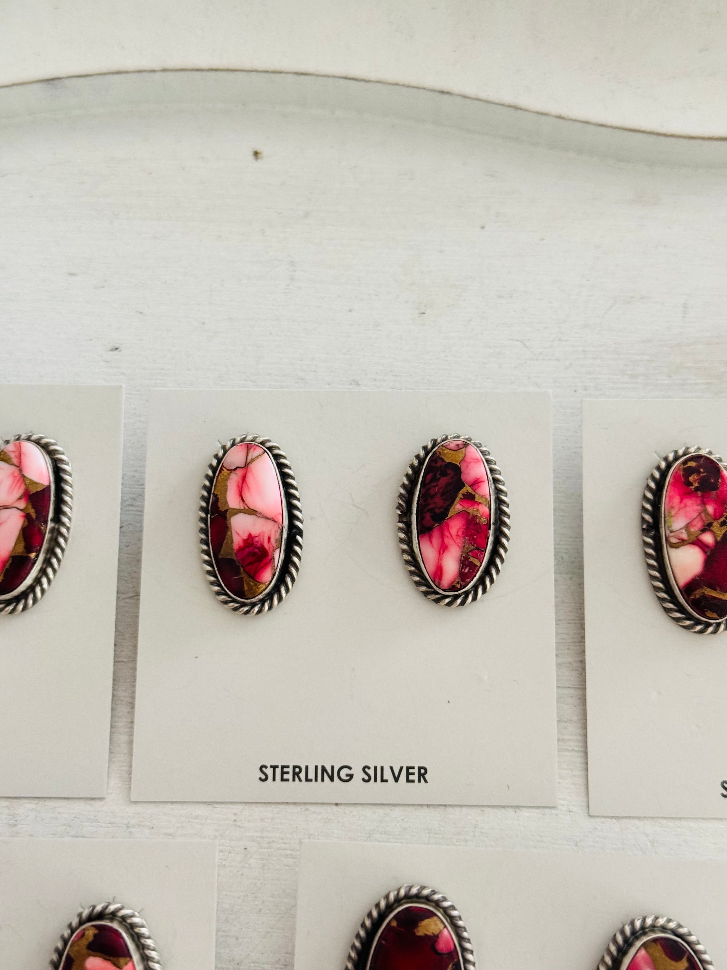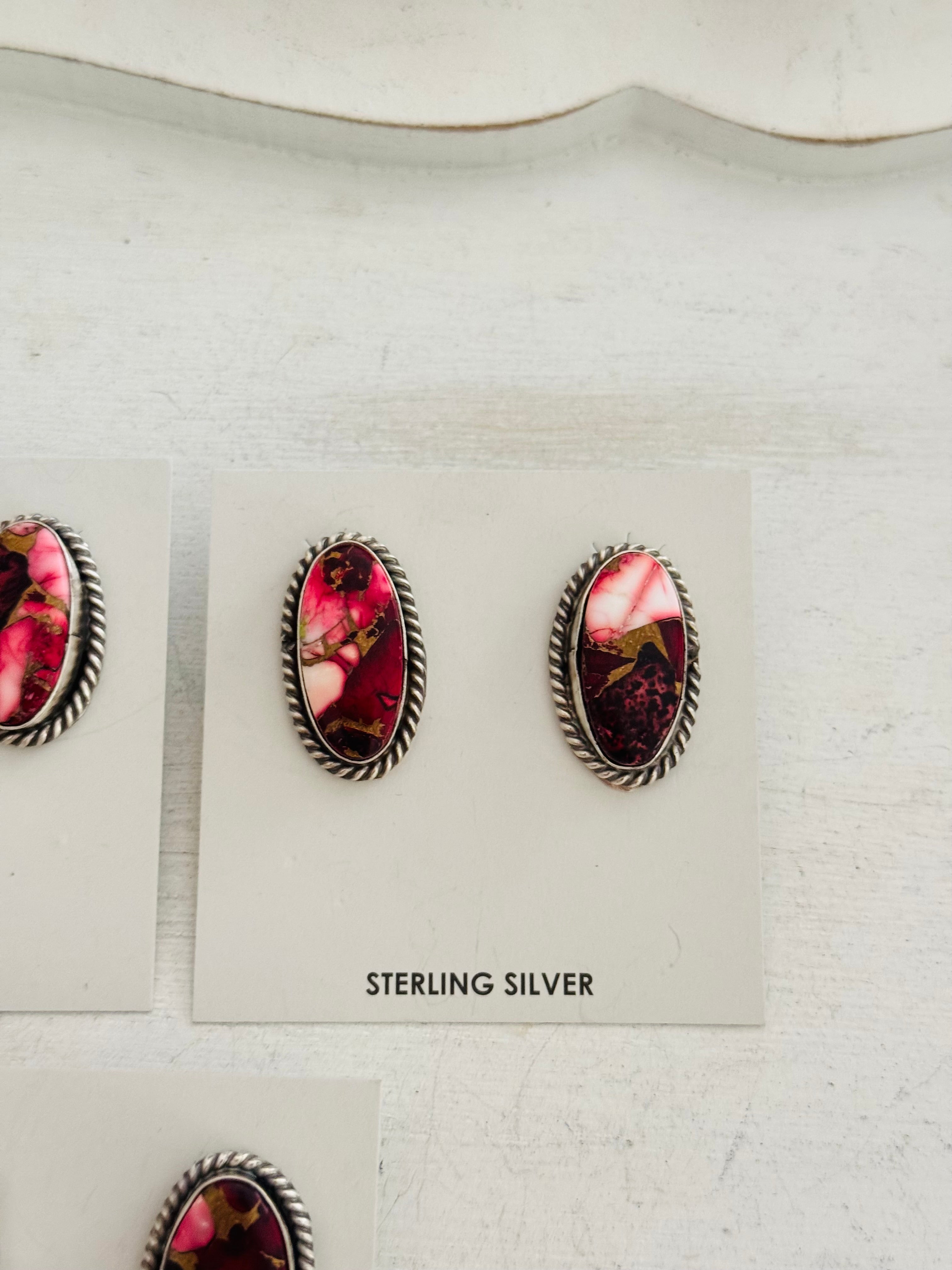 Navajo Made Dahlia Rose & Sterling Silver Post Earrings