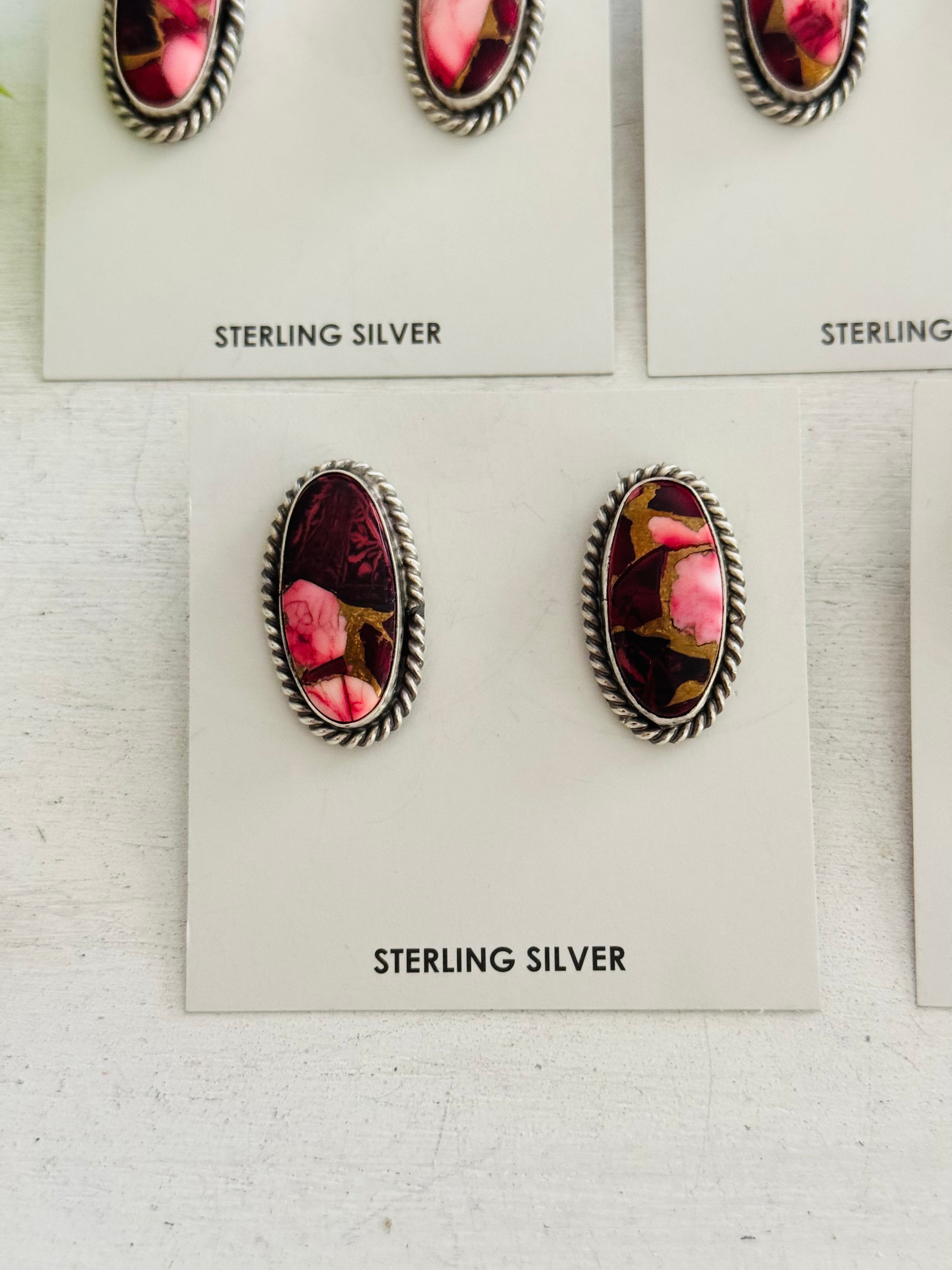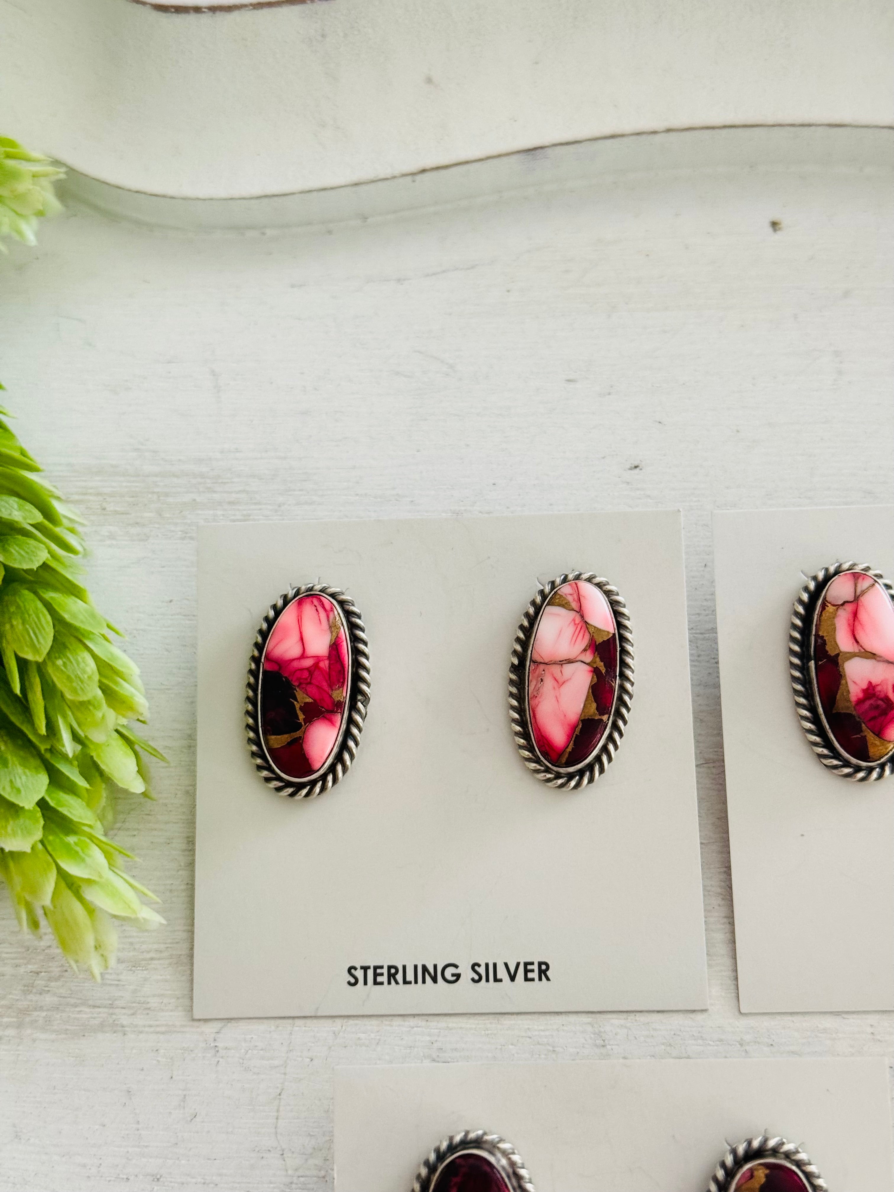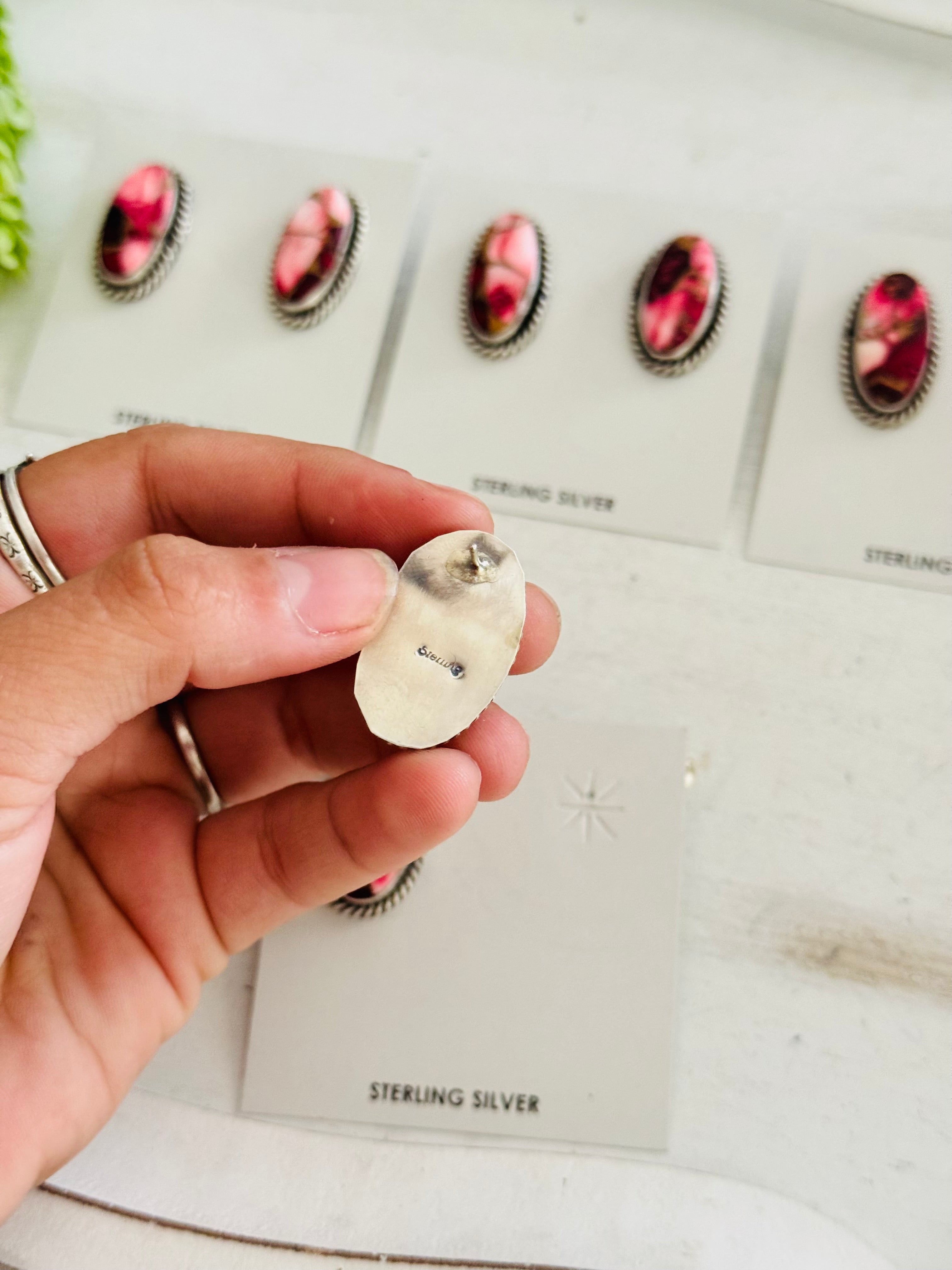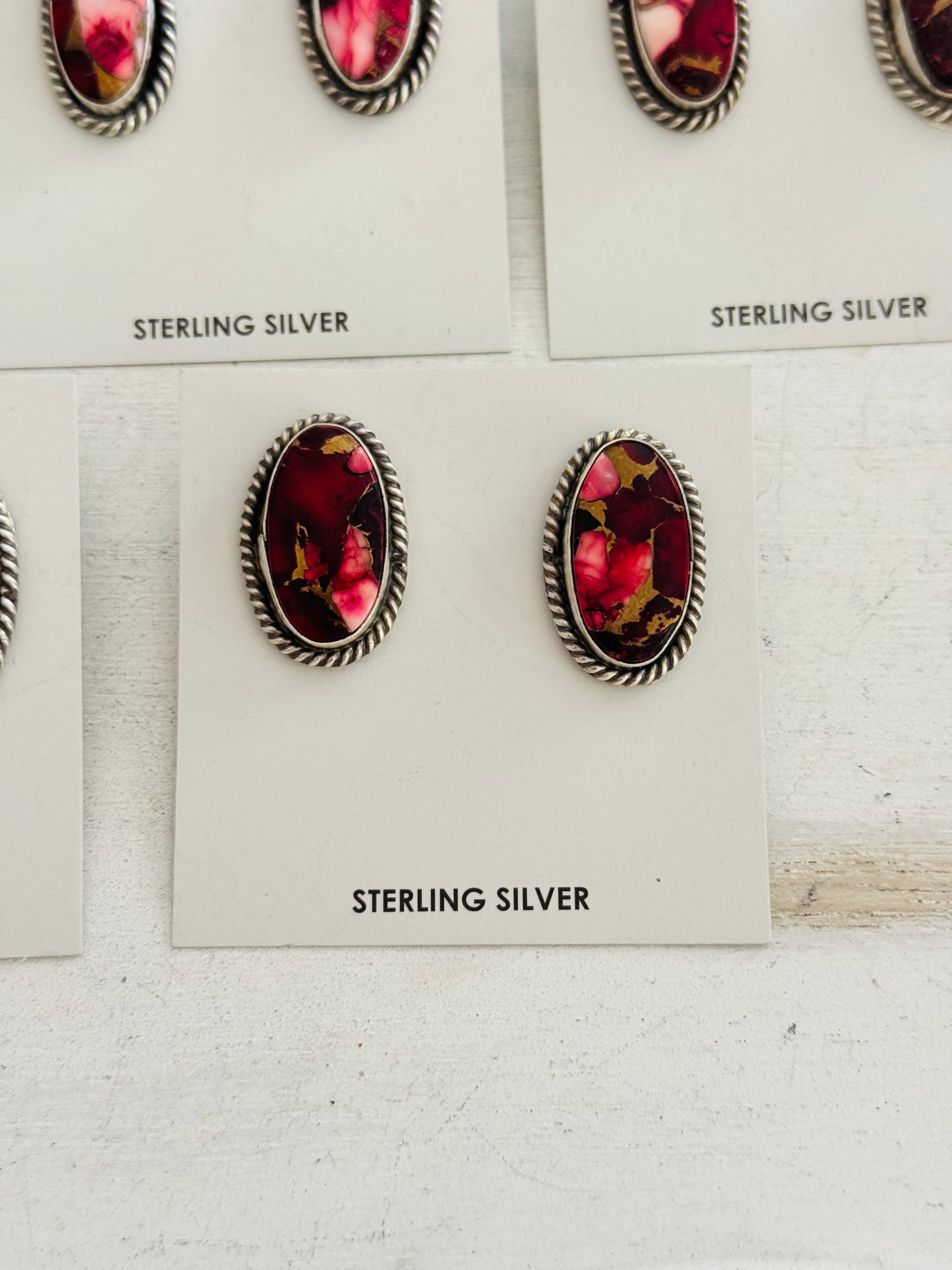 Navajo Made Dahlia Rose & Sterling Silver Post Earrings