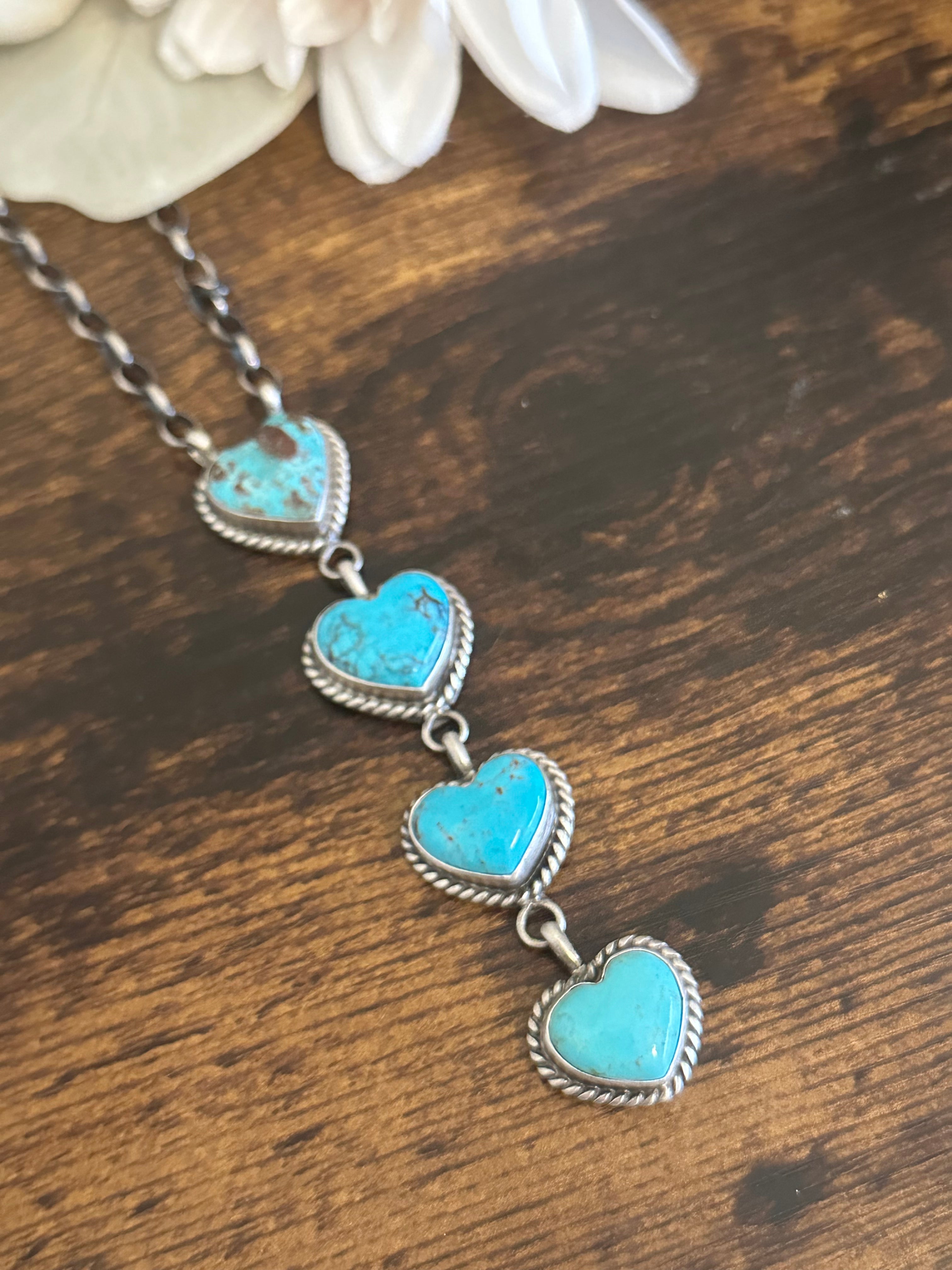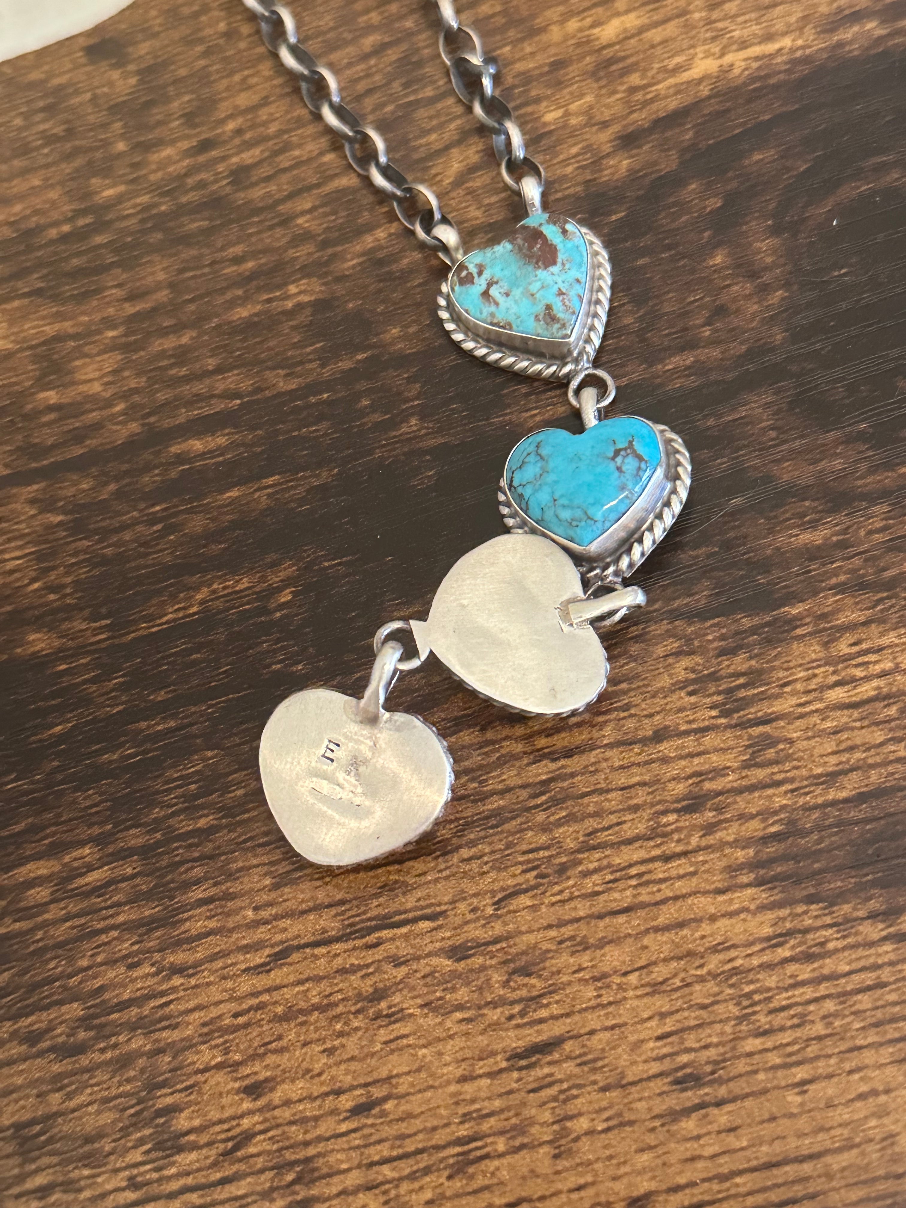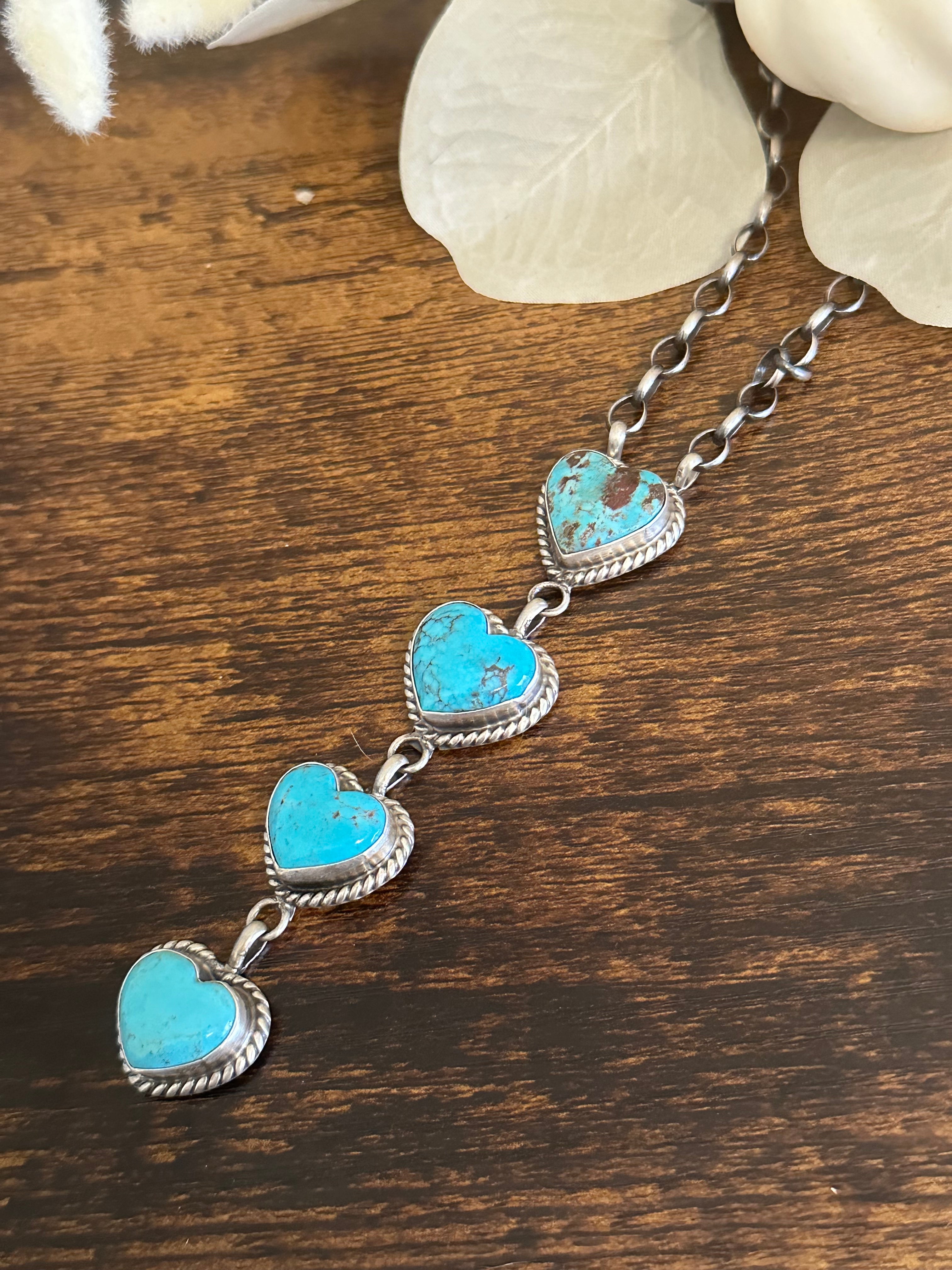 Elouise Kee Kingman Turquoise & Sterling Silver Heart Lariat Necklace