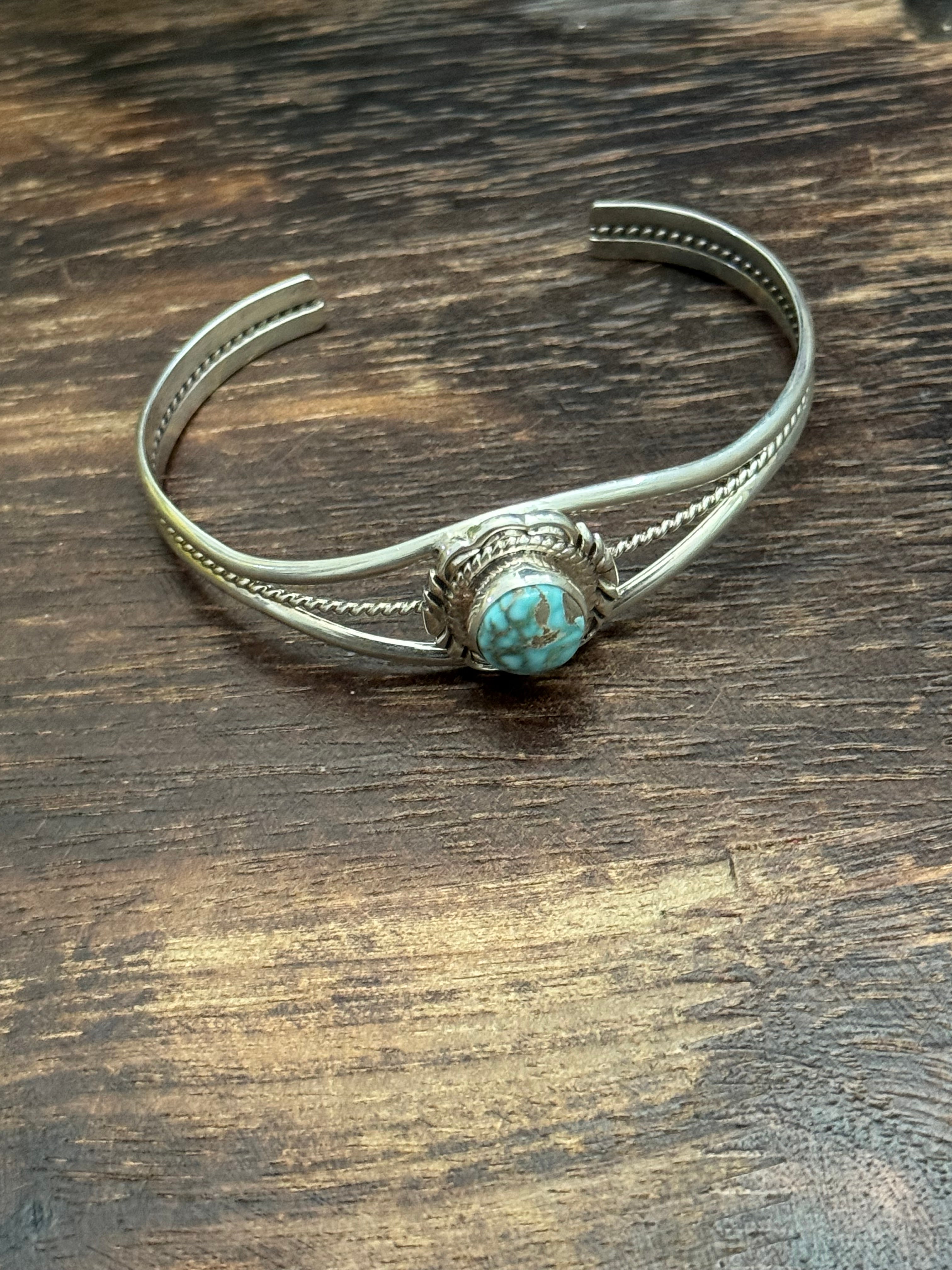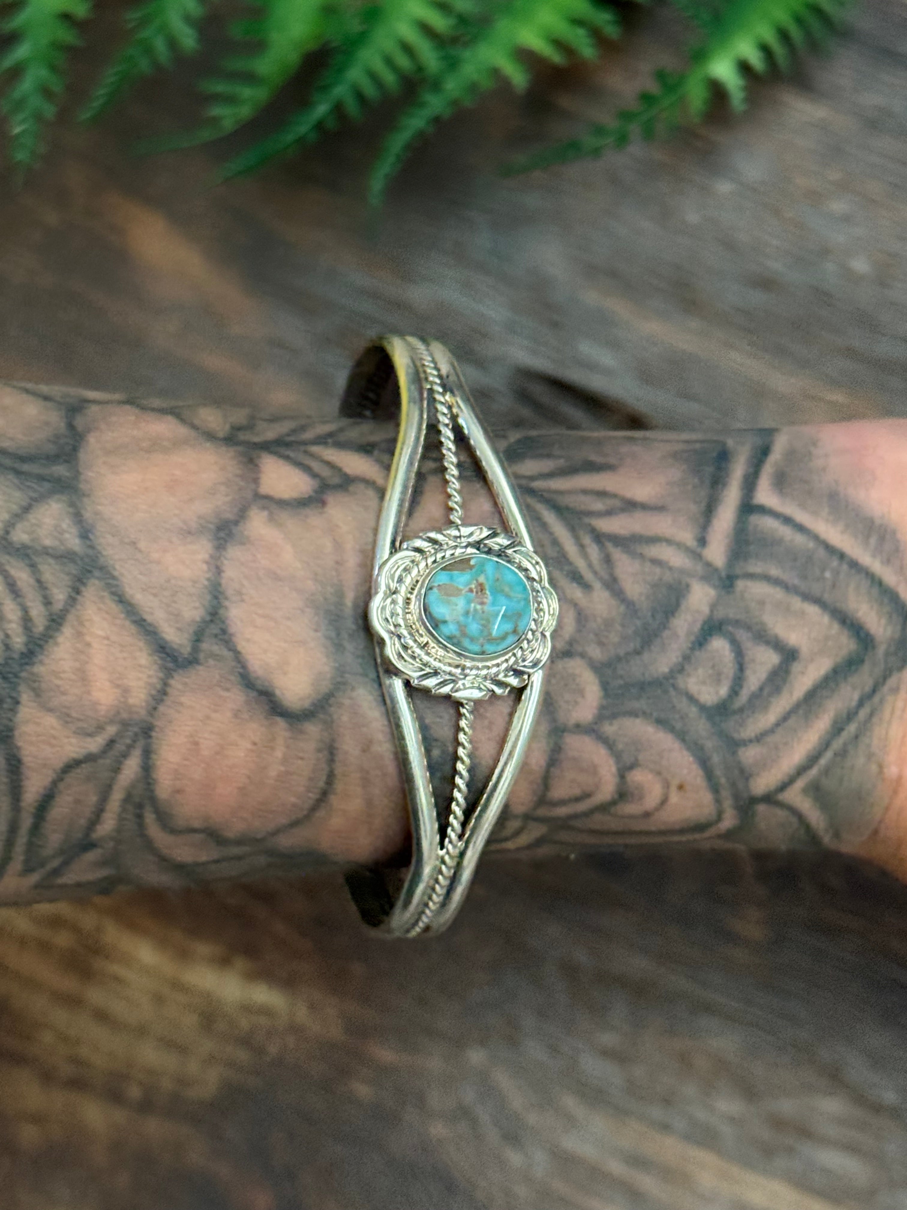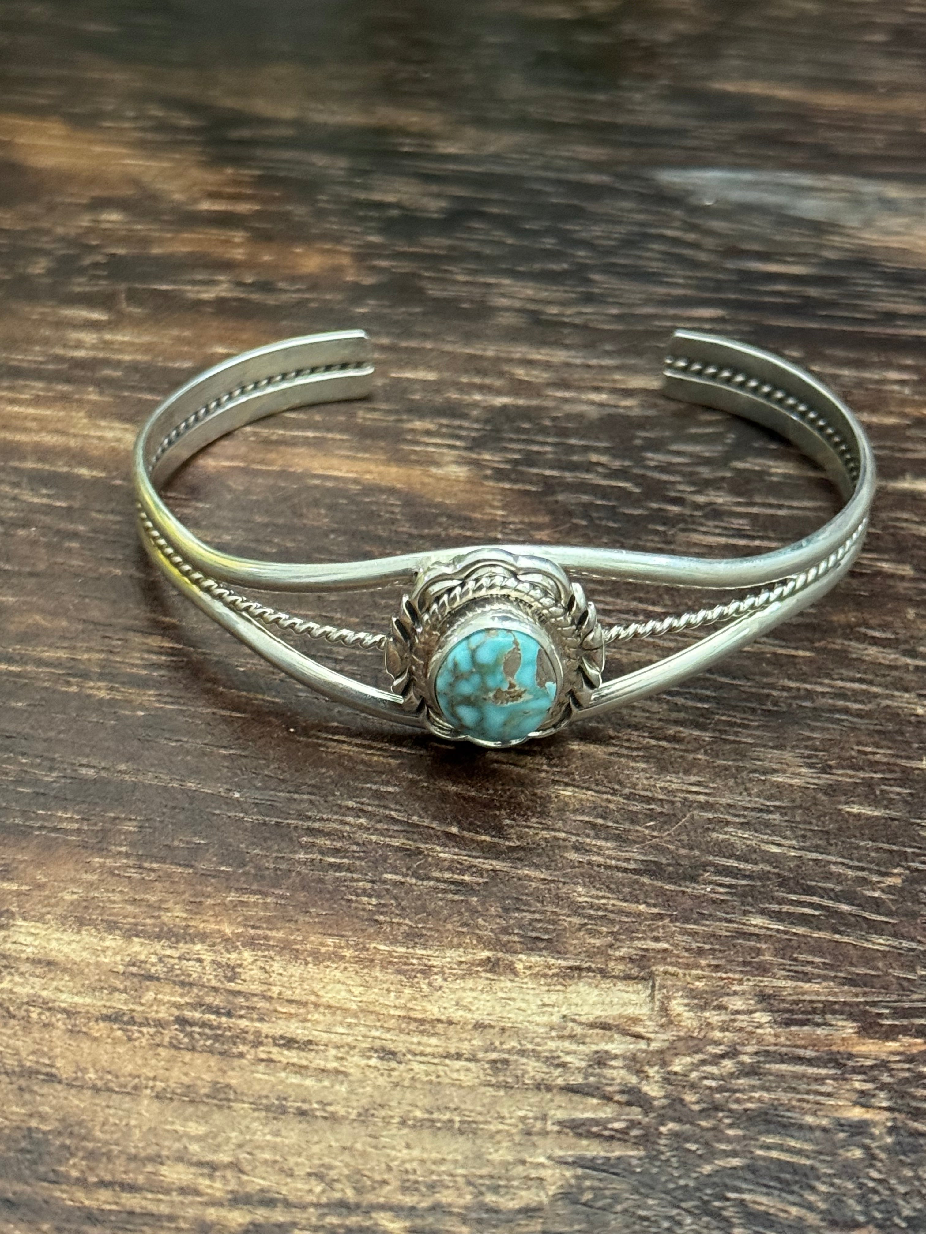 Navajo Made Dry Creek Turquoise & Sterling Silver Cuff Bracelet