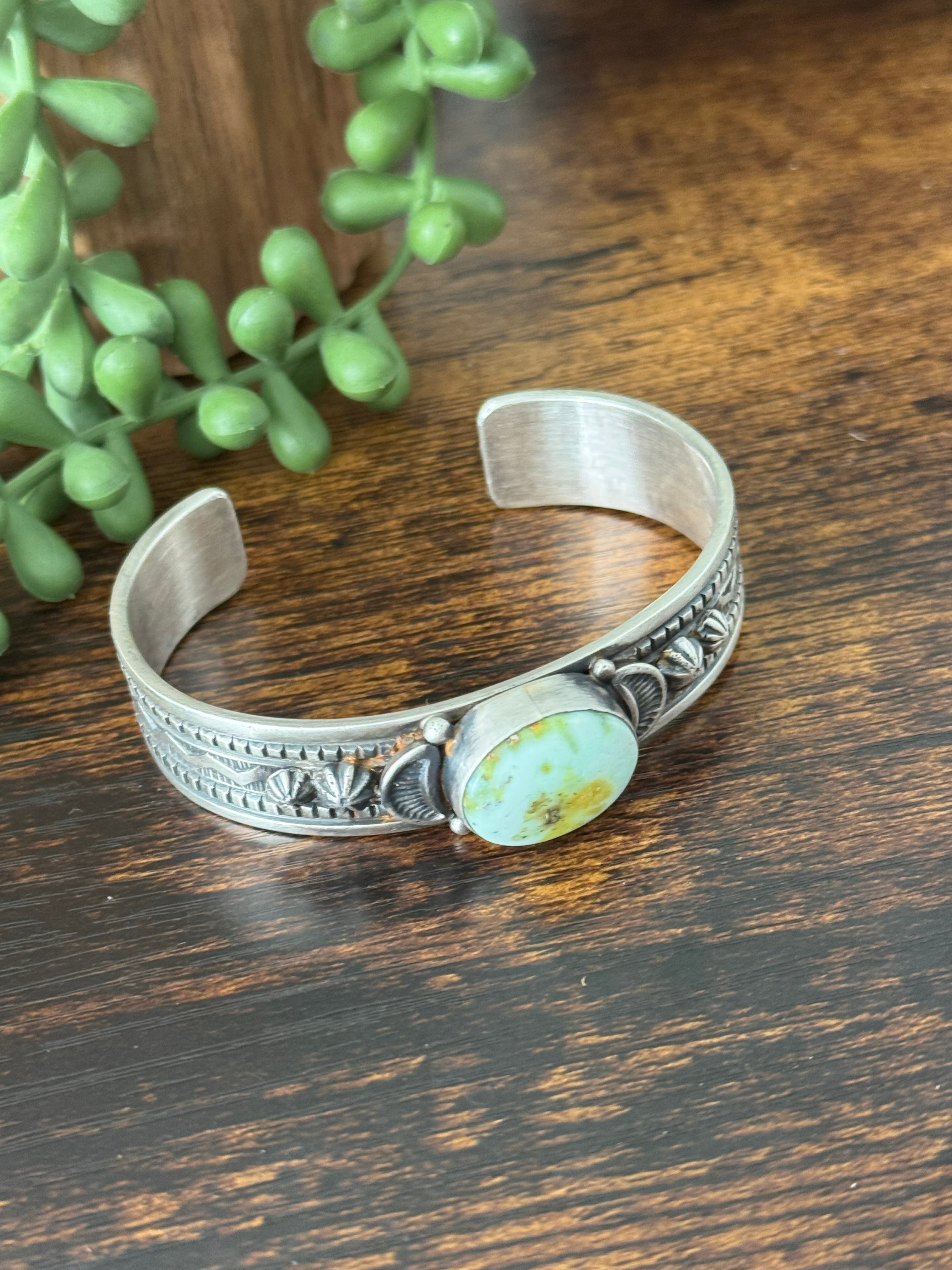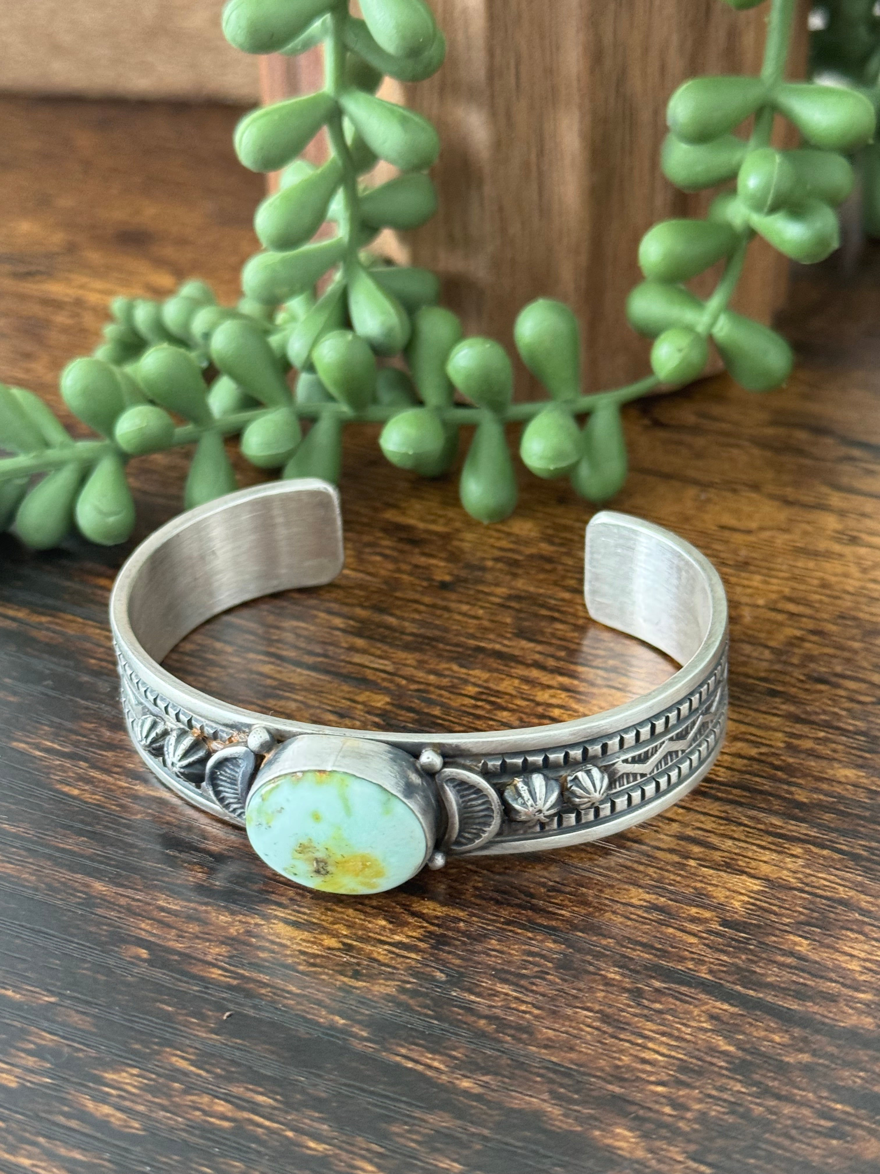 Francis Yazzie Palomino Variscite and Sterling Silver Cuff Bracelet