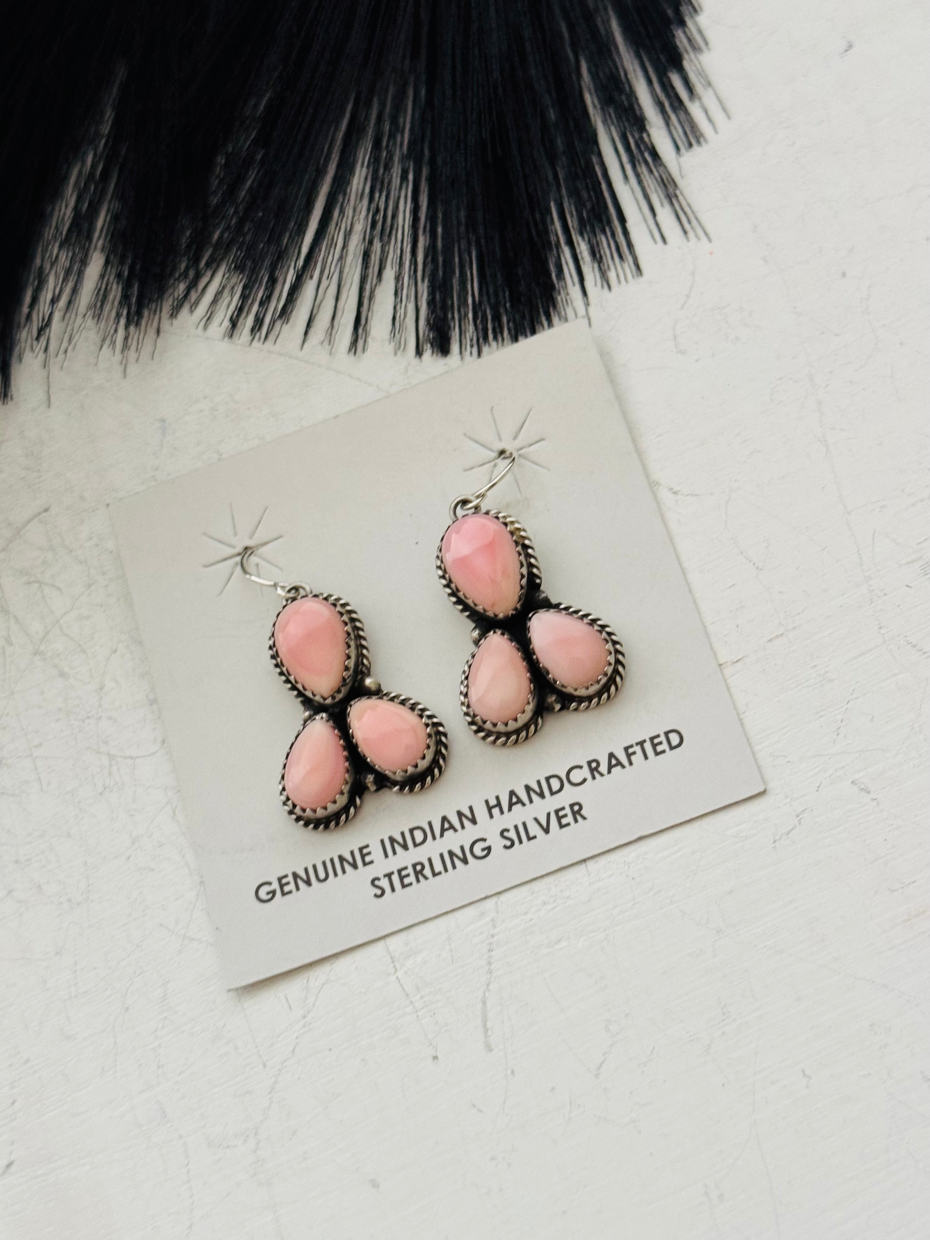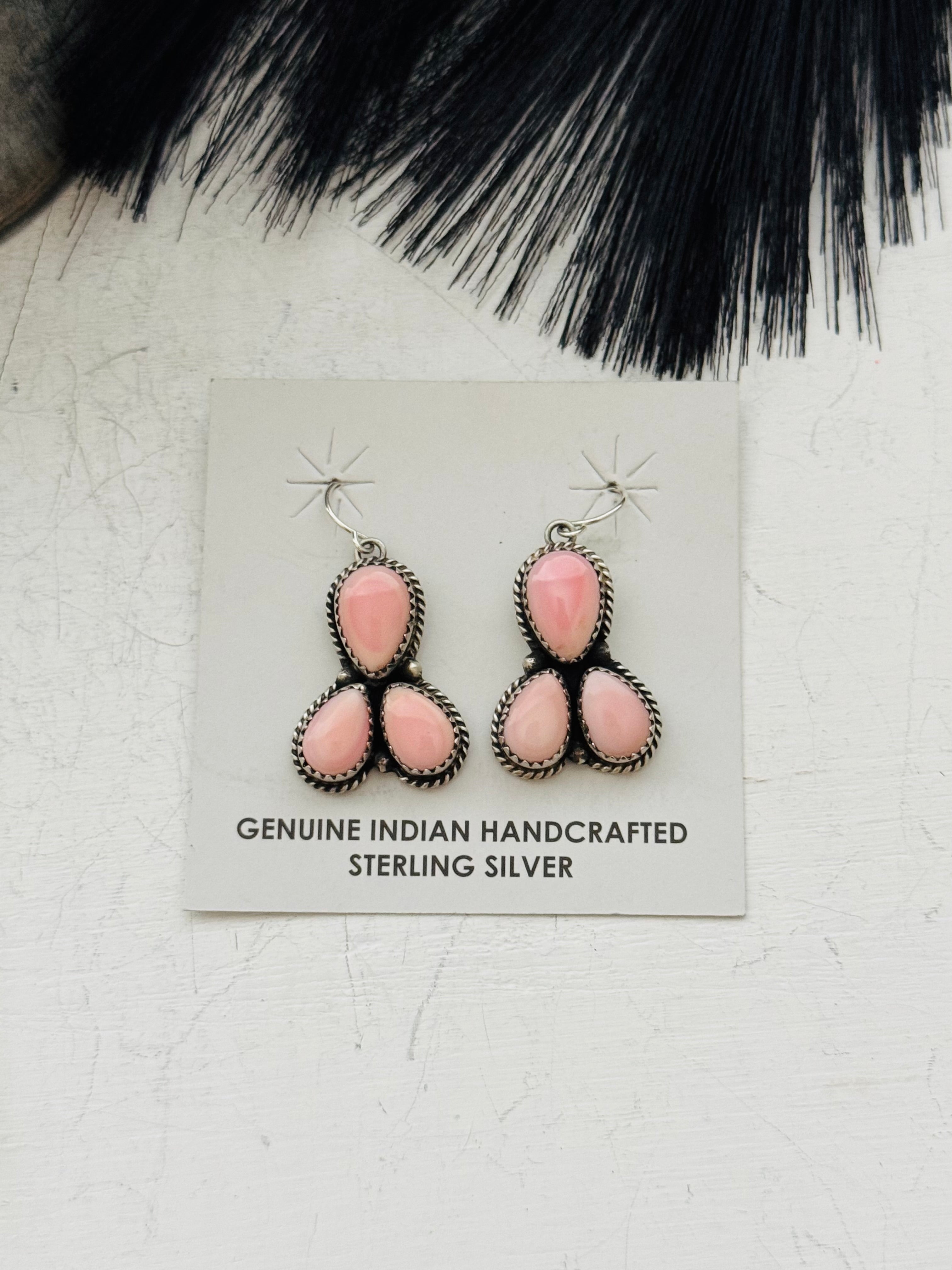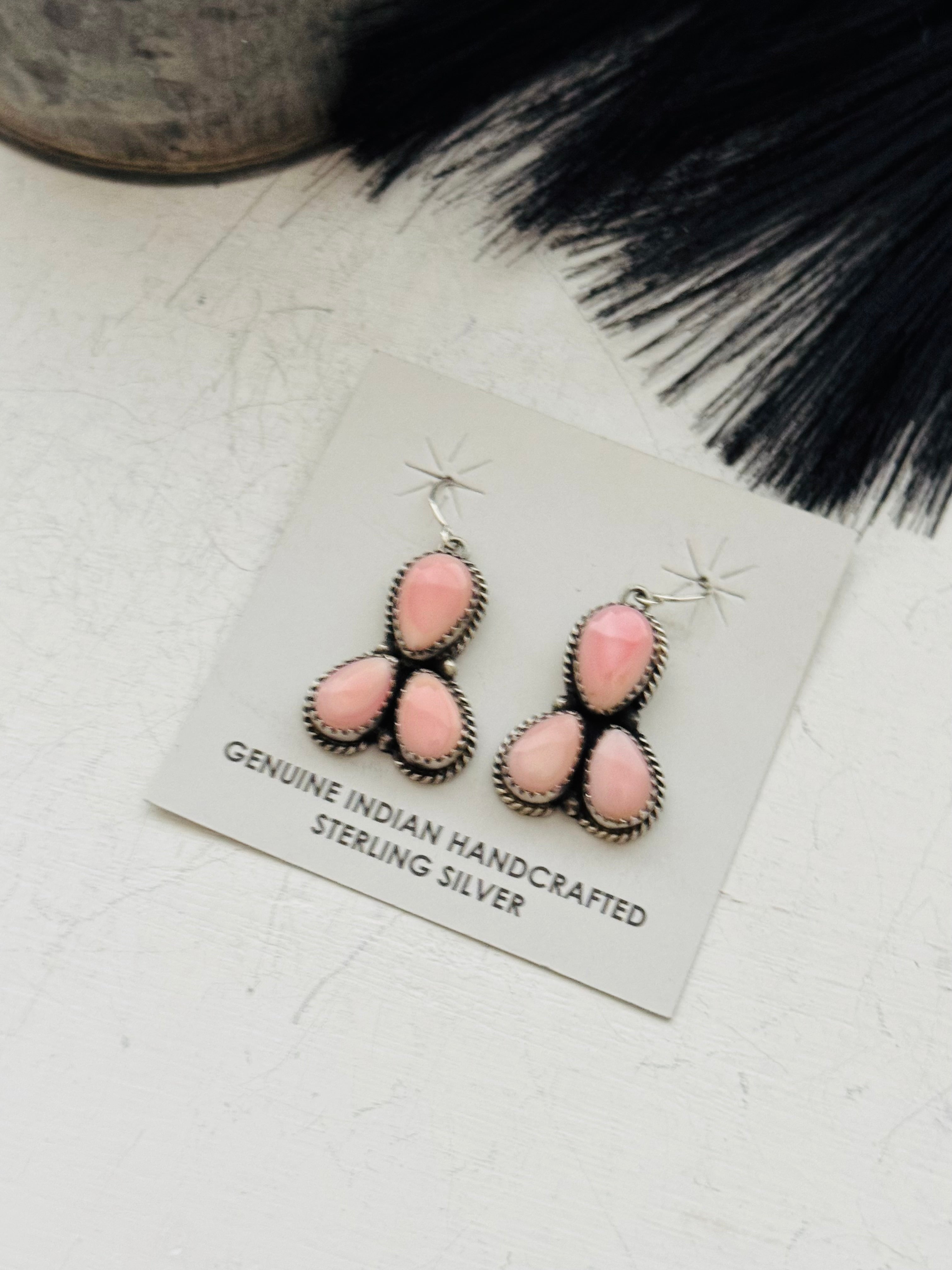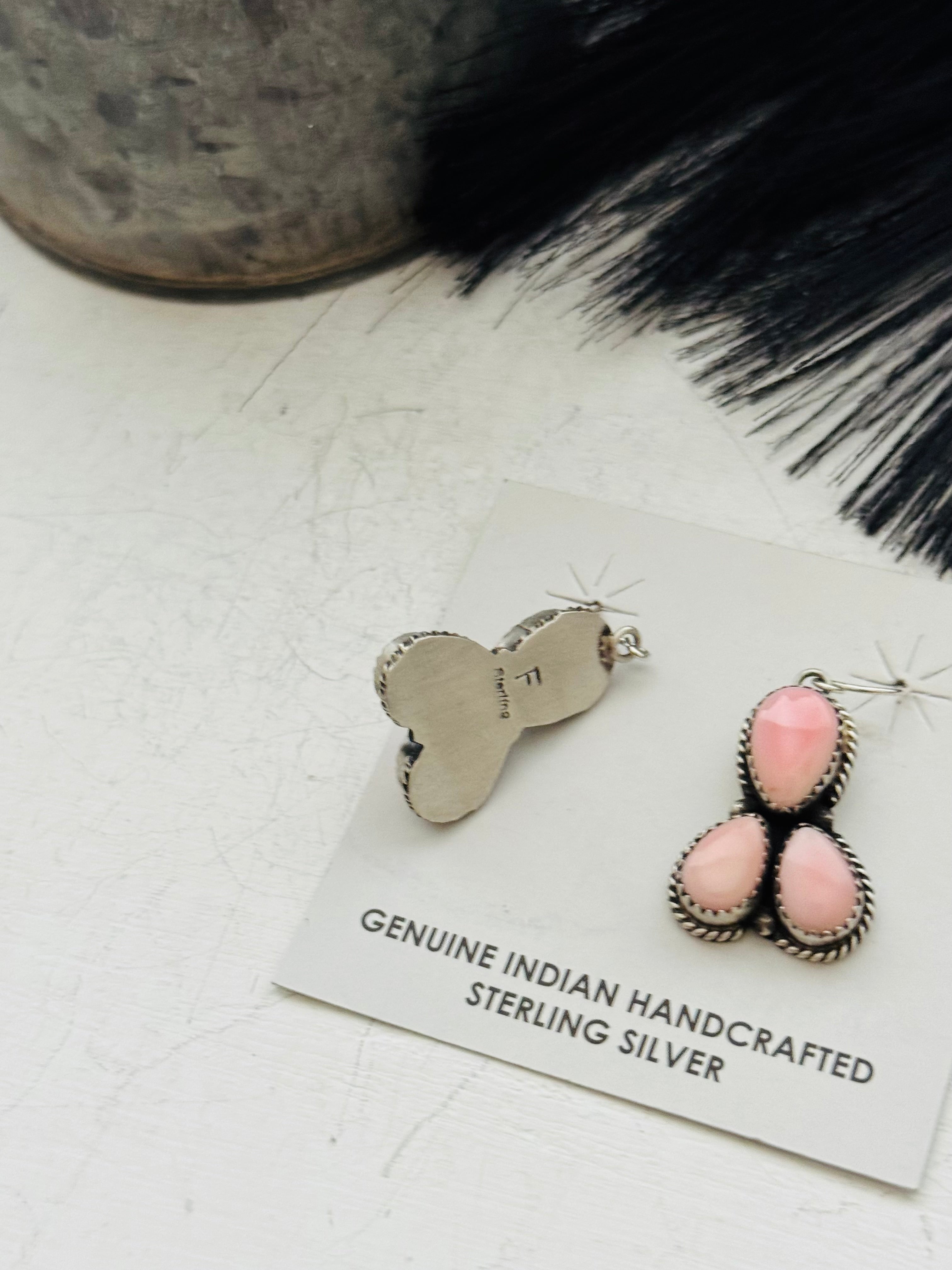 Freda Martinez Pink Conch & Sterling Silver Dangle Earrings
