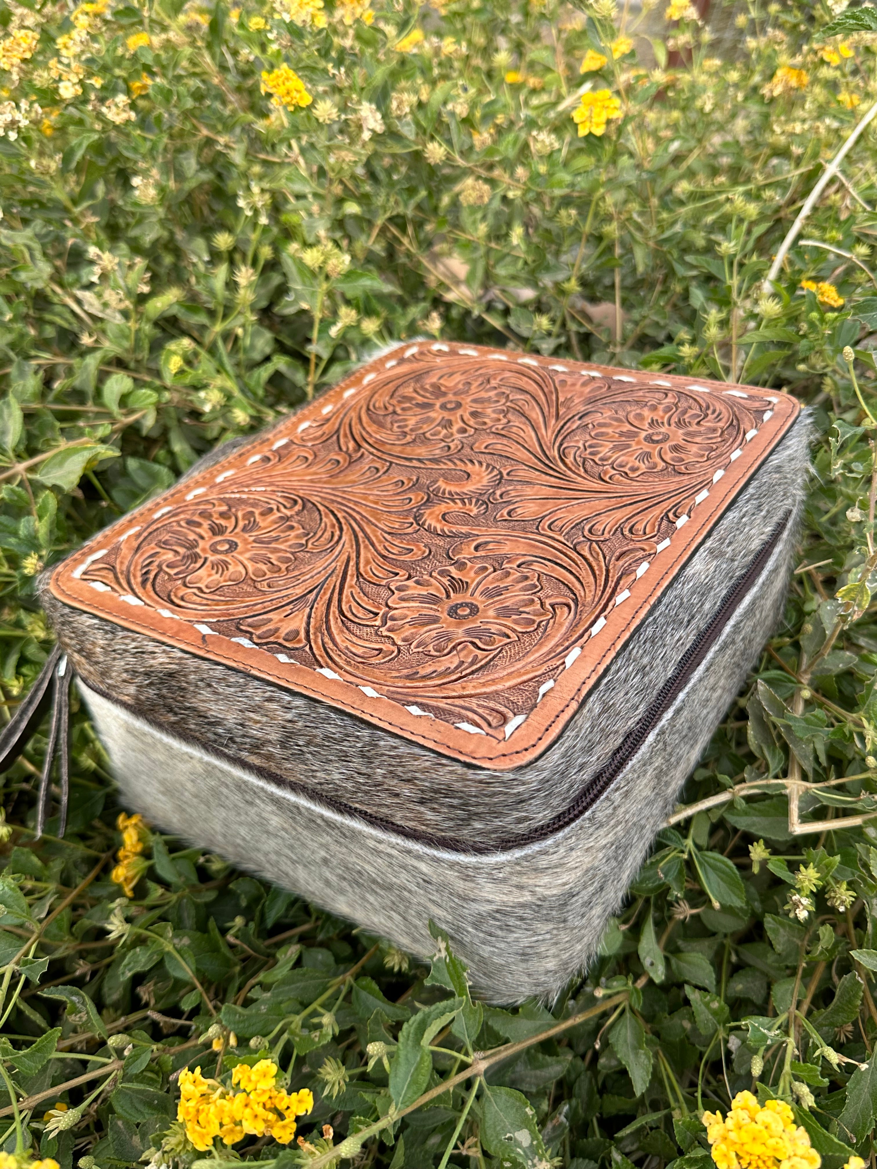 Genuine Leather Cowhide & Tooled Leather Jewelry Box