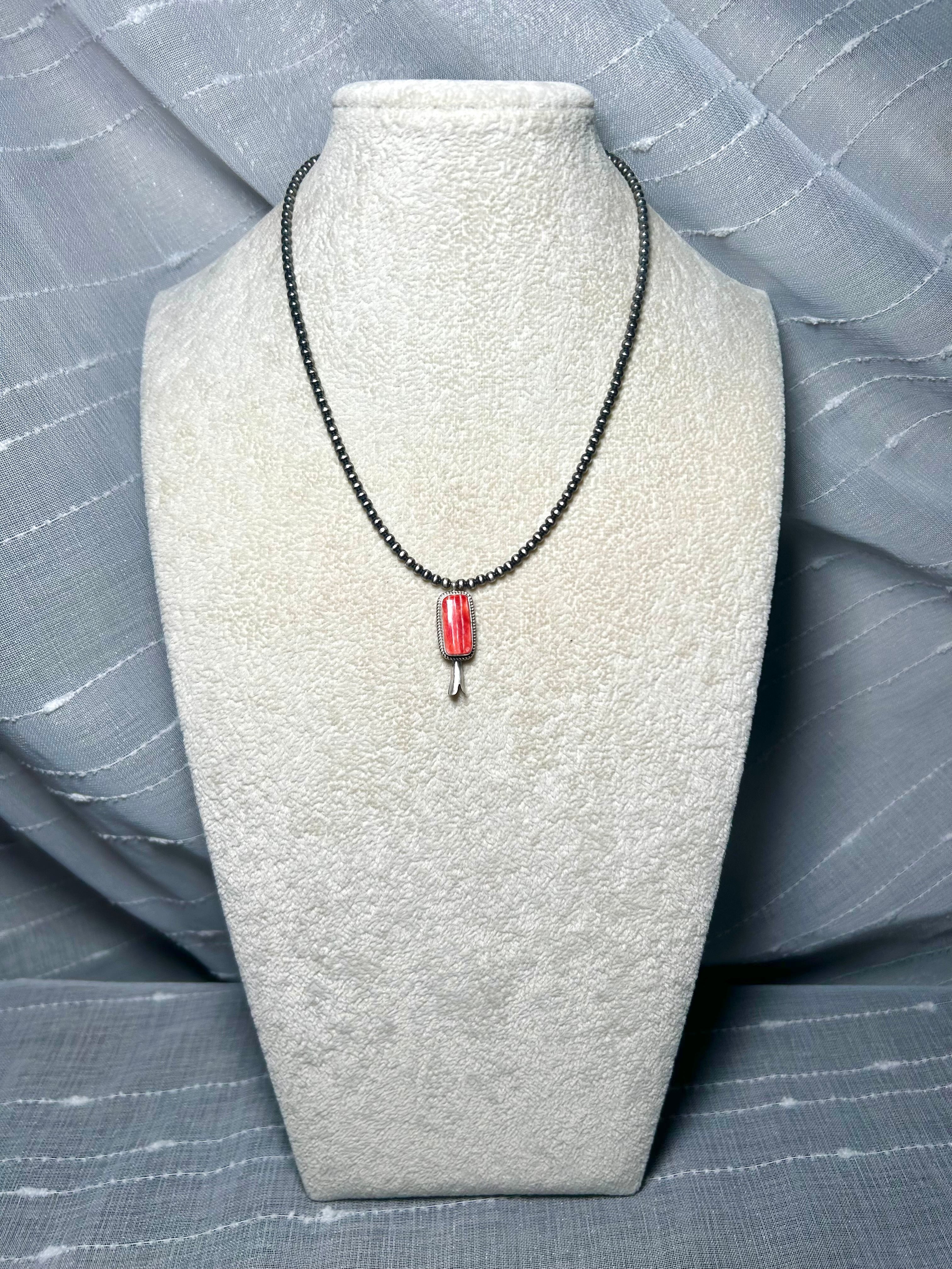George Rios Spiny Oyster & Sterling Silver Necklace