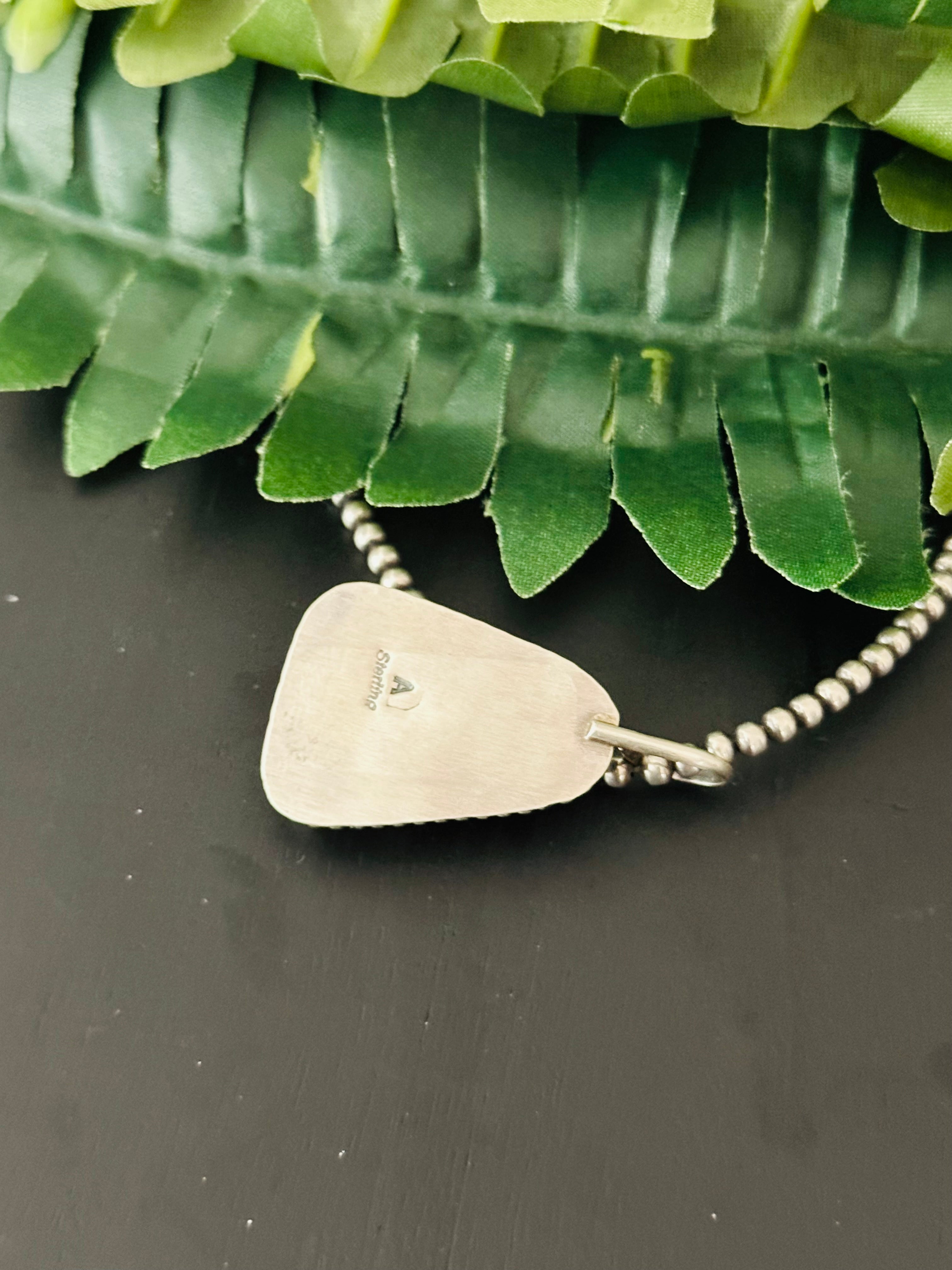 Gorgeous pendant. Anderson Largo Boulder Turquoise & Sterling Silver Pendant. It measures 1 1/2 inches long and 7/8 of an inch wide. Pendant Only. Signed by the artist and stamped sterling silver.