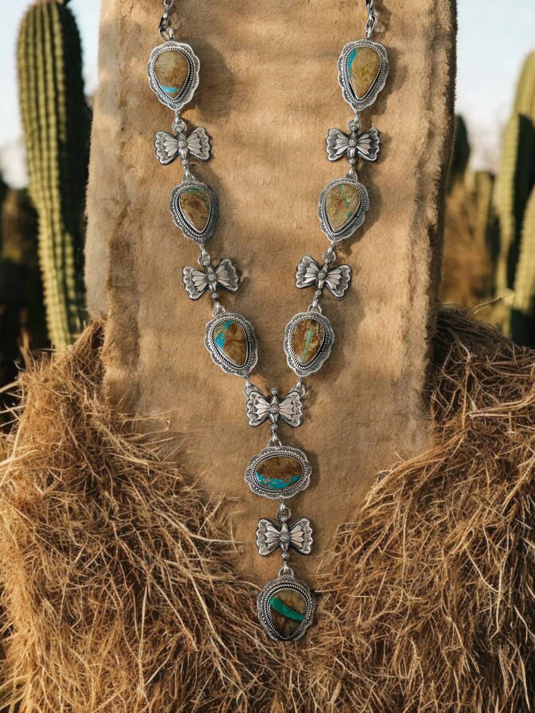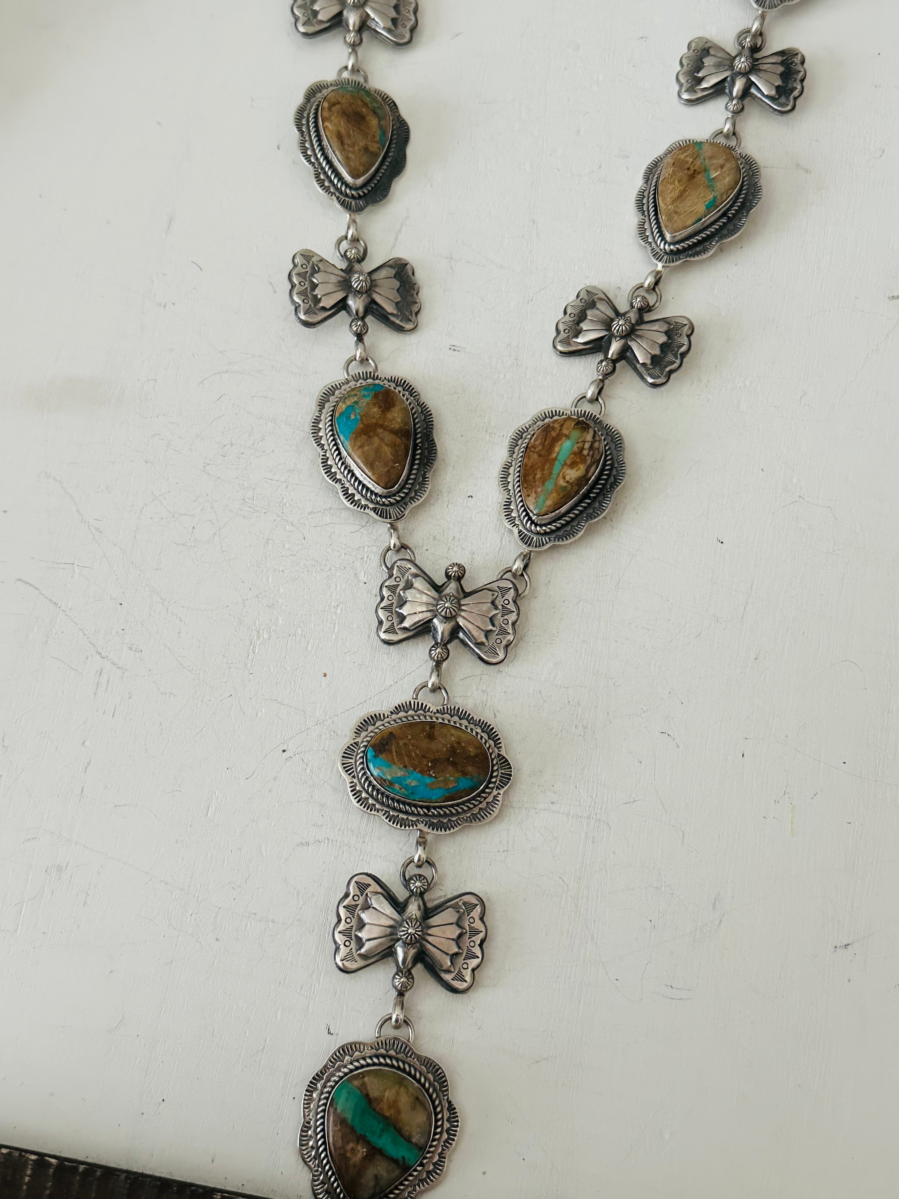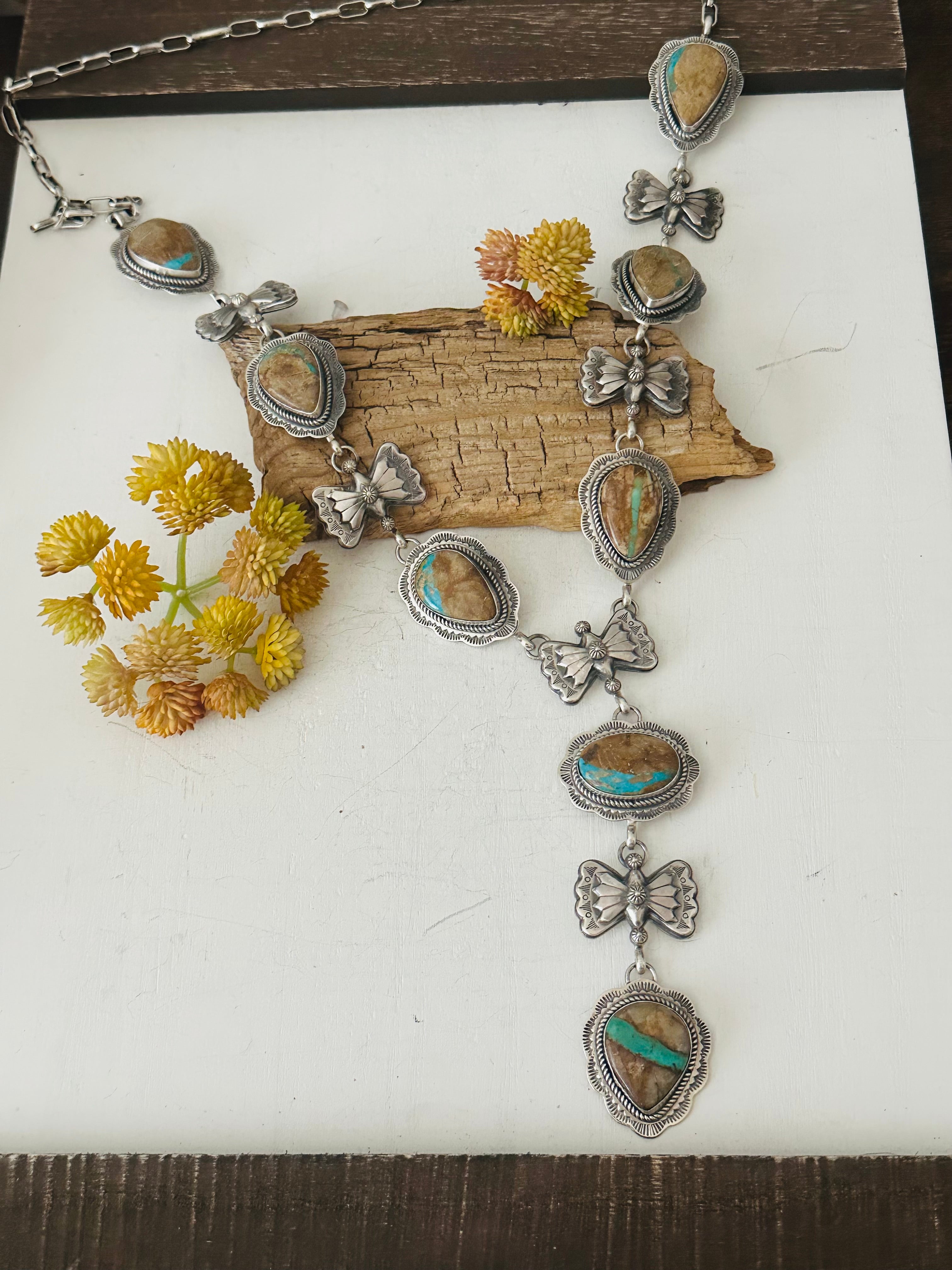 Gilbert Platero Ribbon Royston Turquoise & Sterling Silver Lariat Necklace