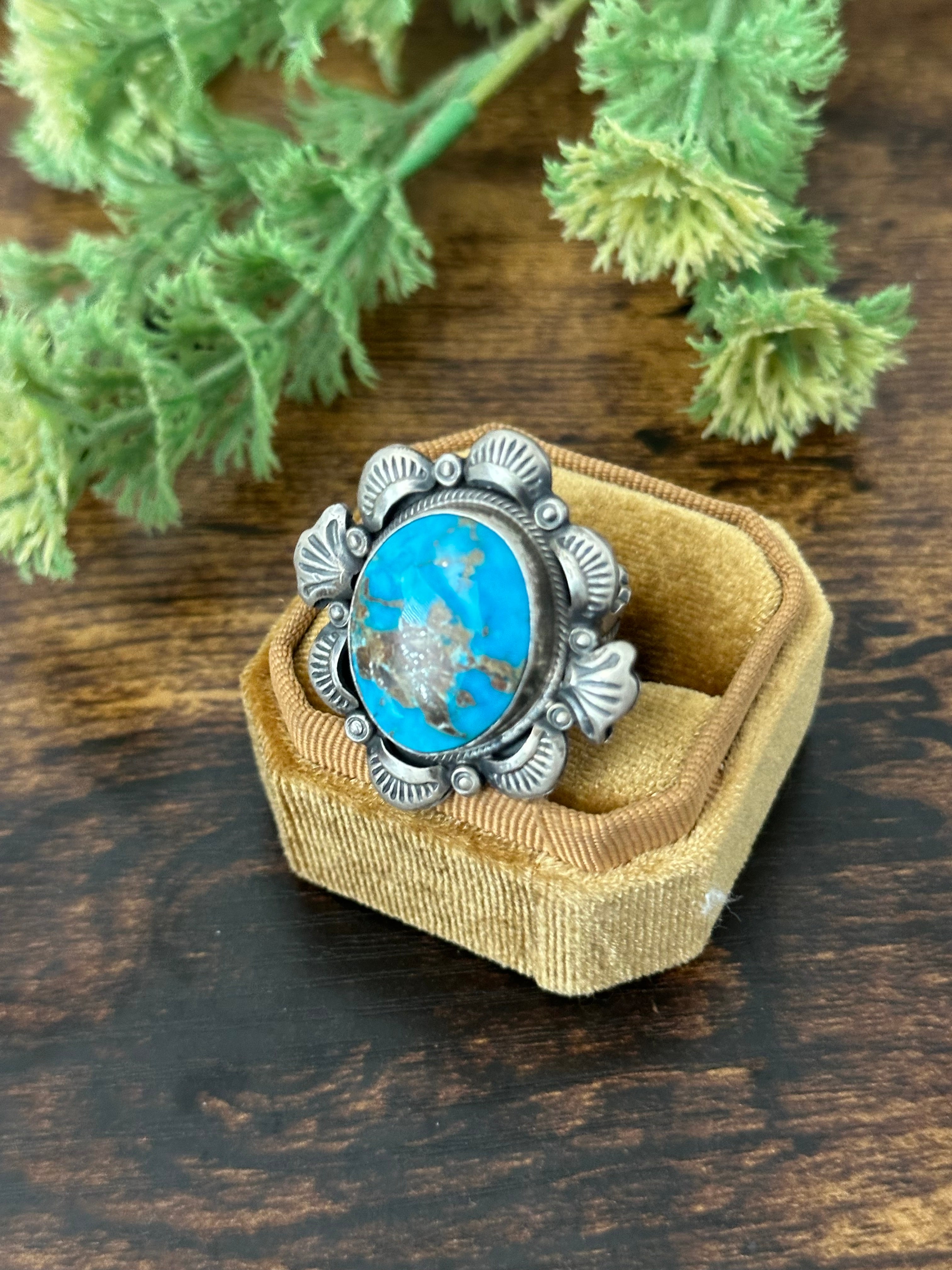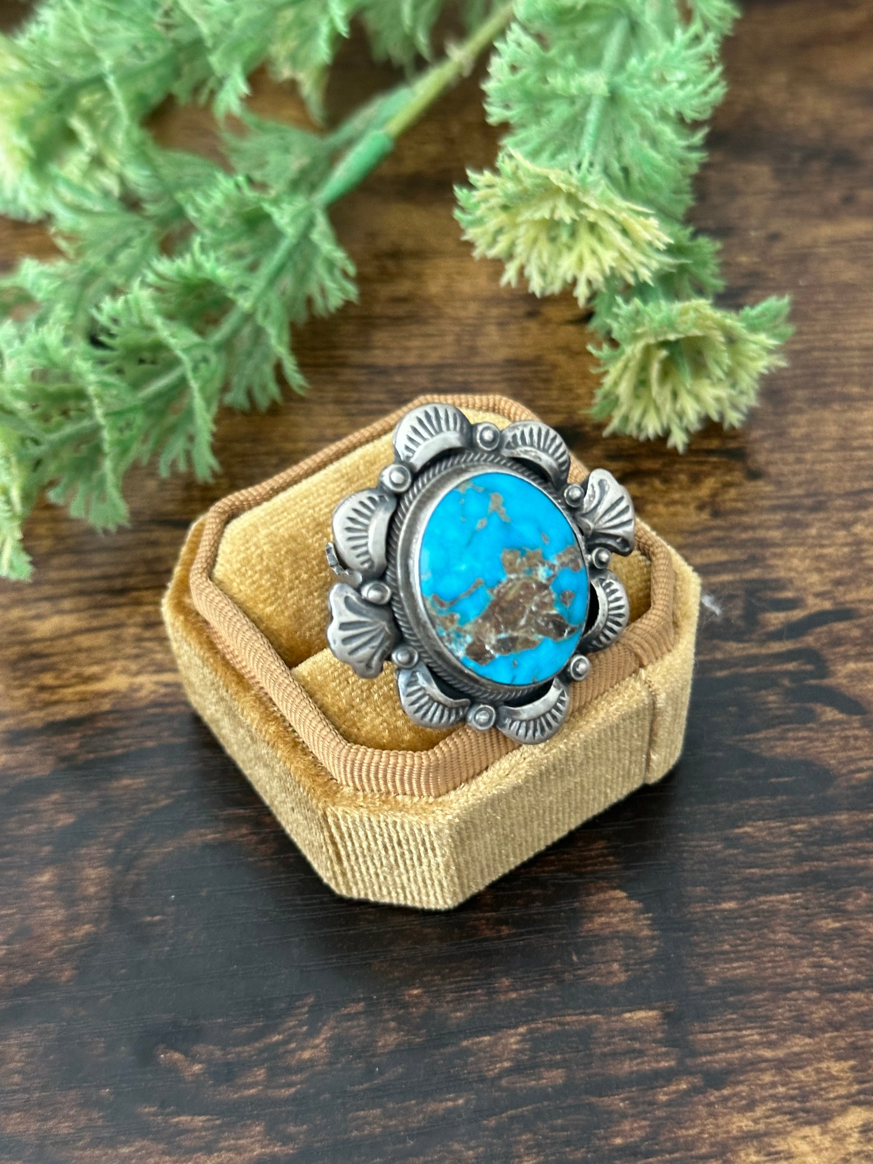 Gilbert Tom Blue Ridge Turquoise & Sterling Silver Ring Size 8.5