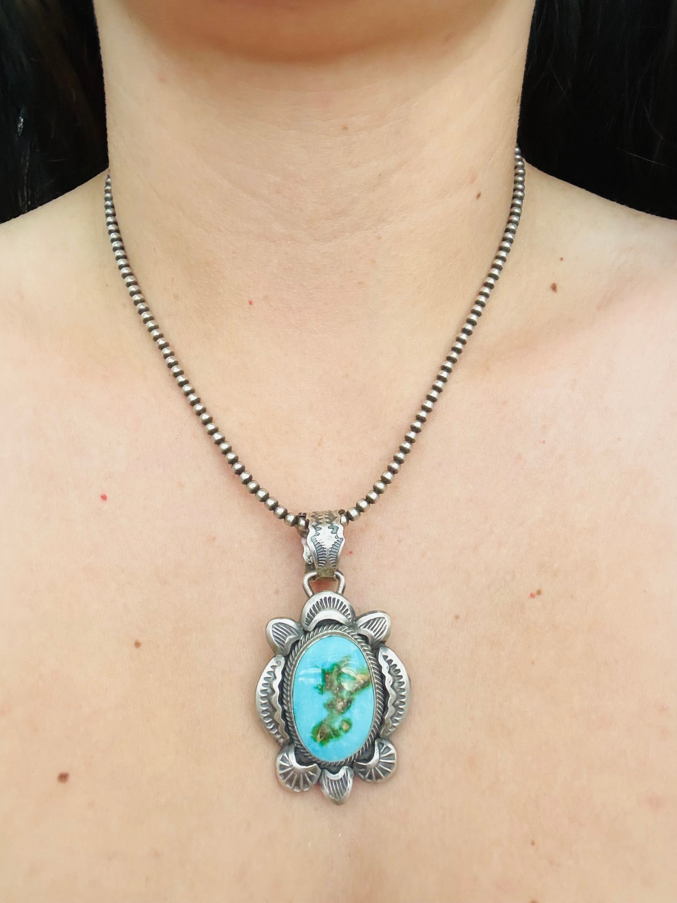 Gilbert Tom Sonoran Mountain Turquoise & Sterling Silver Pendant