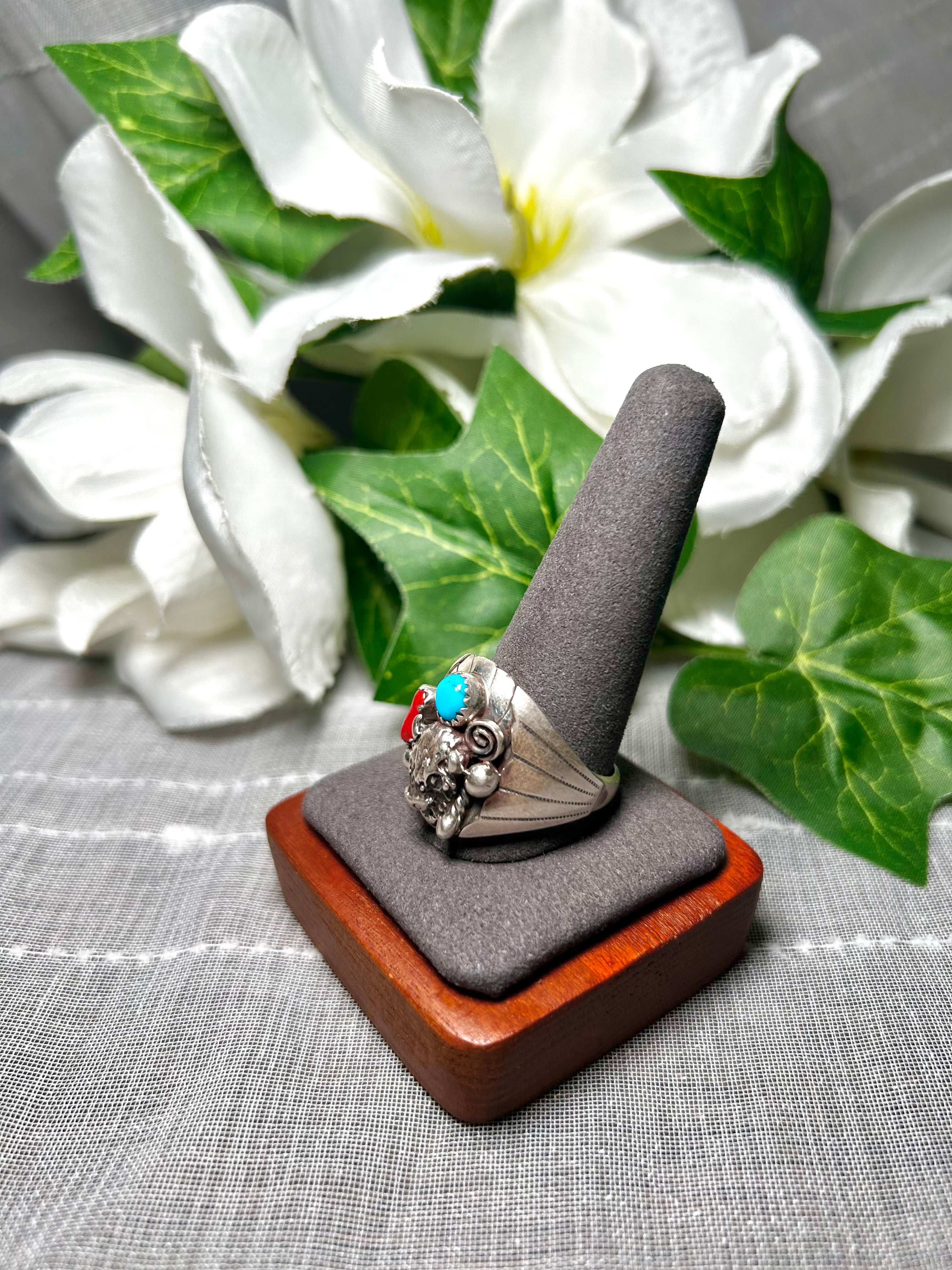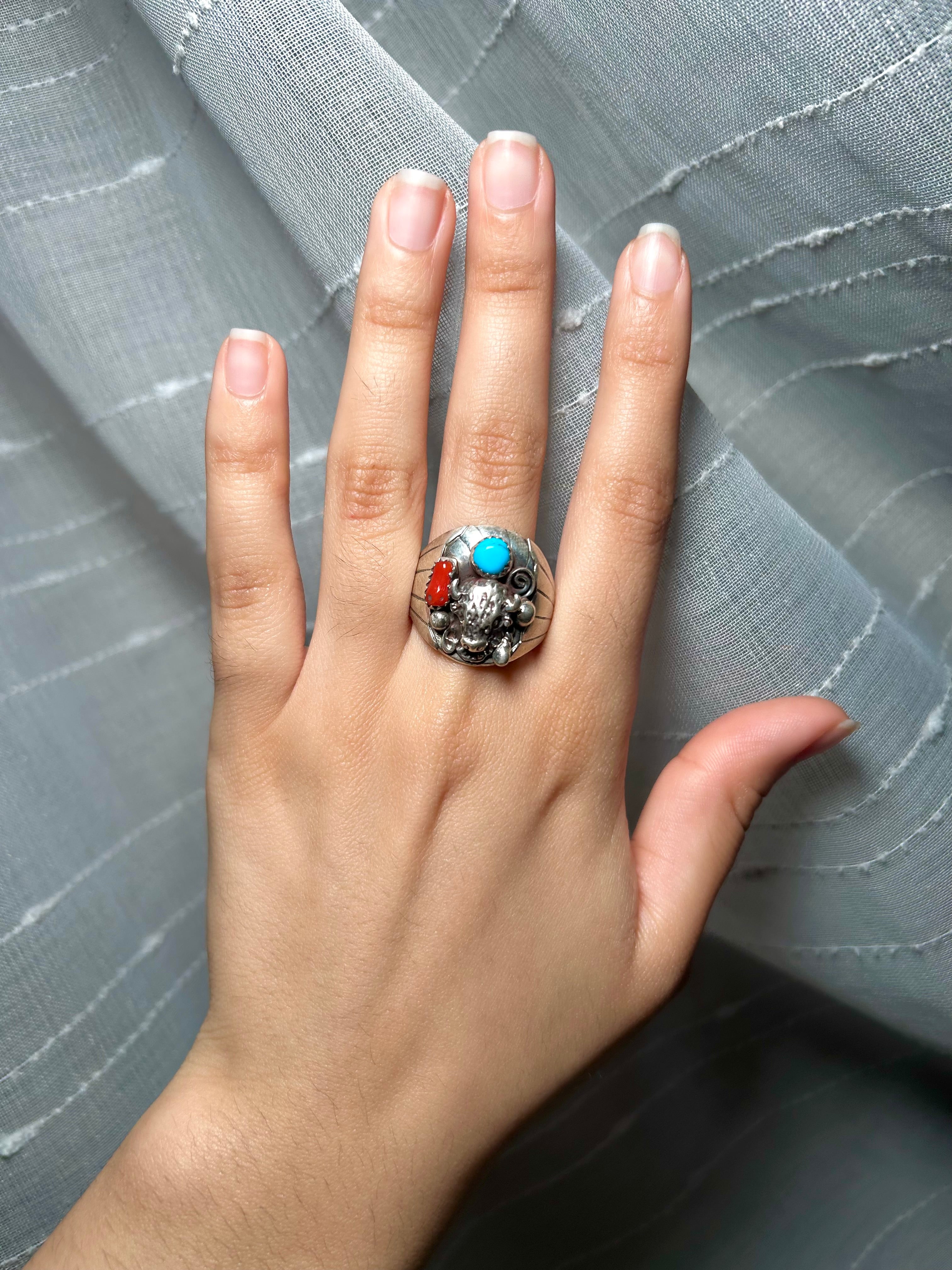 Grace Smith Multi Stone & Sterling Silver Ring Size 12.5. It measures 7/8 of an inch long and 3/4 of an inch wide. Signed by the artist and stamped sterling silver.