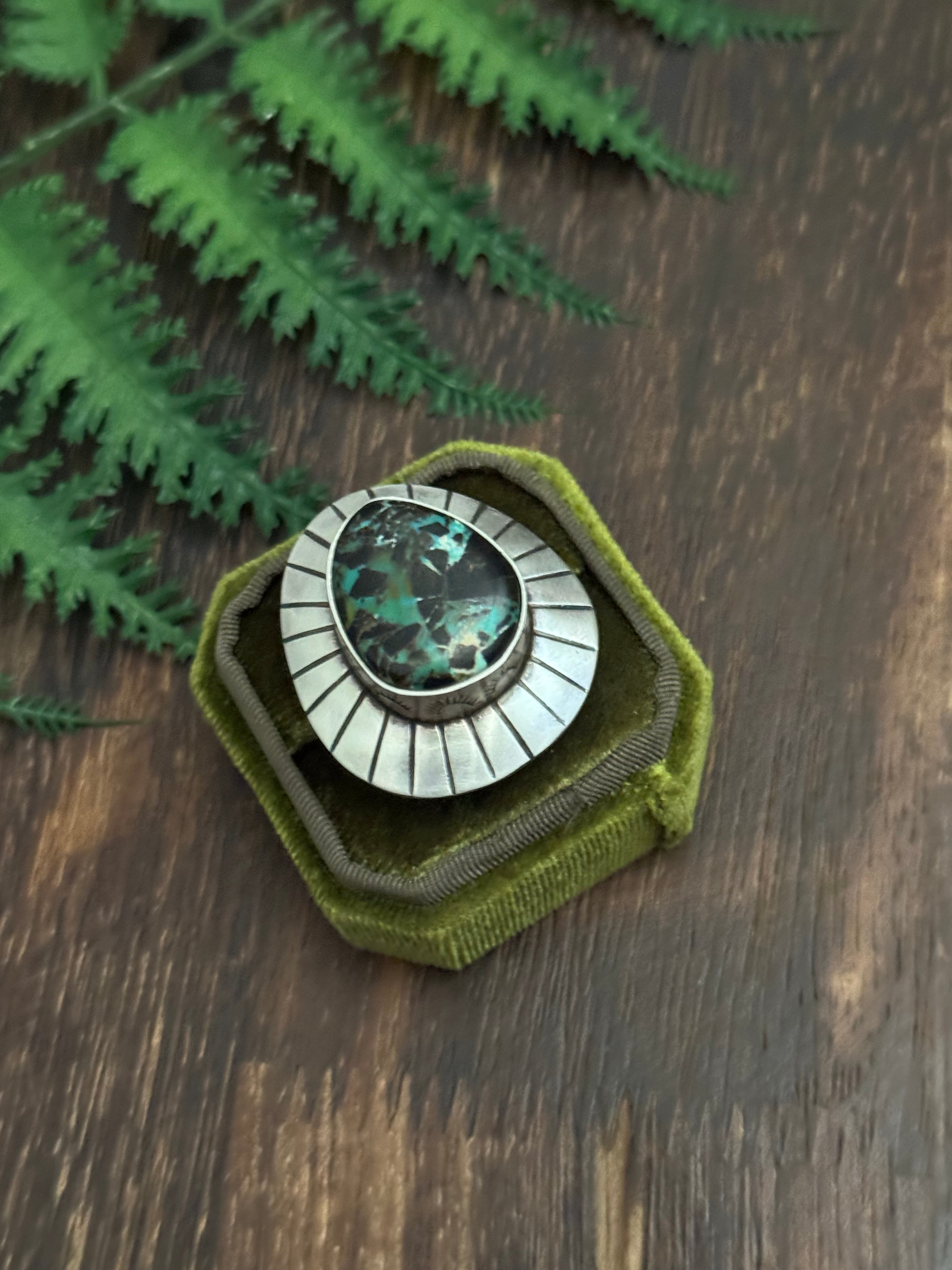 Jamison Hosky Black Jack Turquoise & Sterling Silver Ring Size 7.75