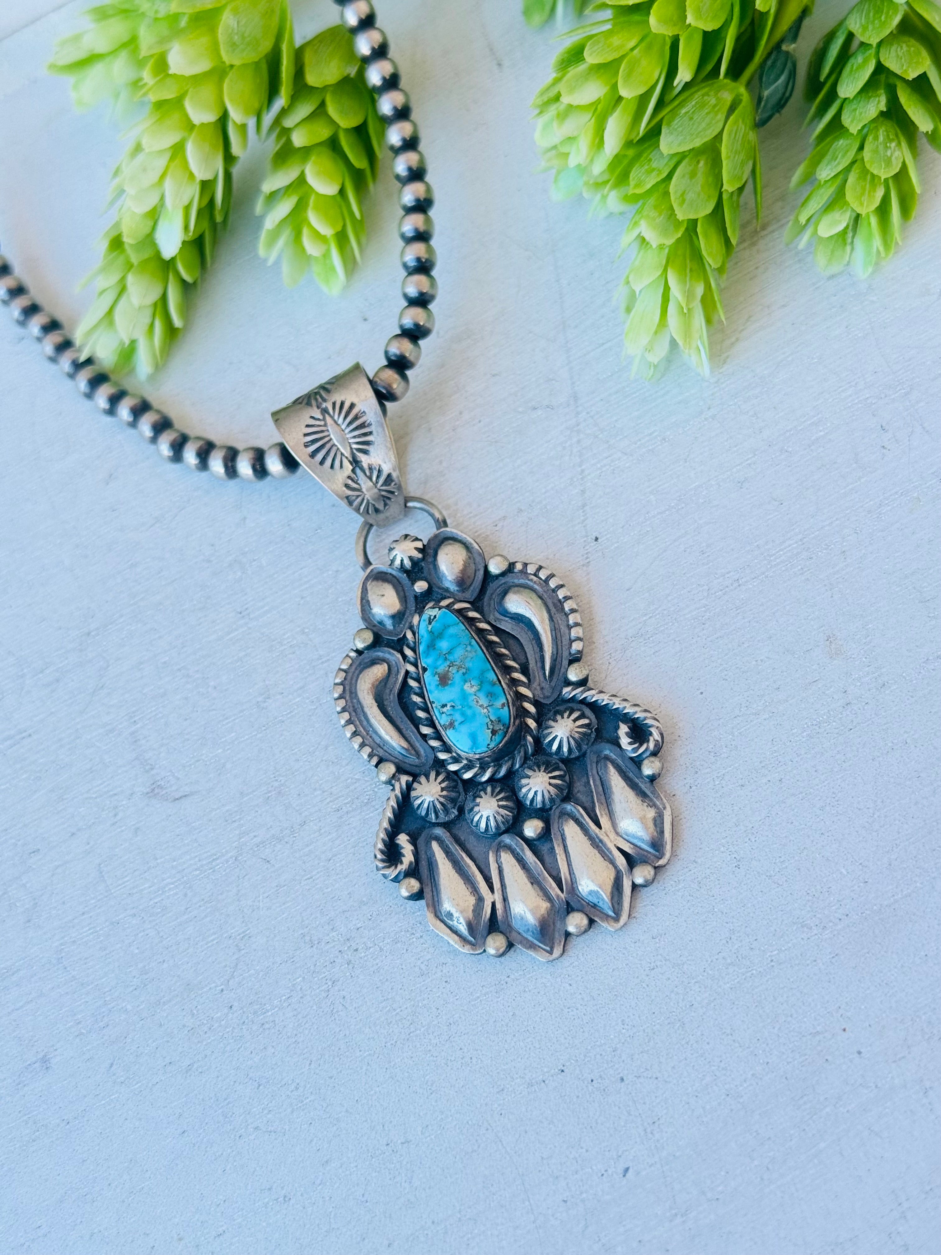 Jeff James Jr Kingman Turquoise & Sterling Silver Pendant