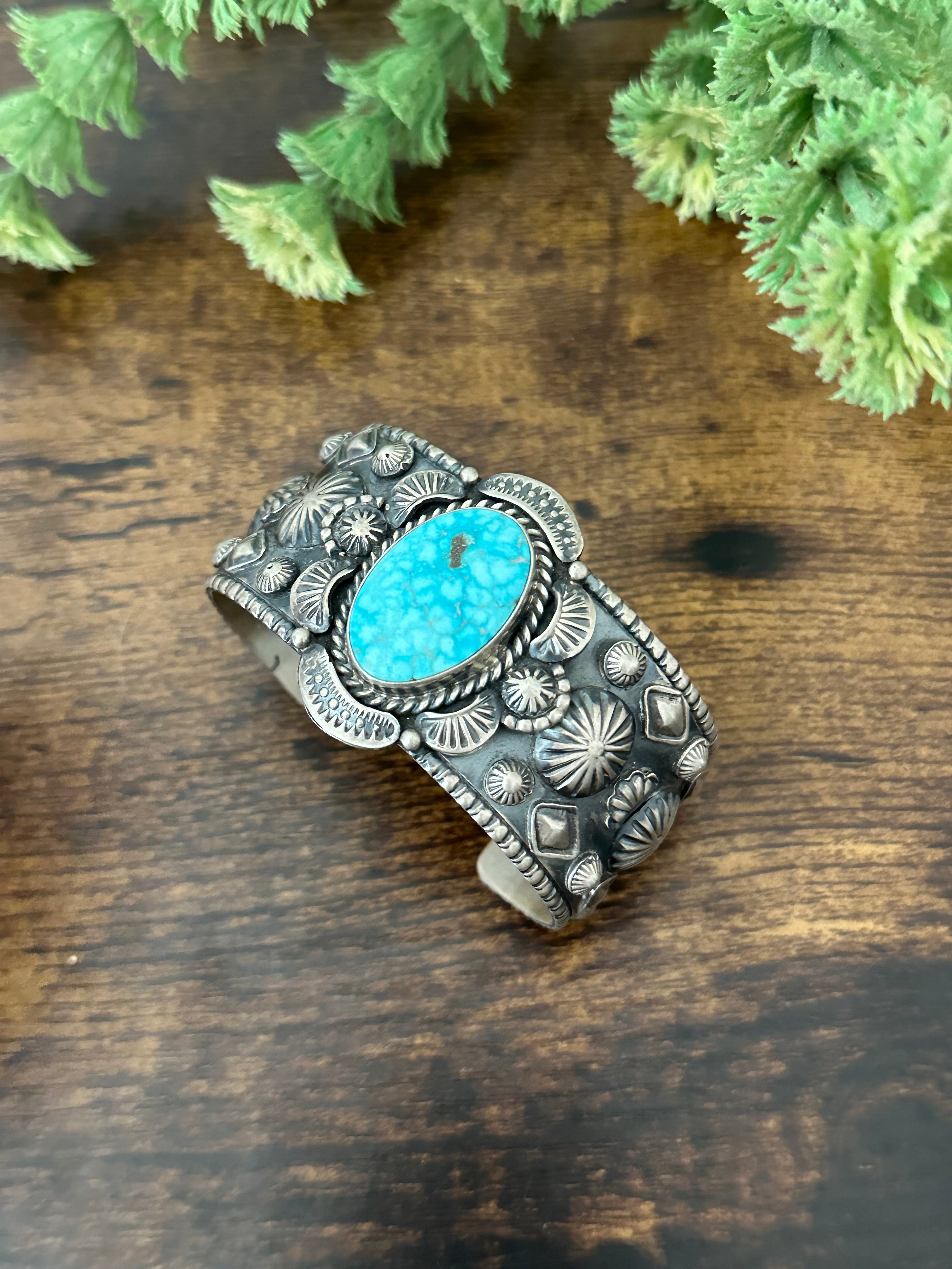 Jeff James Birds Eye Kingman Turquoise & Sterling Silver Cuff Bracelet