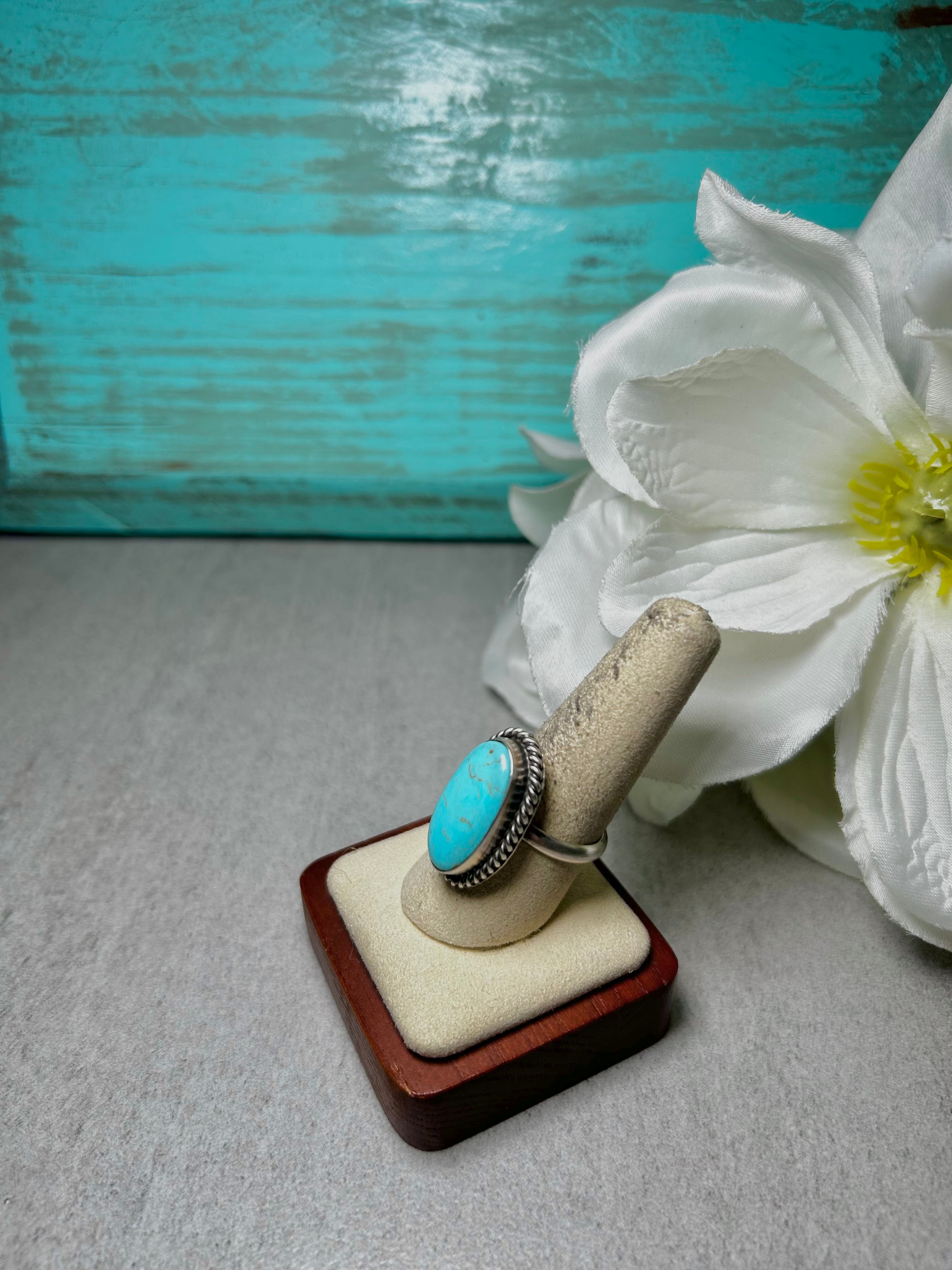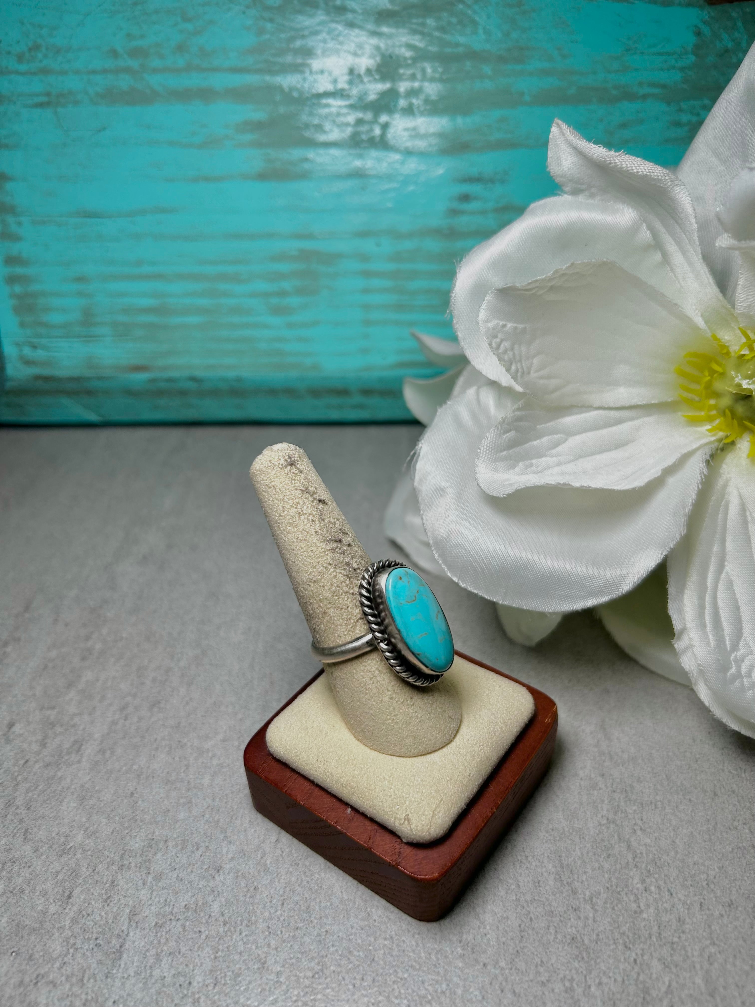 Johnny Dixon Kingman Turquoise & Sterling Silver Adjustable Ring