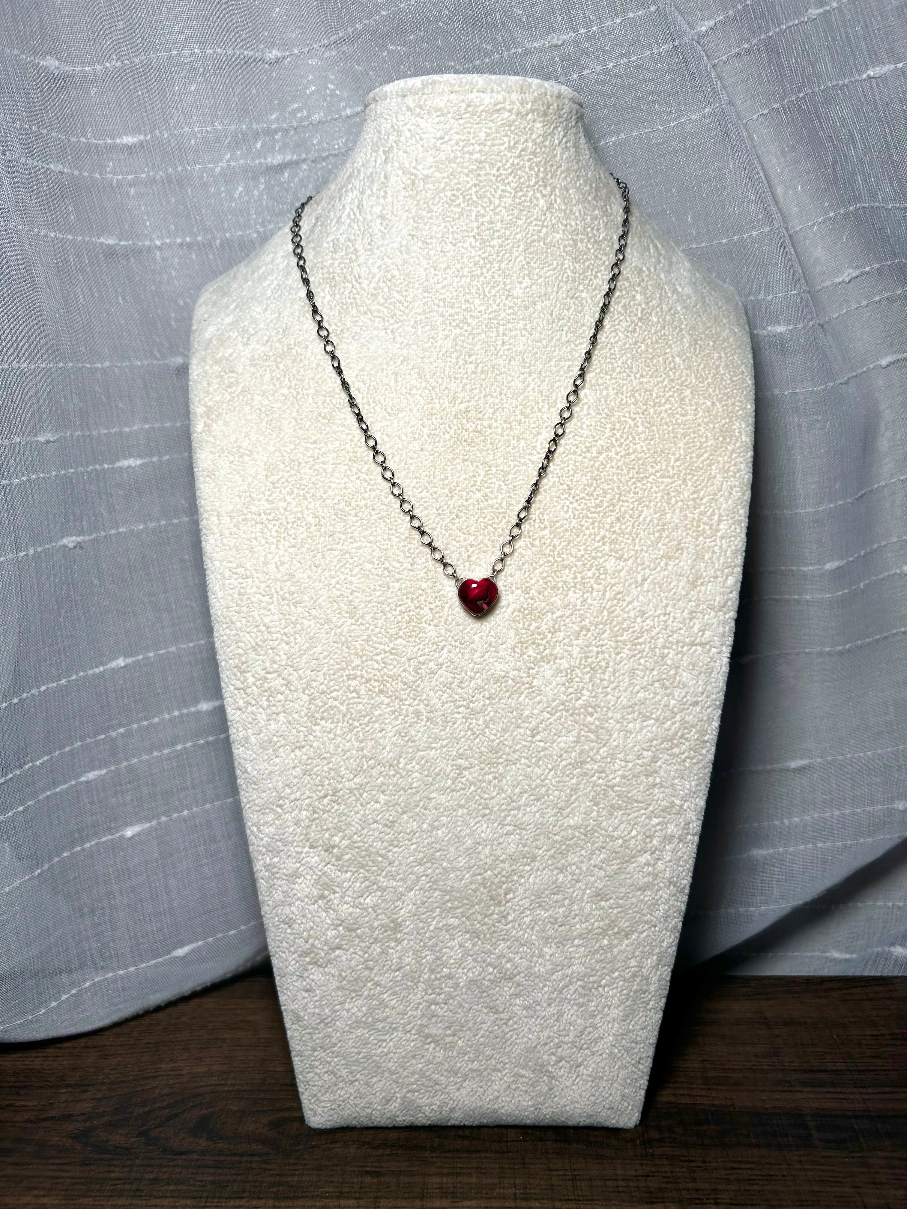 Navajo Made Rose Dahlia & Sterling Silver Necklace. It measures 18 inches long with hang while the chain by itself measures 17 inches long. Signed by the artist and stamped sterling silver. Stones will vary due to natural stones.