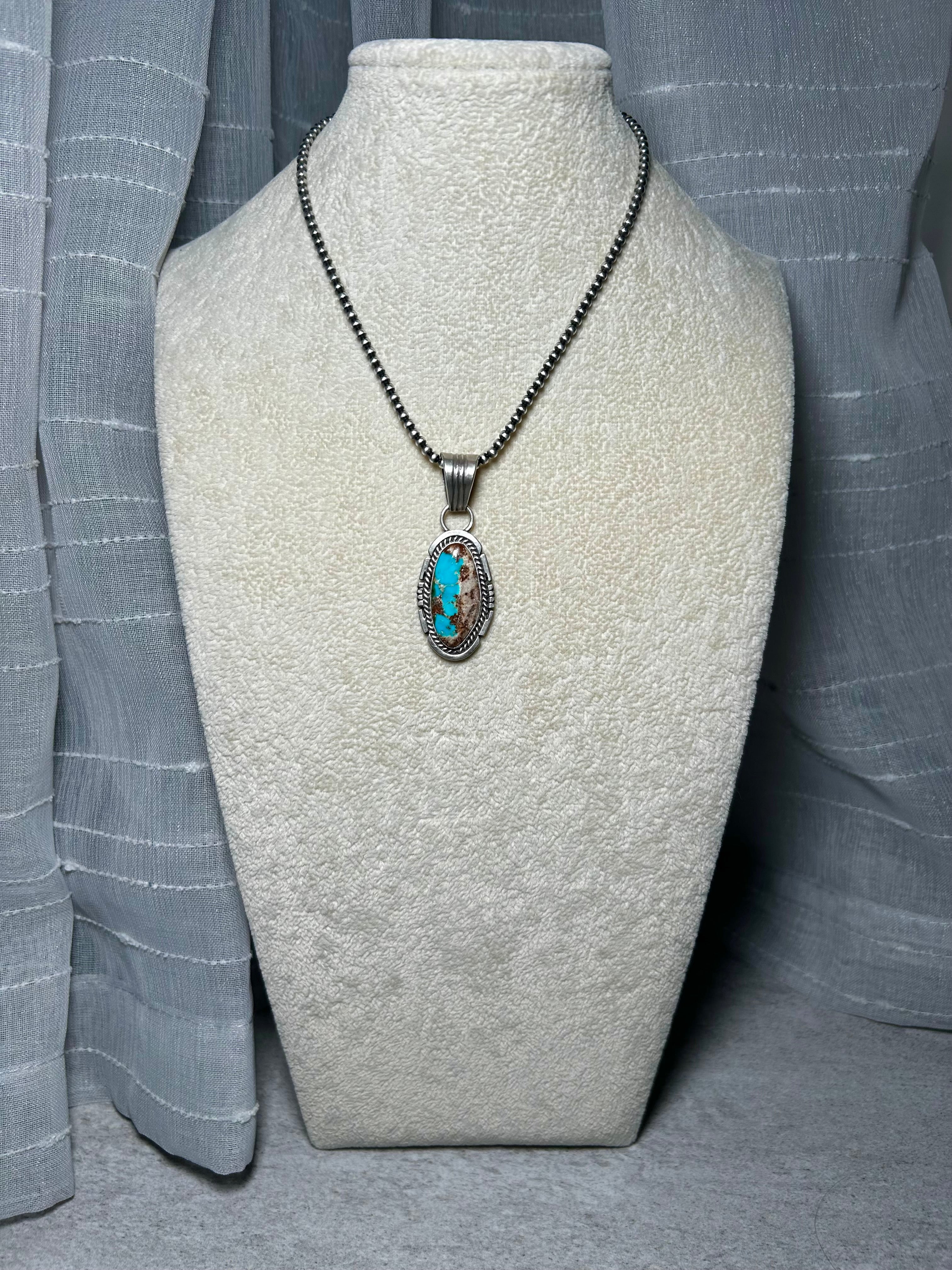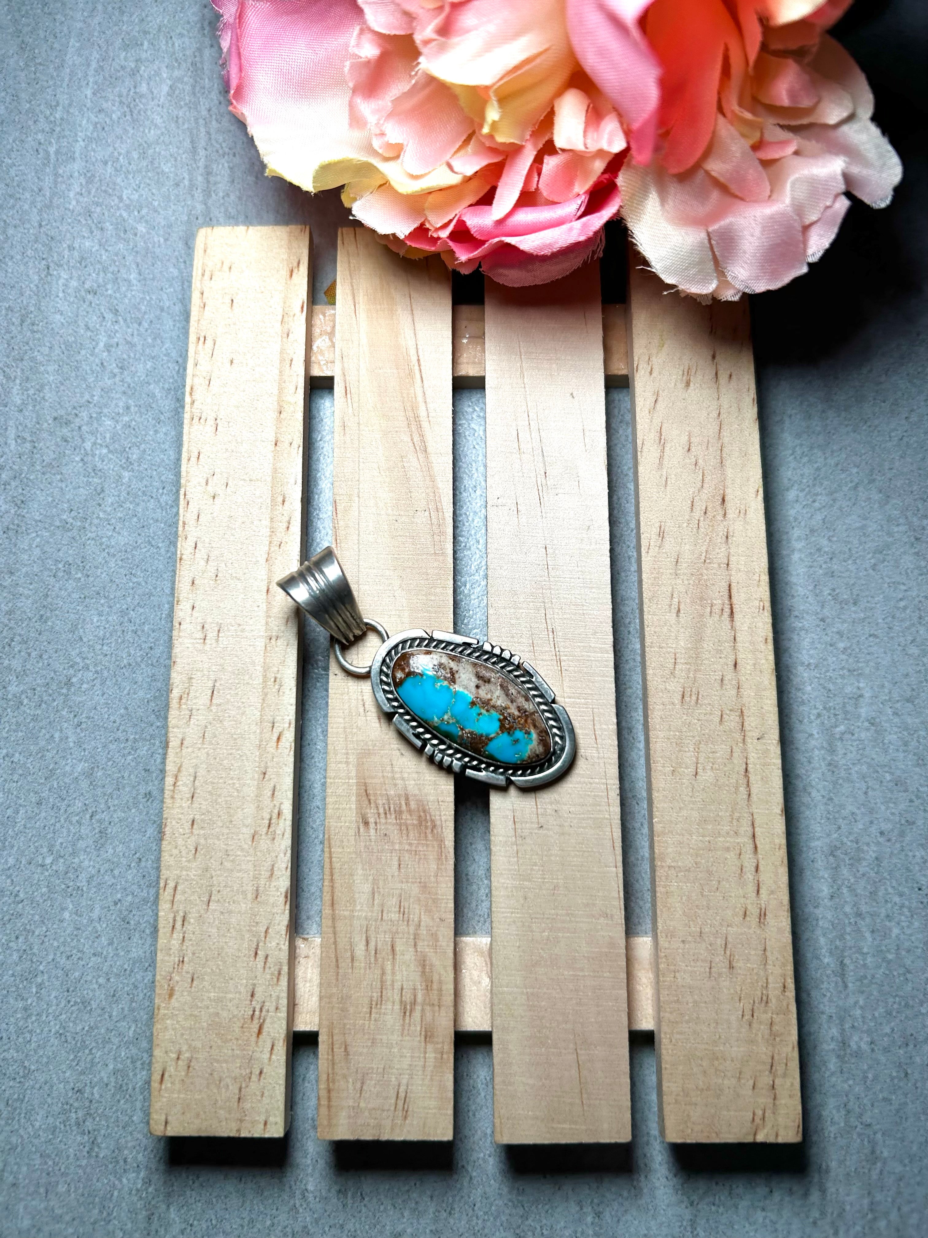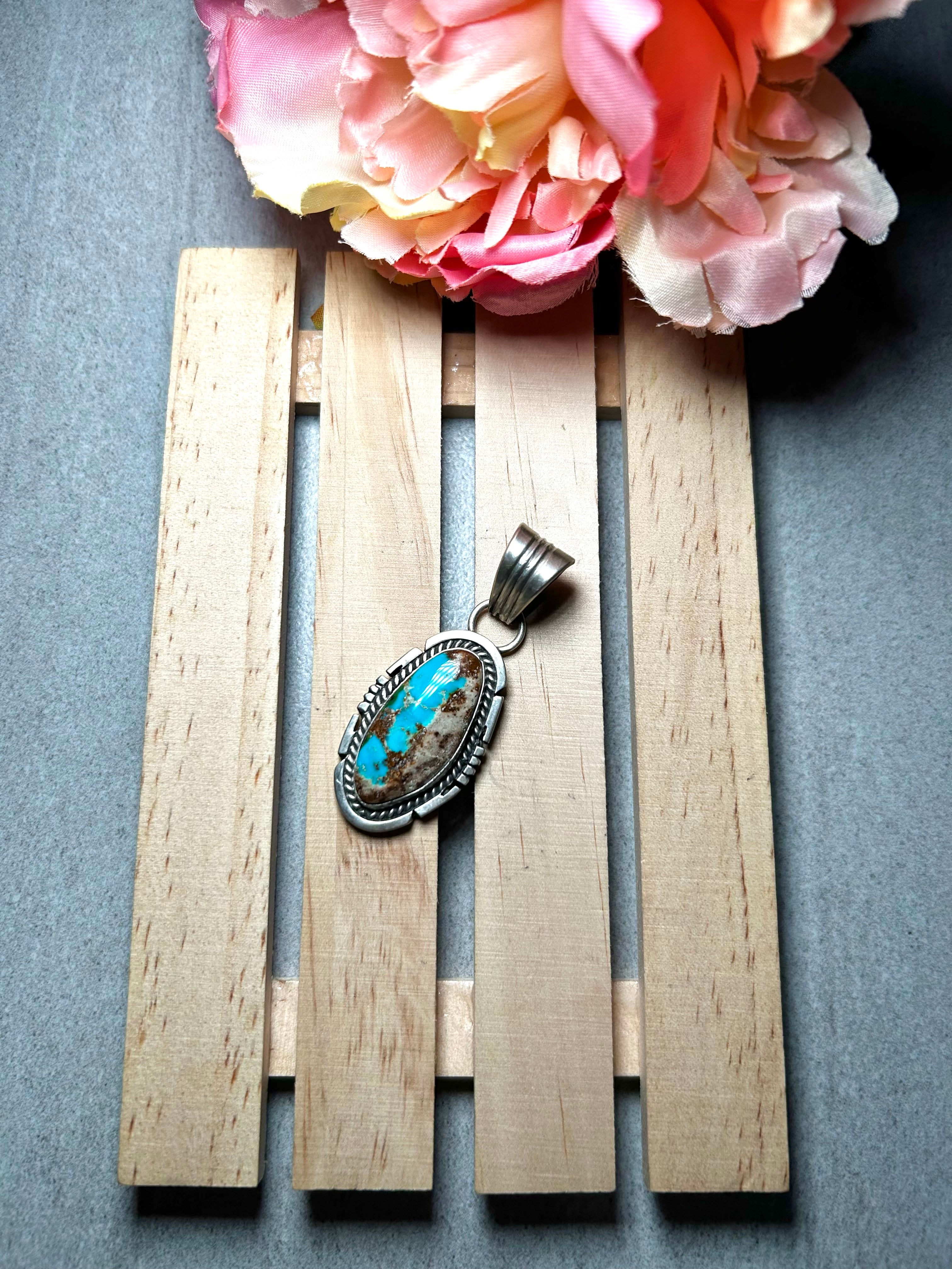 Jon McCray RoystonTurquoise & Sterling Silver Pendant. It measures 2 1/4 inches long and 7/8 of an inch wide. Pendant Only!! Signed by the artist and stamped sterling silver.