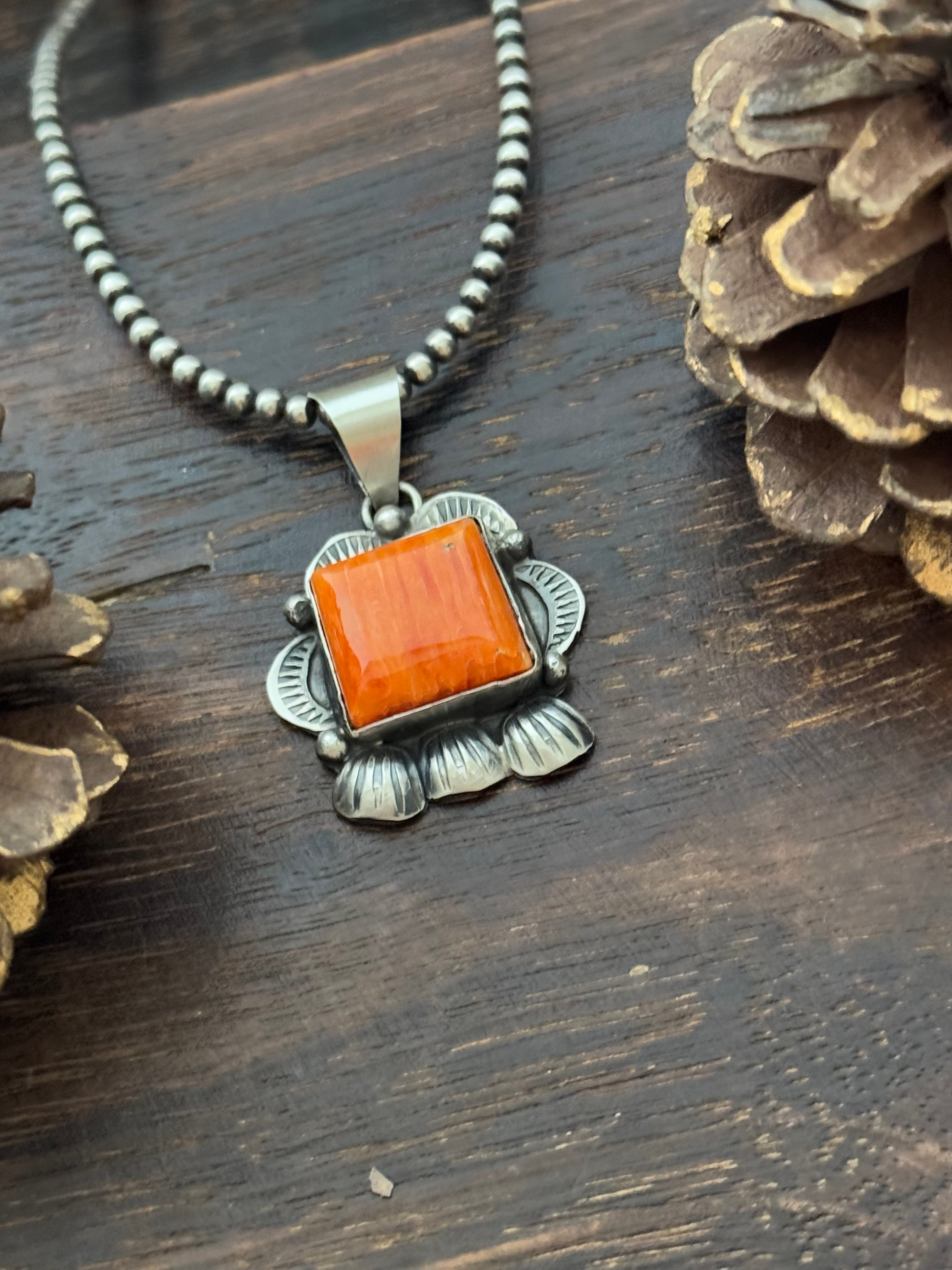 Juanita Long Spiny Oyster & Sterling Silver Pendant