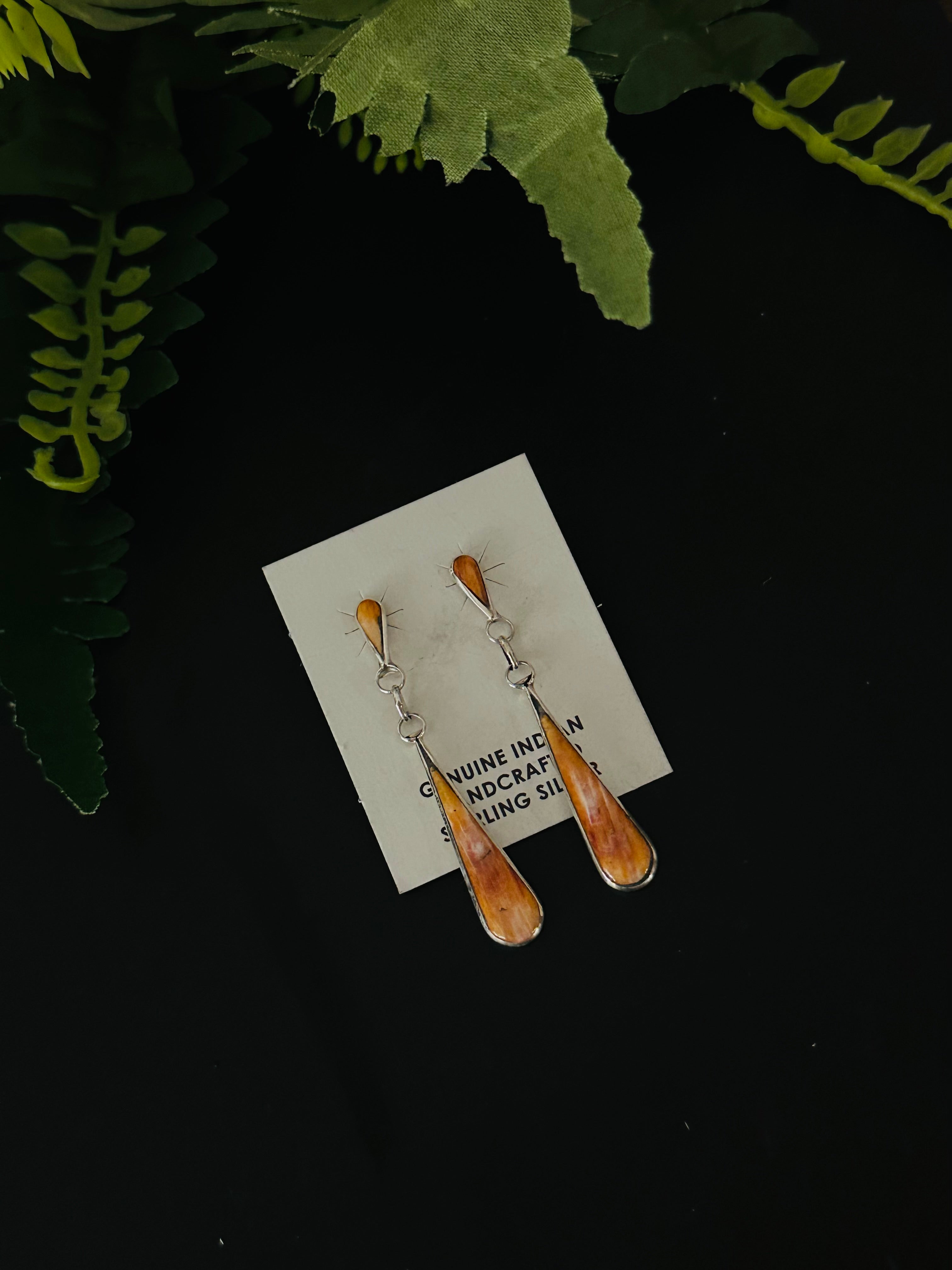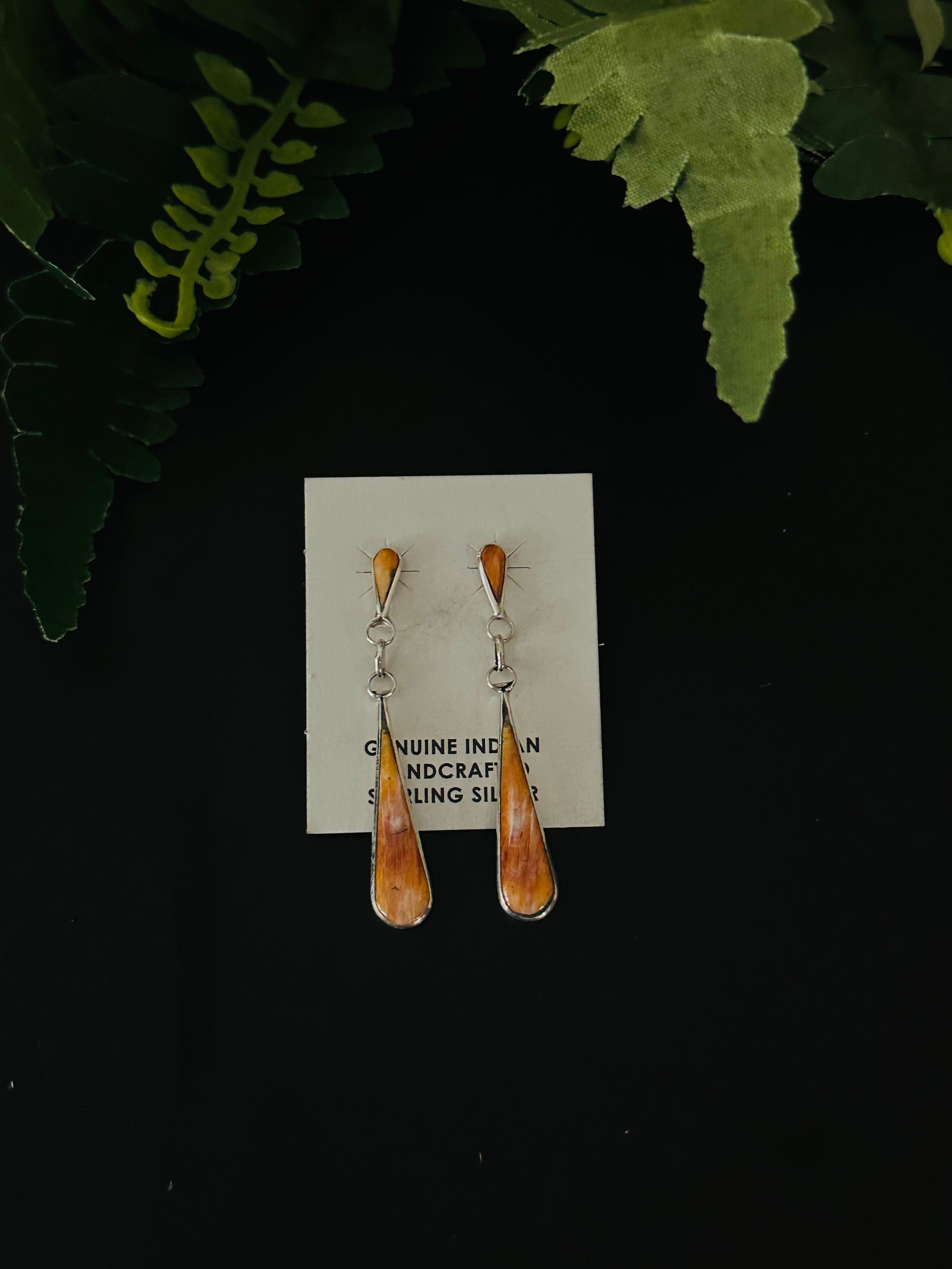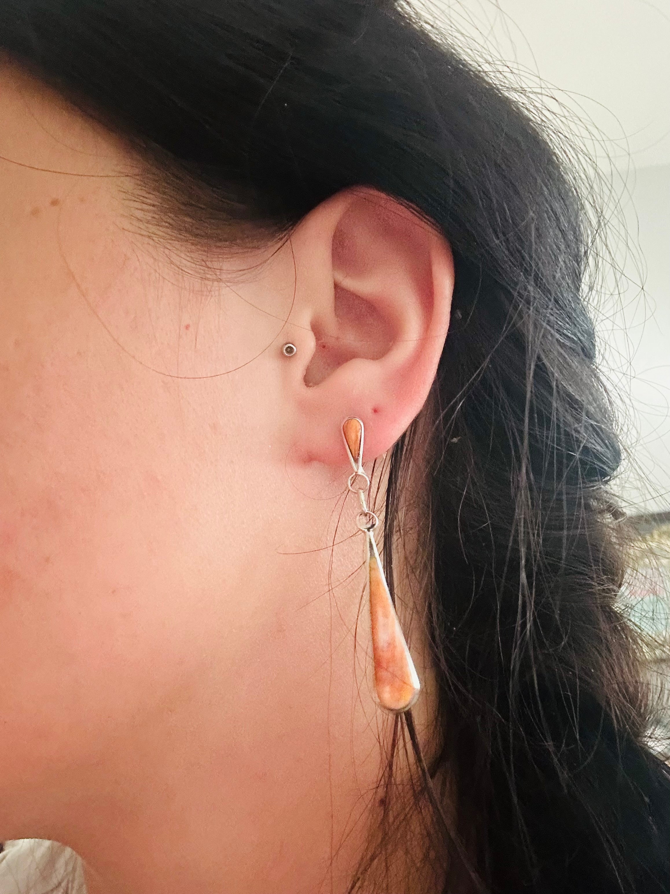 Beautiful lightweight Dangle Earrings. Angela Gasper Spiny Oyster & Sterling Silver Post Dangle Earrings. It measures 2 1/8 inches long and 1/4 of an inch wide. Stamped sterling silver.