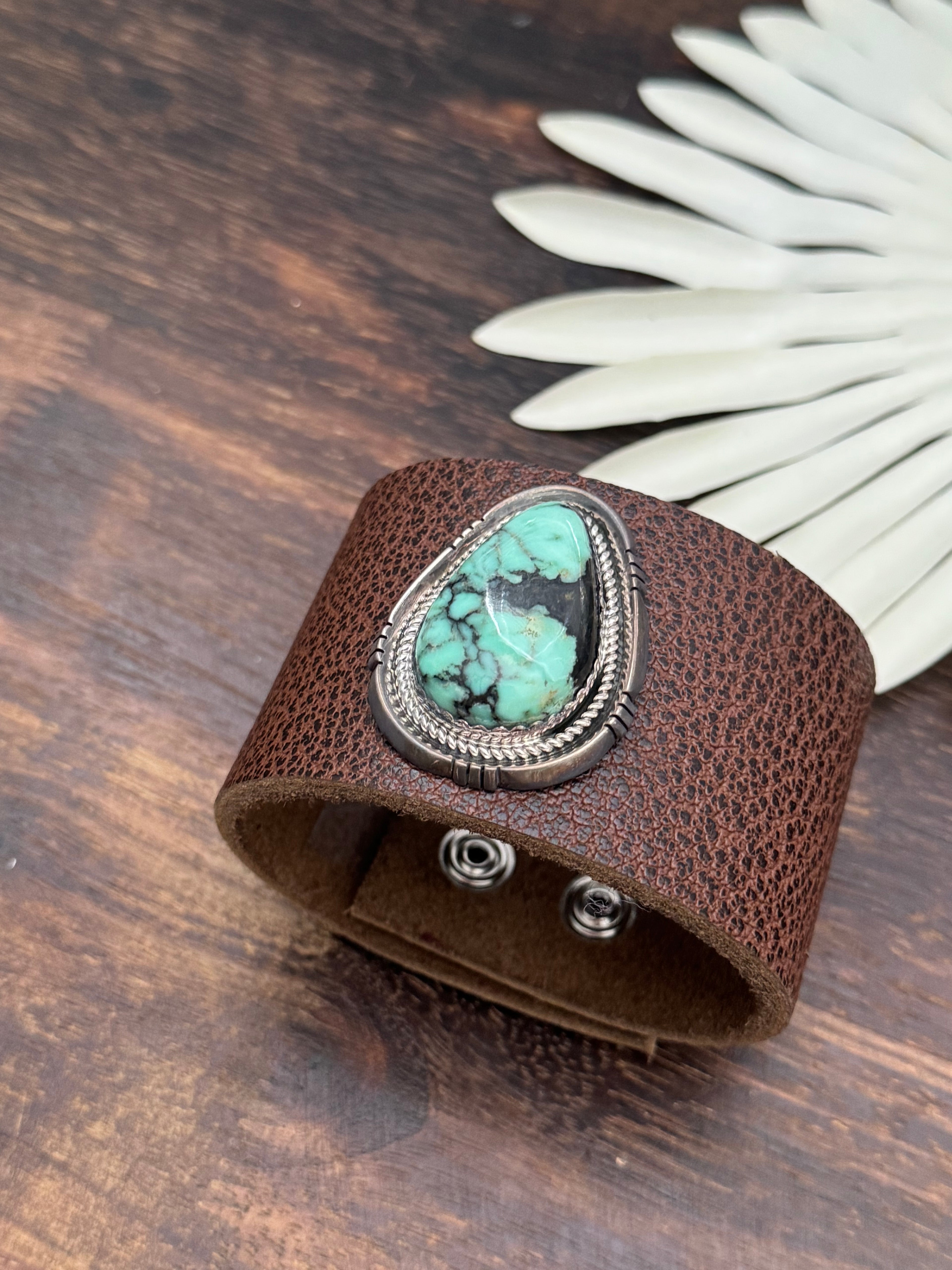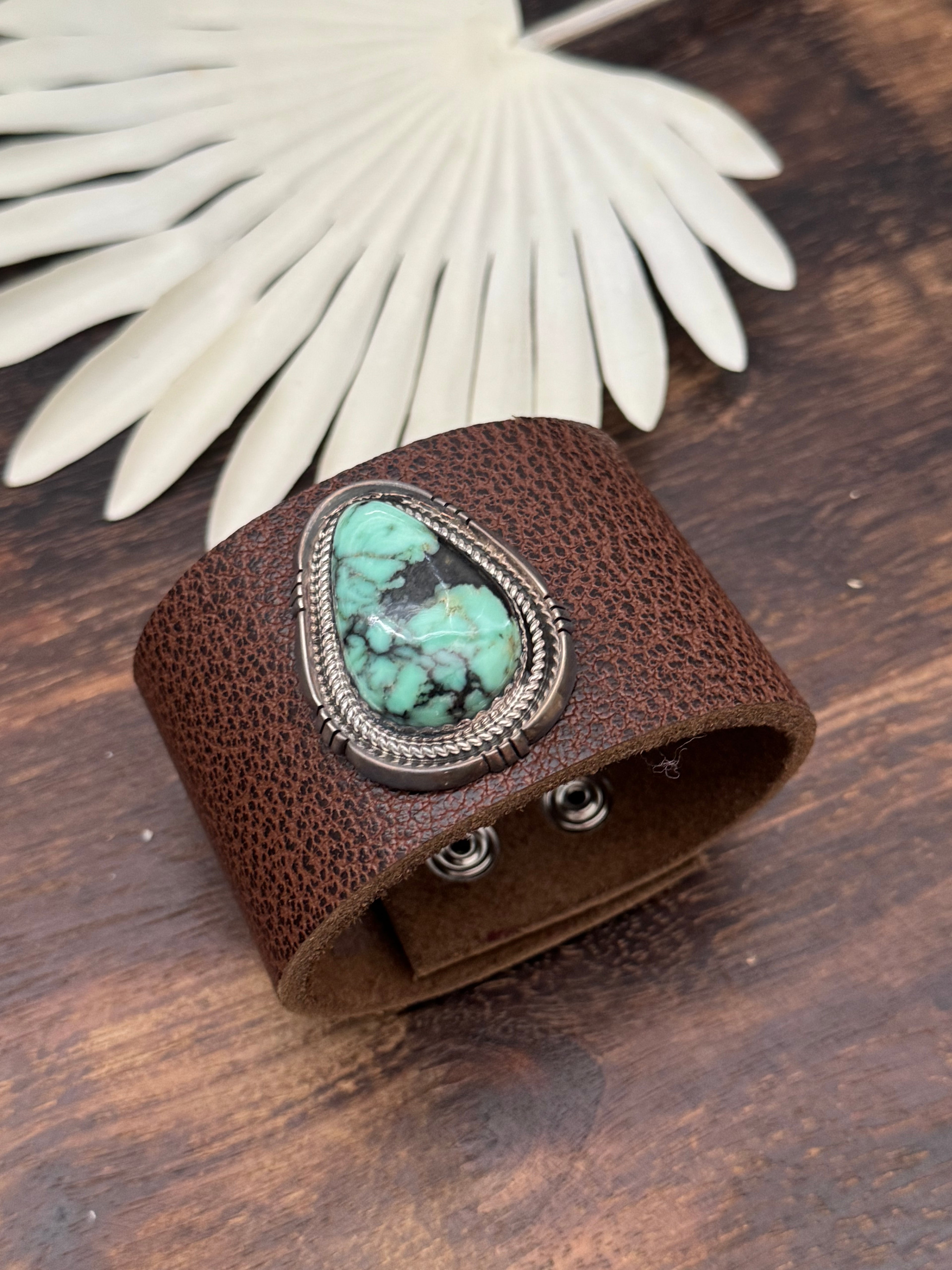 Julia Etsitty New Lander Variscite & Genuine Leather Bracelet