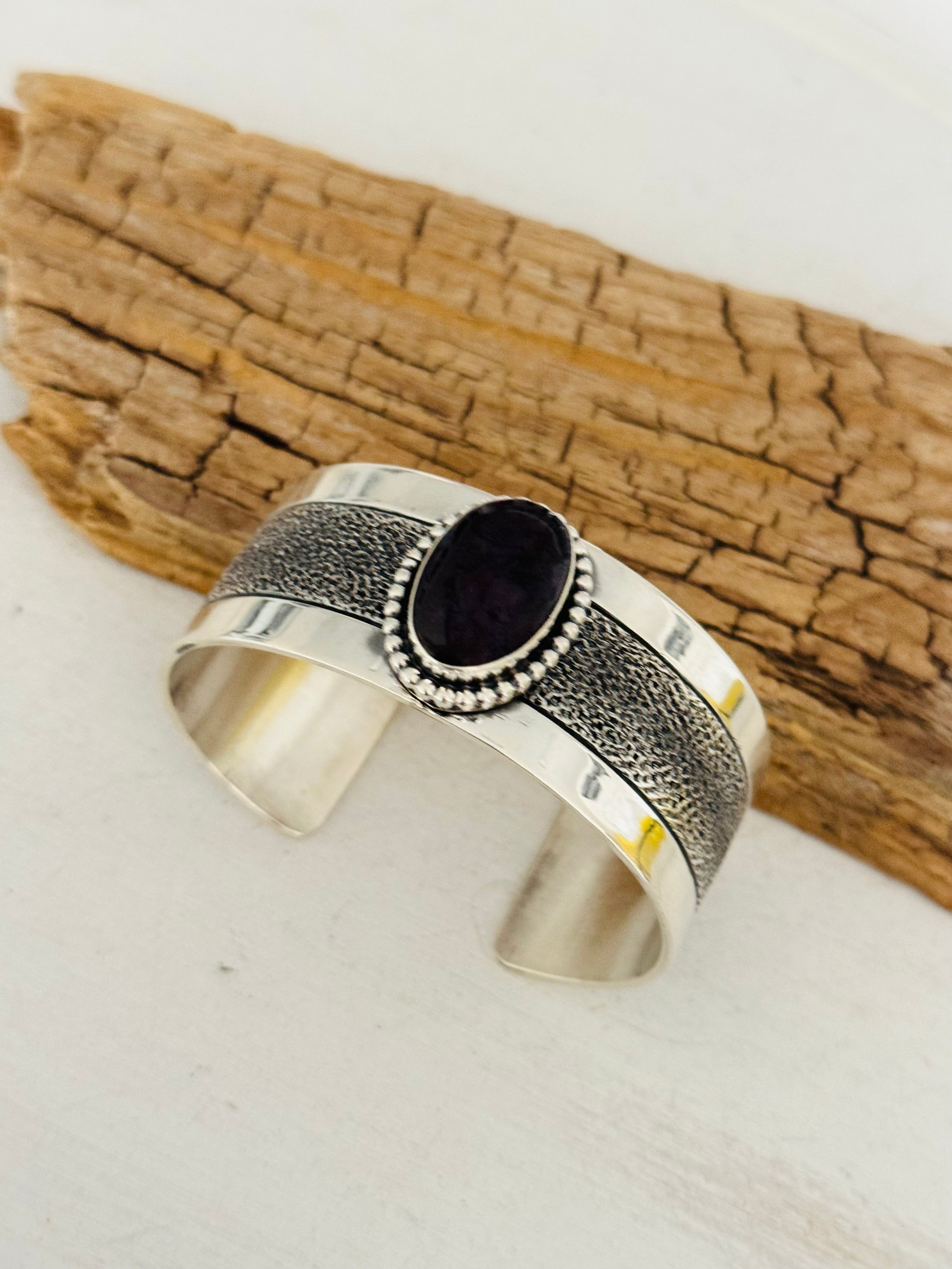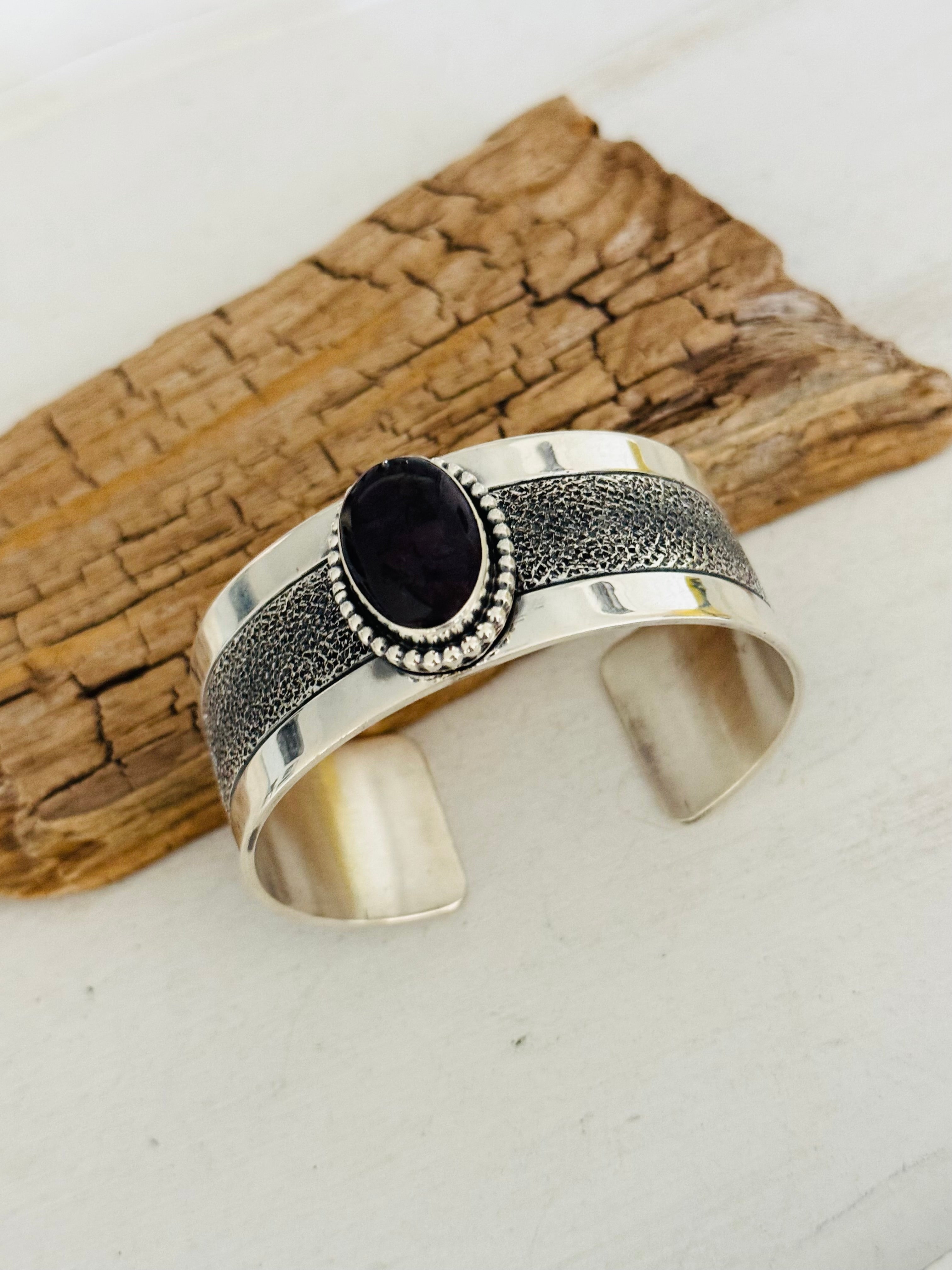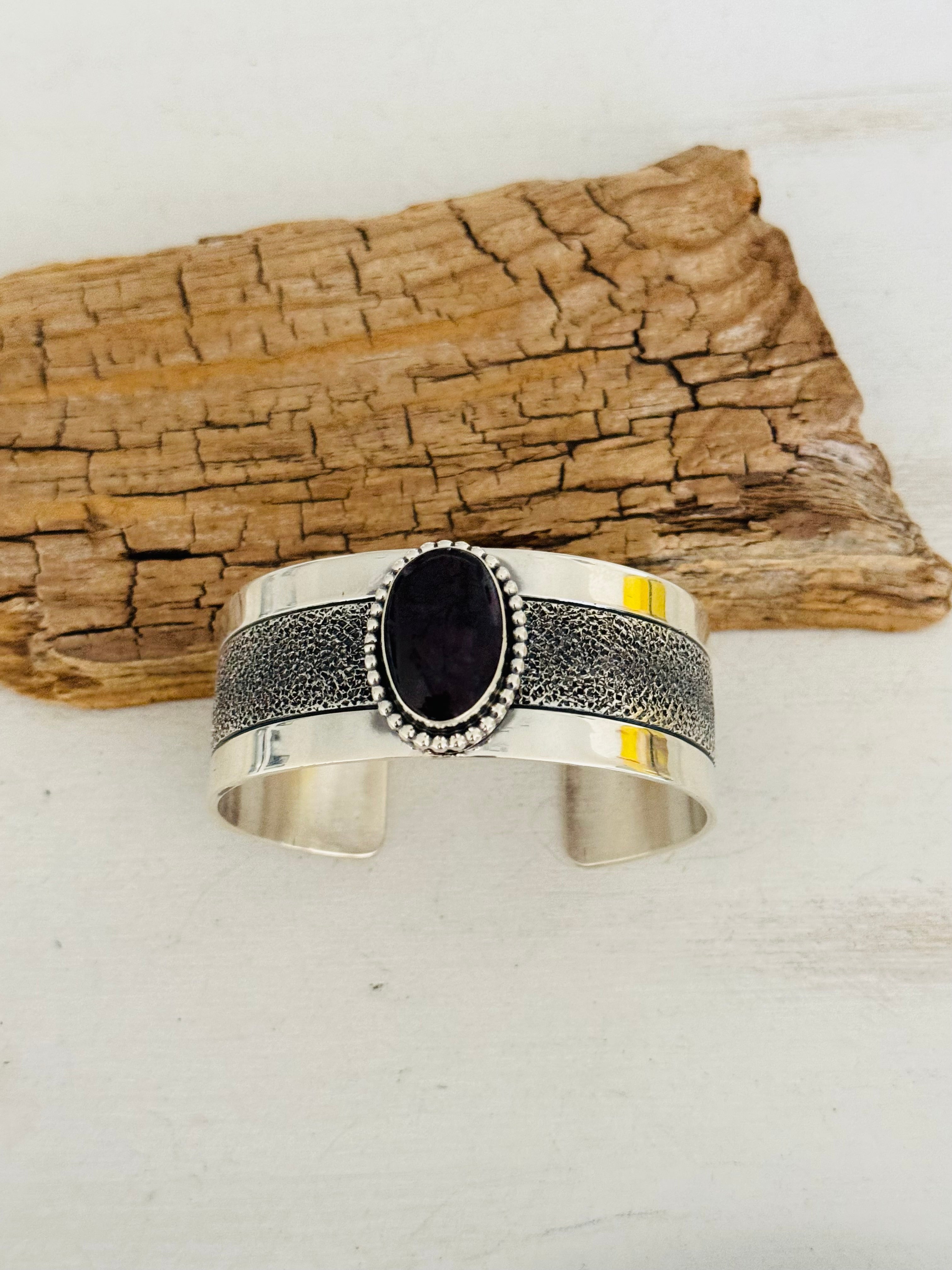 David Benally Sugilite & Sterling Silver Cluster Tufa Cast Cuff Bracelet
