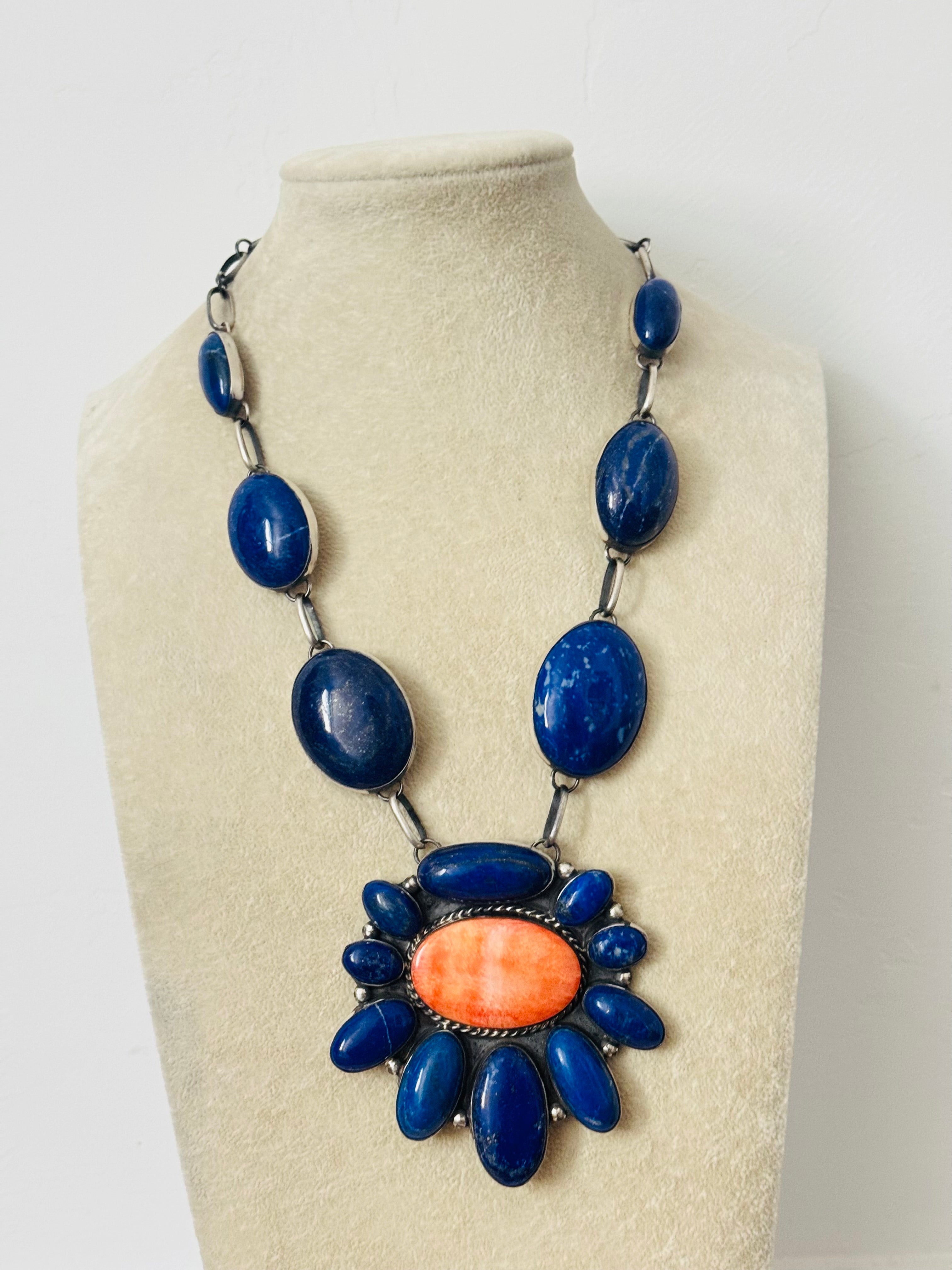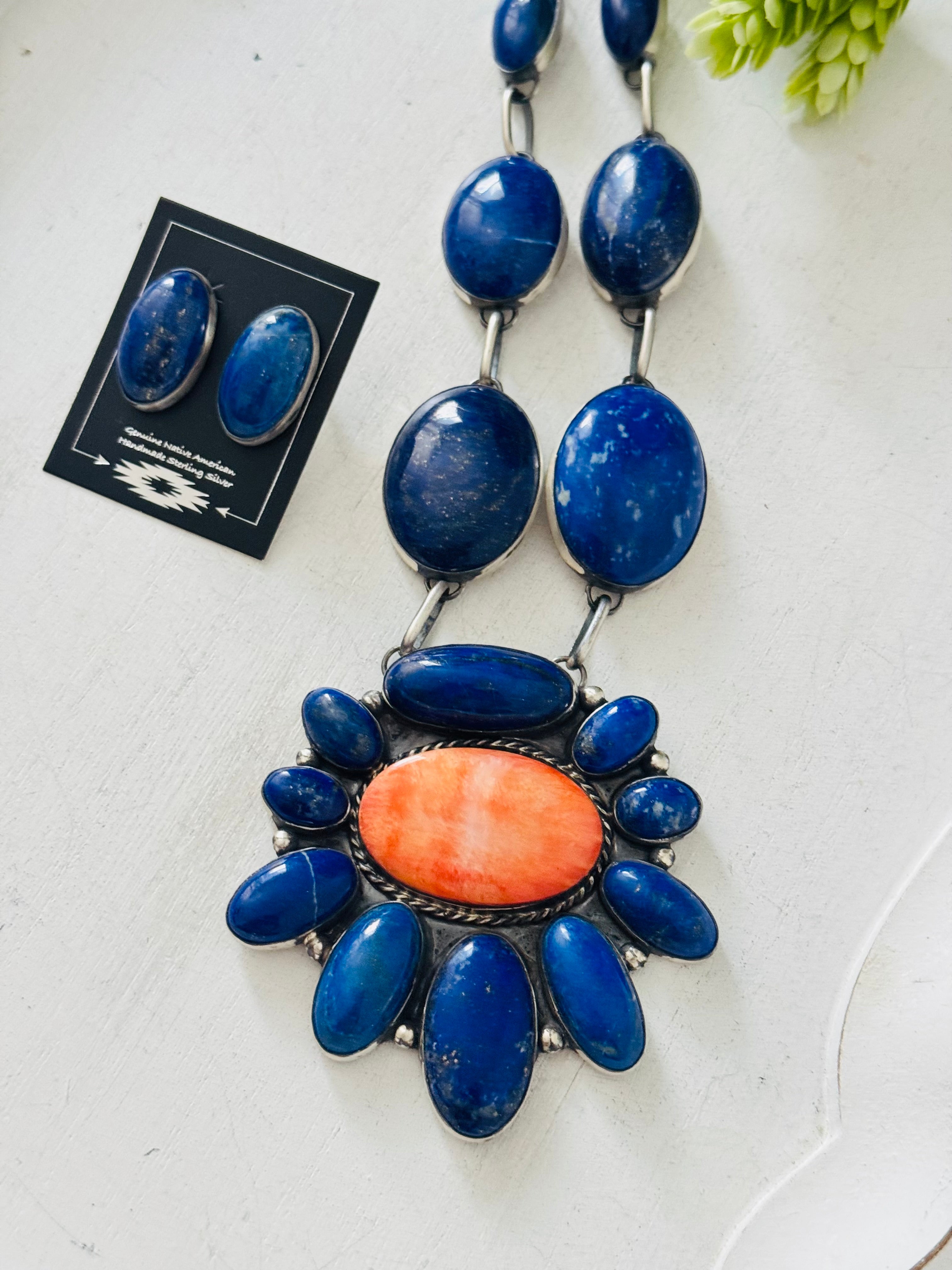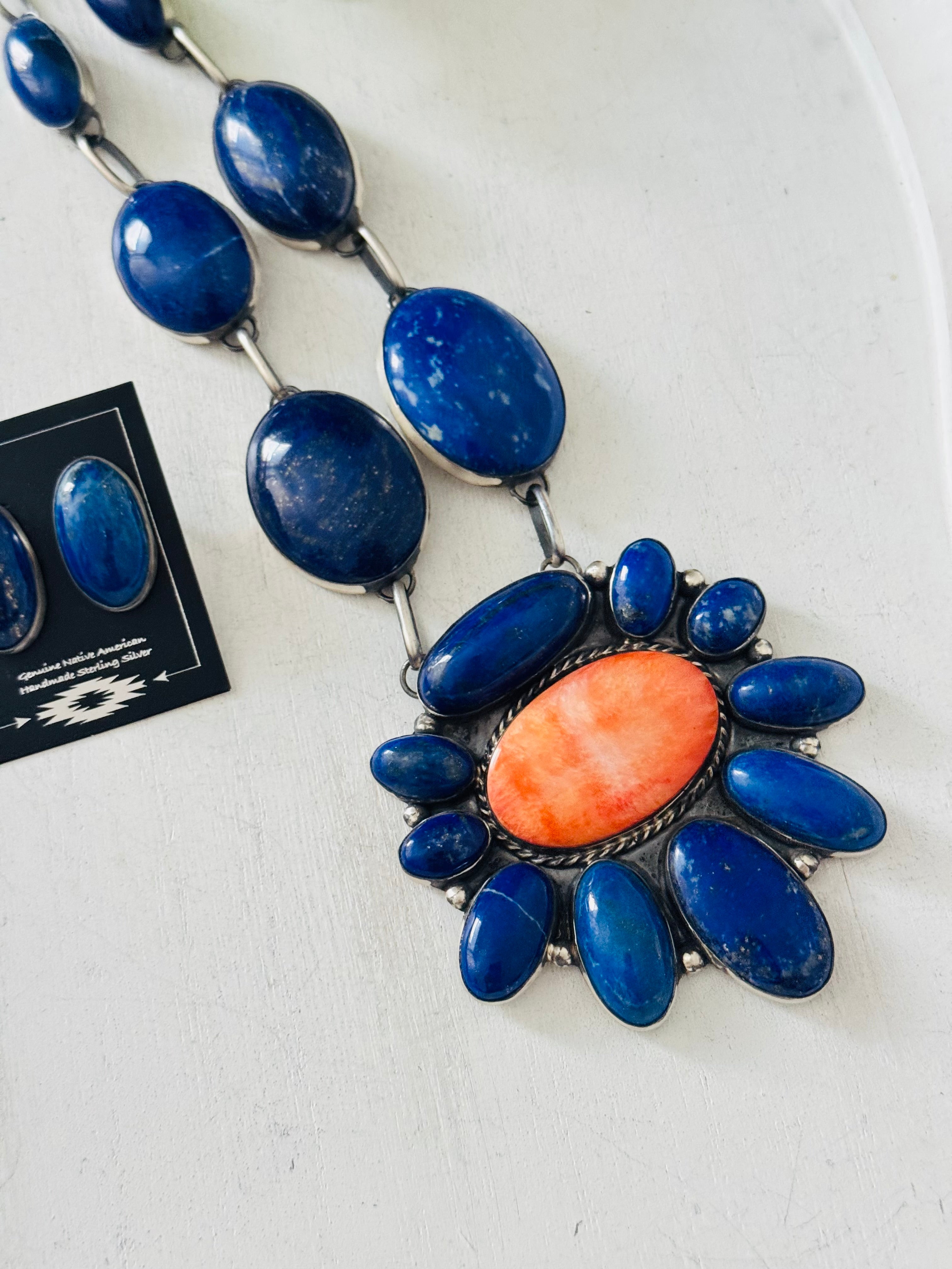 Navajo Made Multi Stone & Sterling Silver Cluster Necklace Set