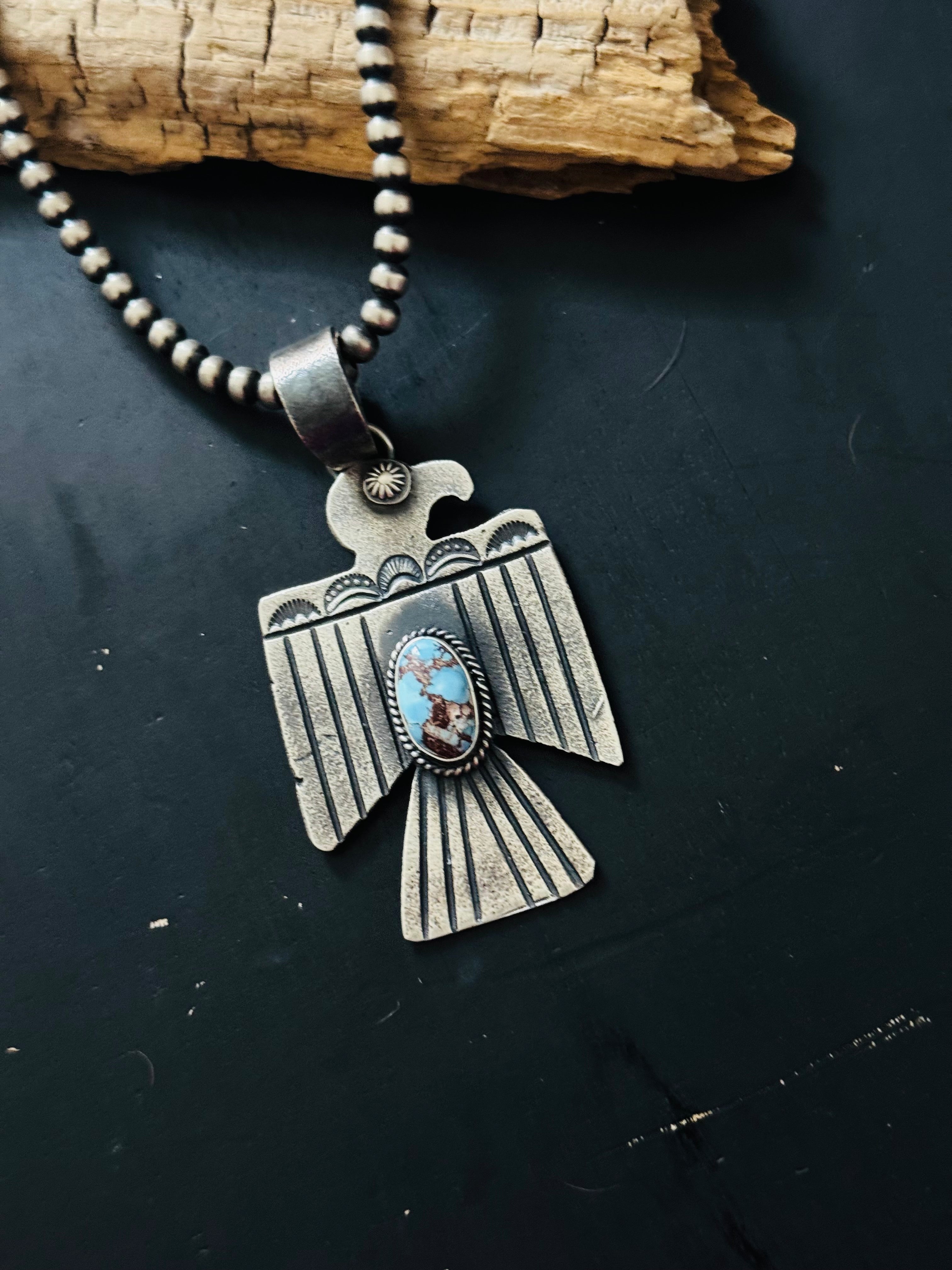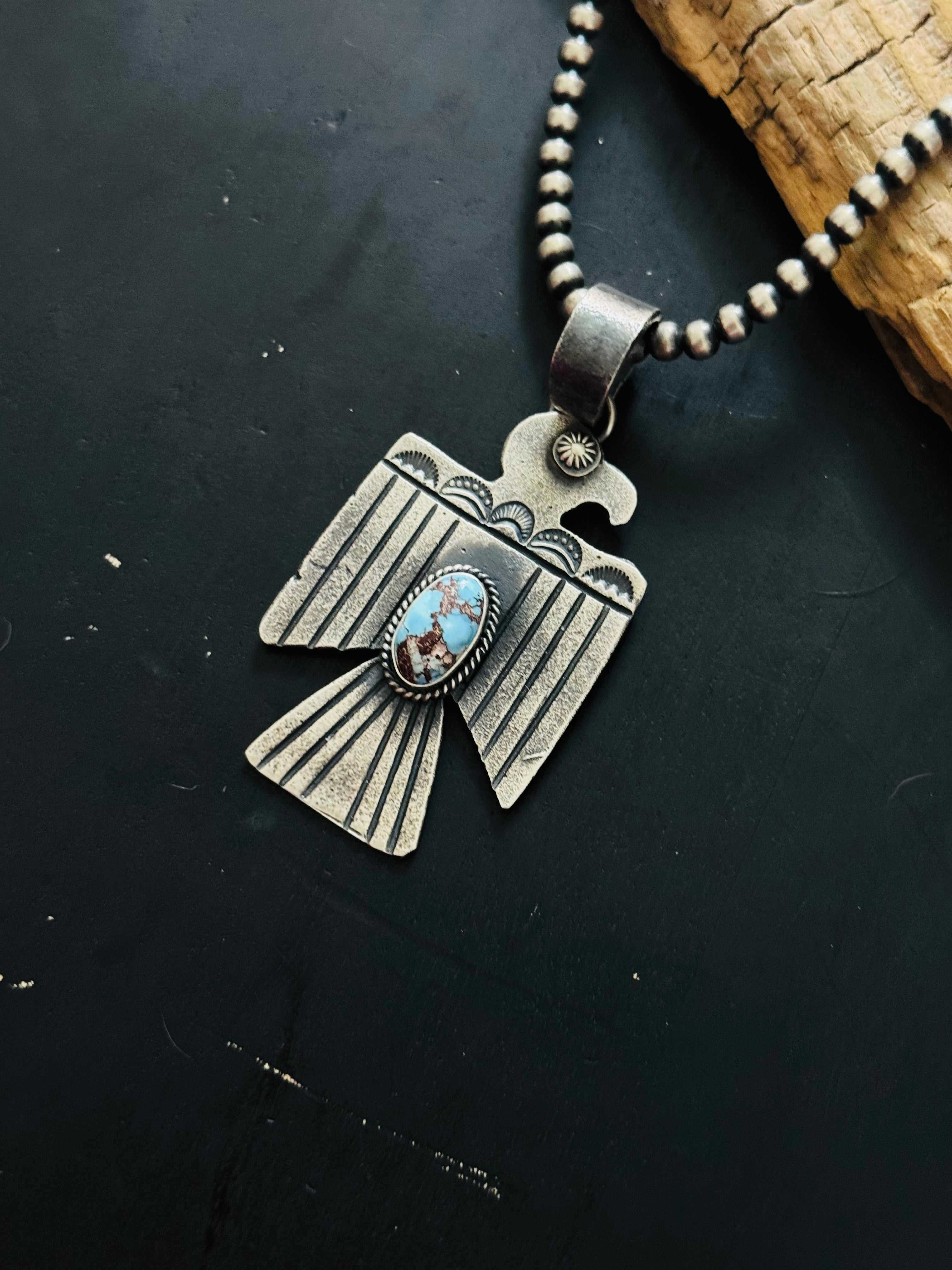 Kevin Billah Golden Hills Turquoise & Sterling Silver Thunderbird Pendant