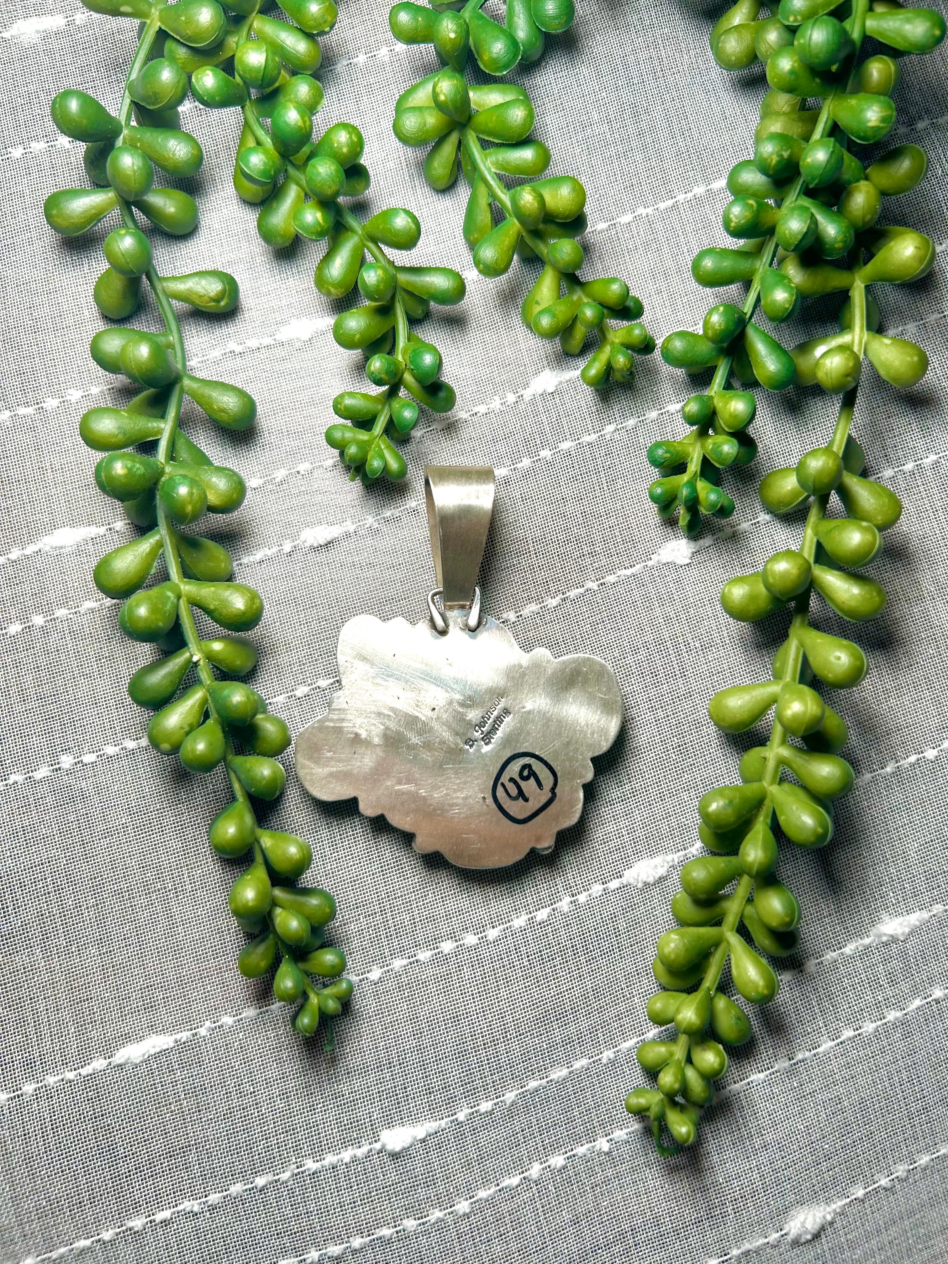 Bobby Johnson Sonoran Mountain Turquoise & Sterling Silver Pendant. It measures 2 3/4 inches long and 2 1/4 inches wide. Pendant Only! Signed by the artist and stamped sterling silver.