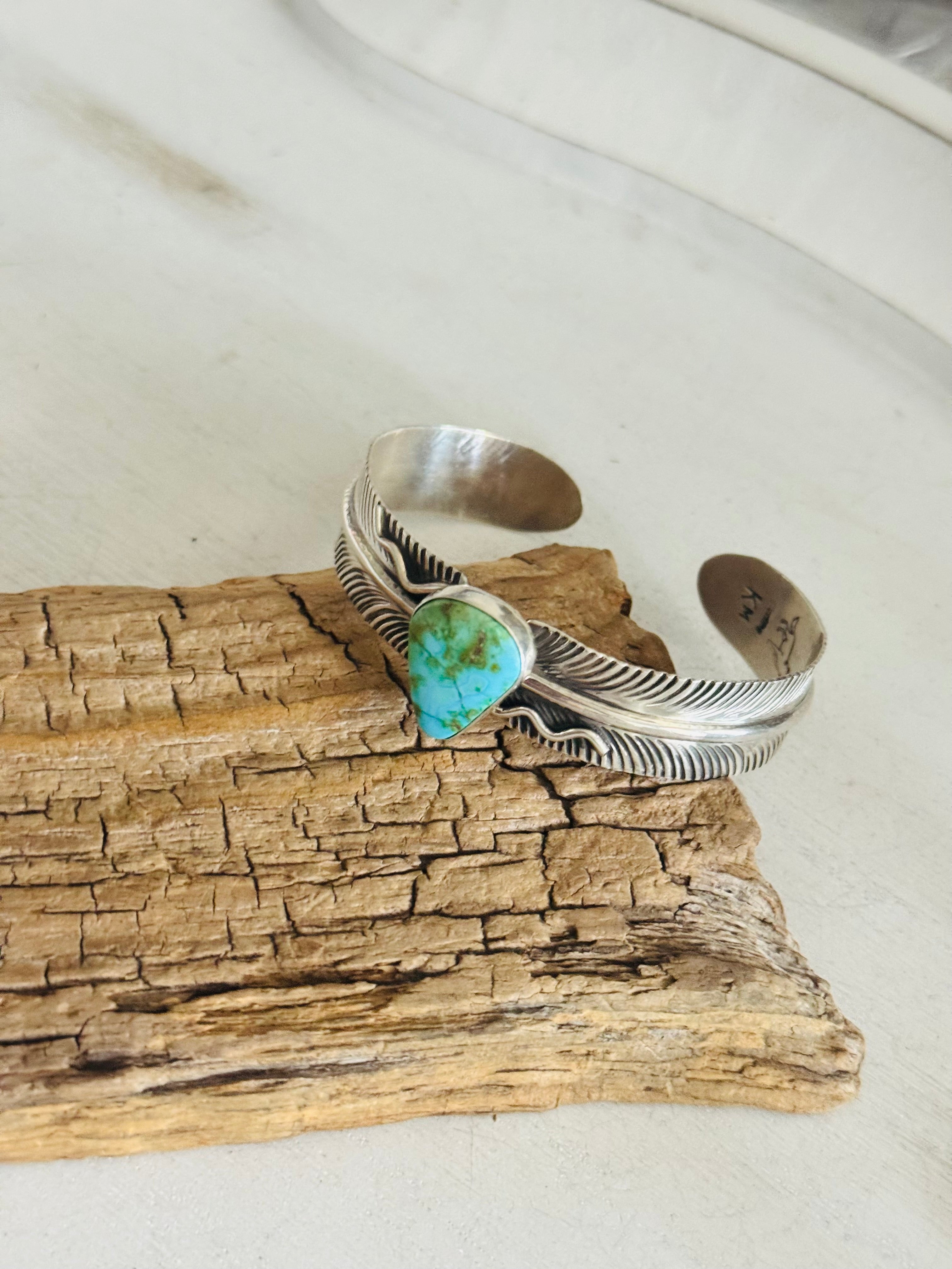 Koby Martinez Sonoran Mountain Turquoise & Sterling Silver Feather Cuff Bracelet