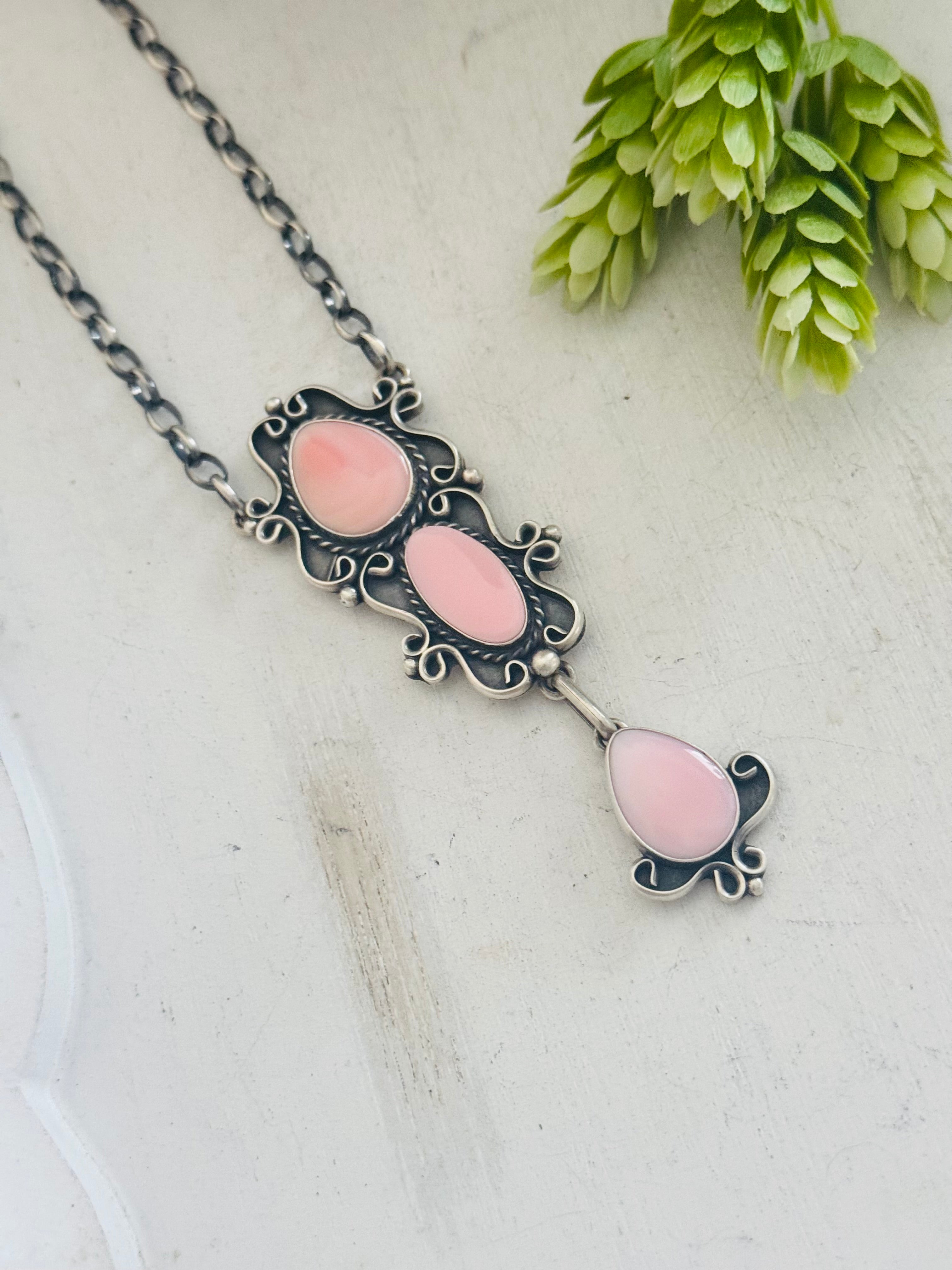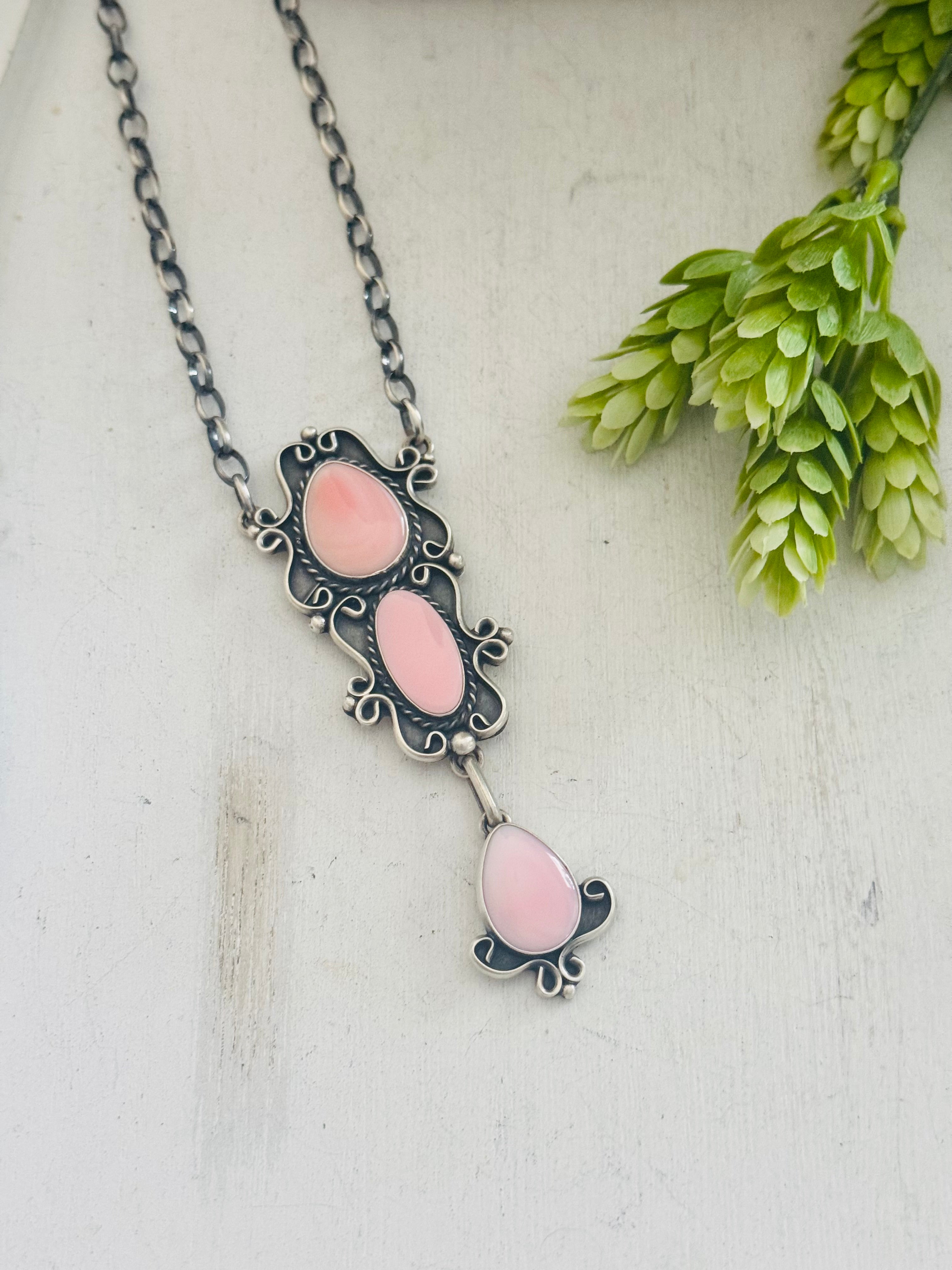 Larry Kaye Pink Conch & Sterling Silver Necklace