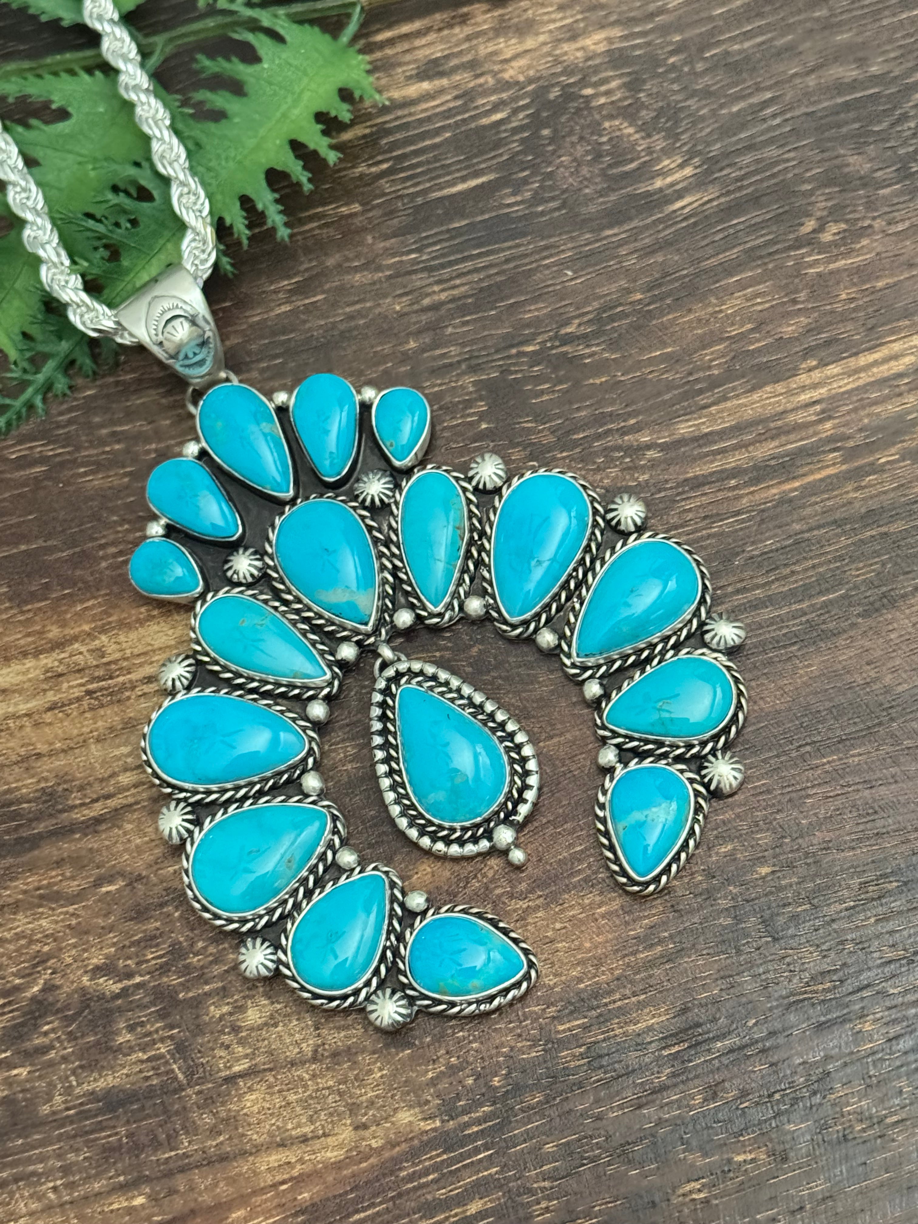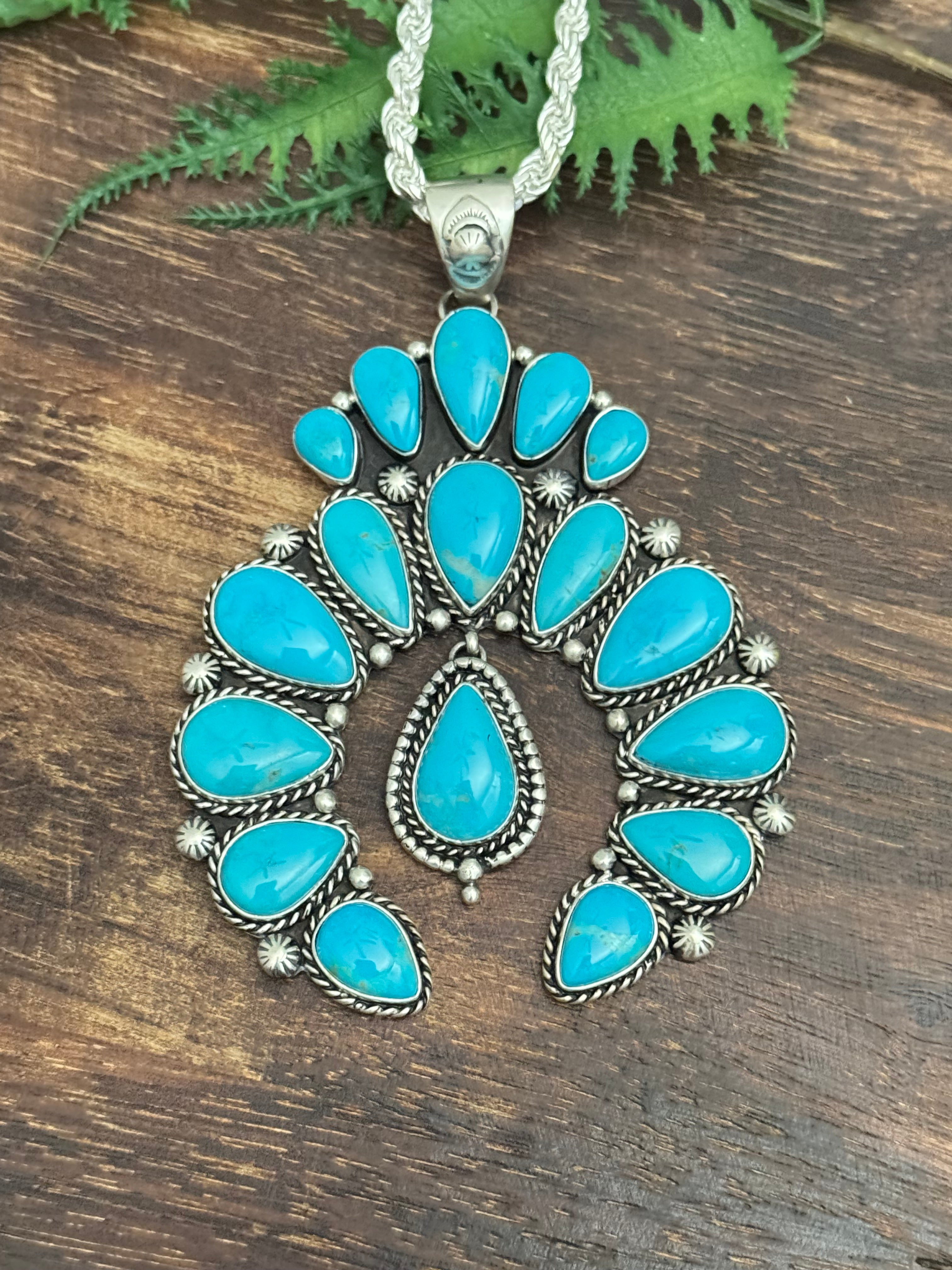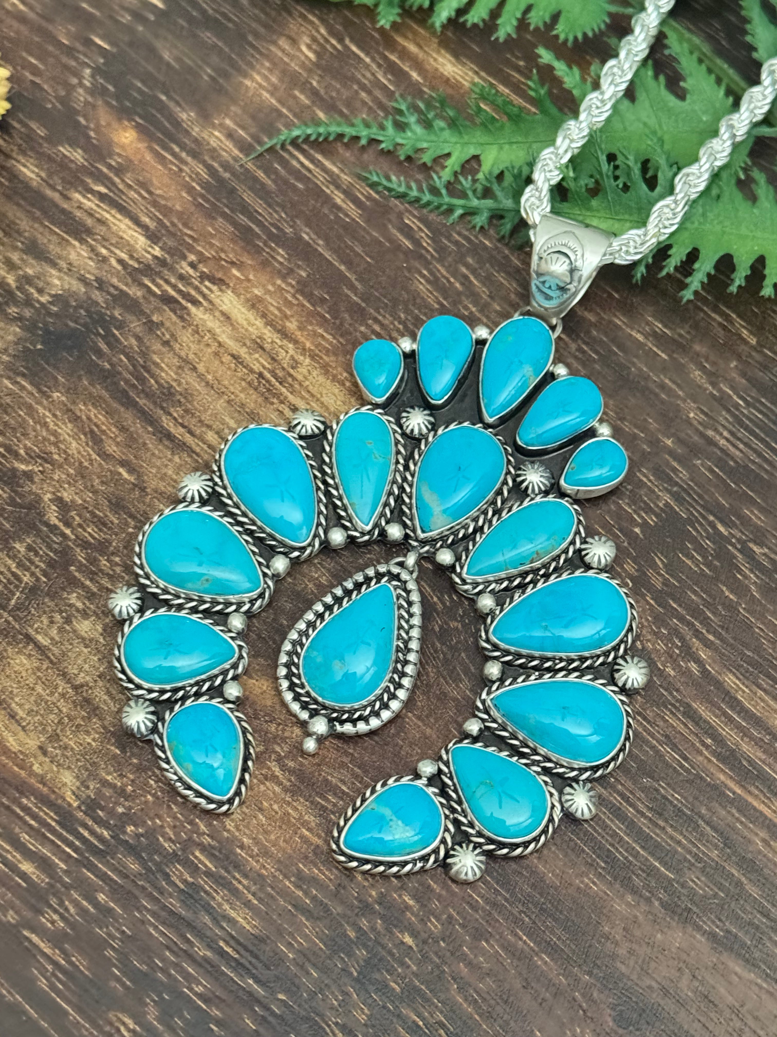 Larry Kaye Kingman Turquoise & Sterling Silver Cluster Naja Pendant