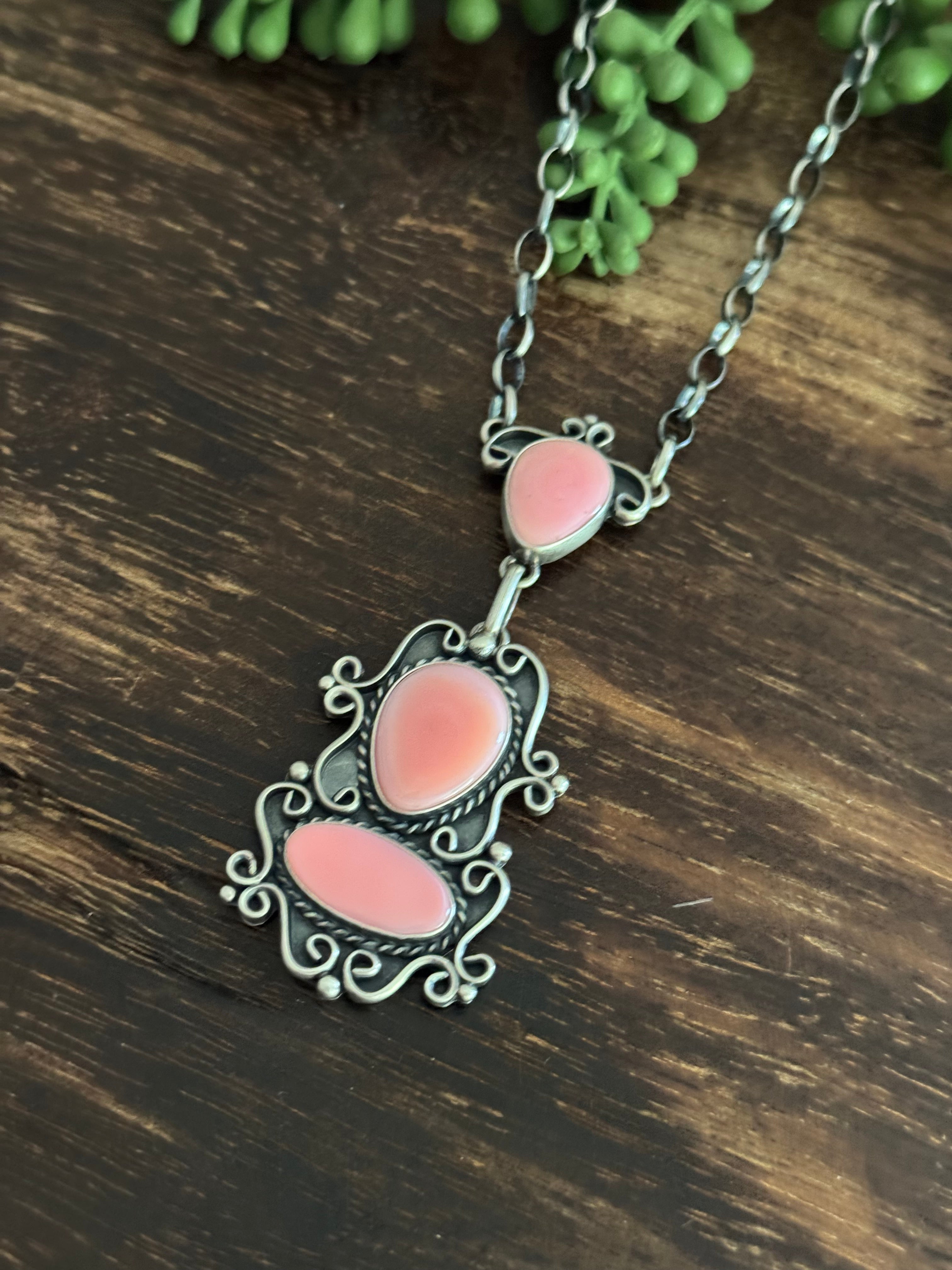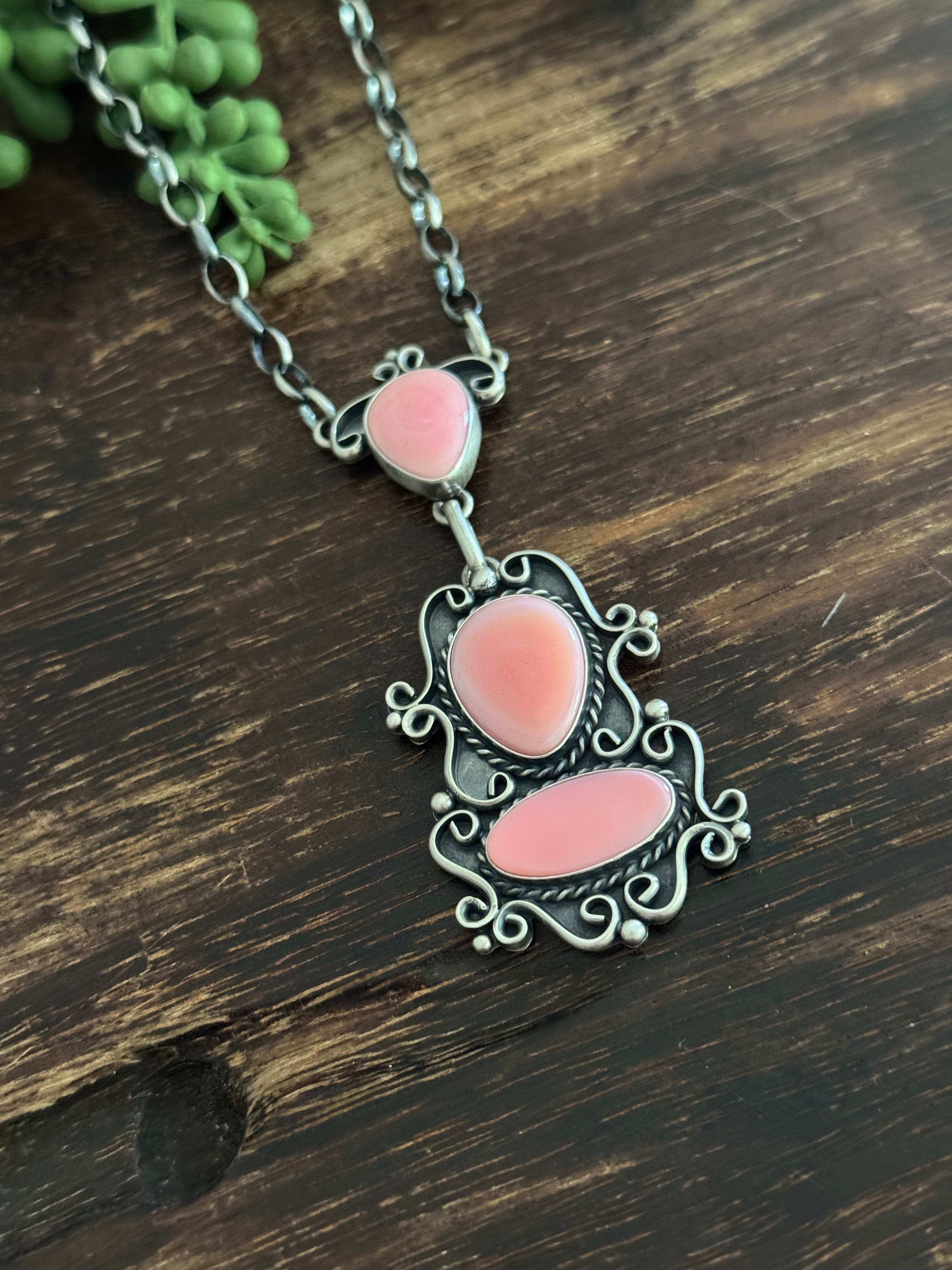 Larry Kaye Pink Conch & Sterling Silver Necklace