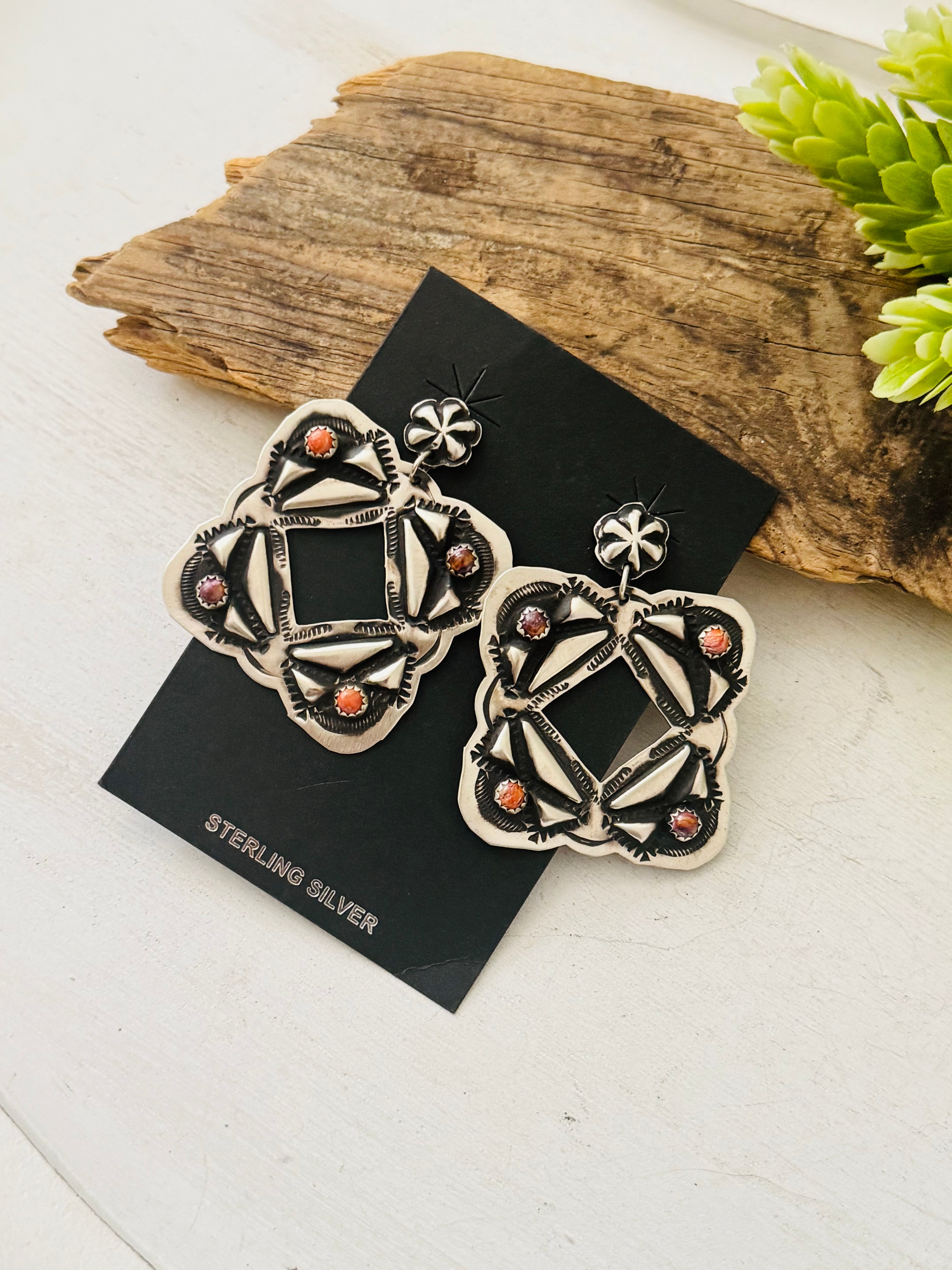 Leander Tahe Spiny Oys & Sterling Silver Concho Post Dangle Earrings