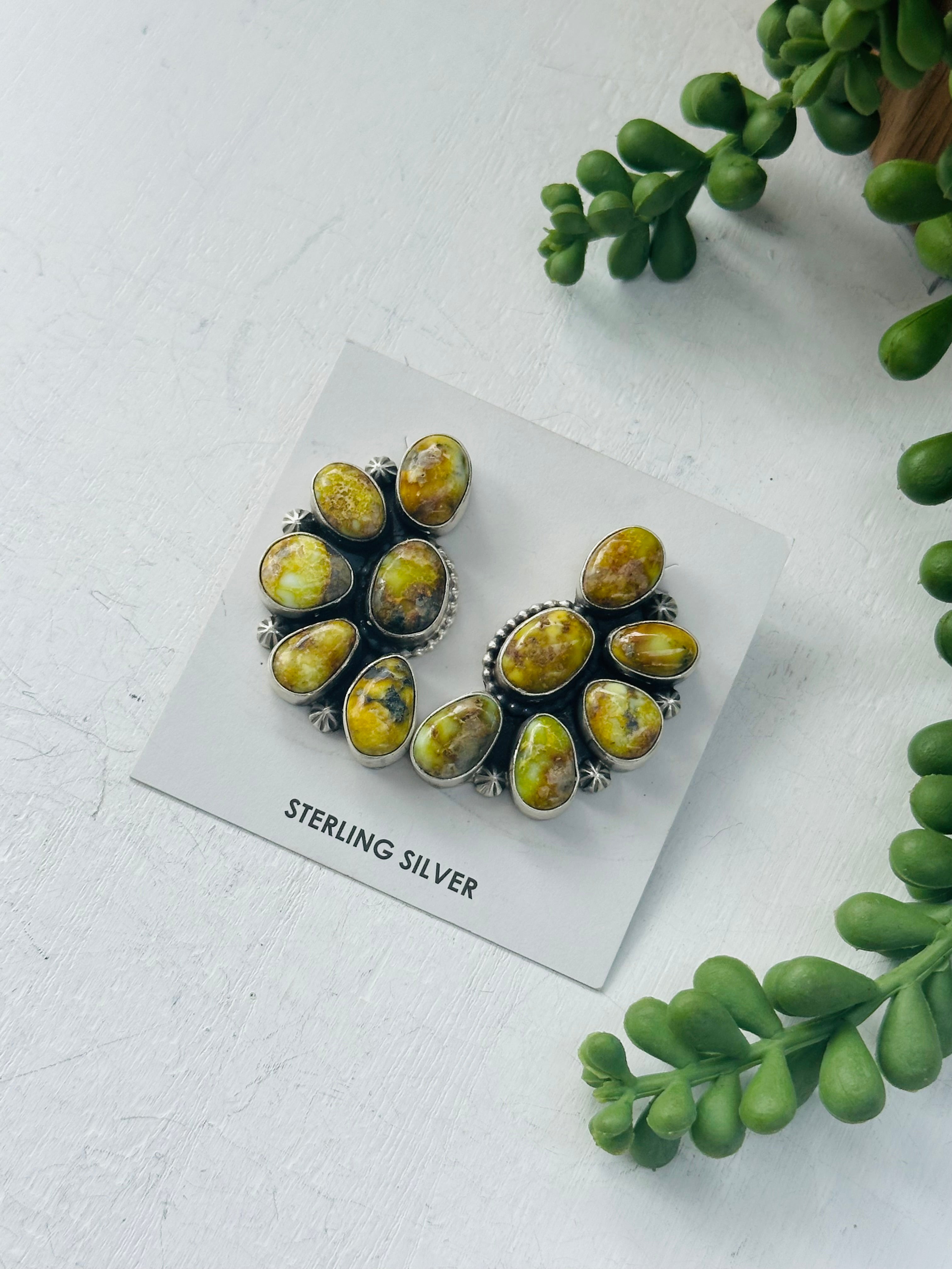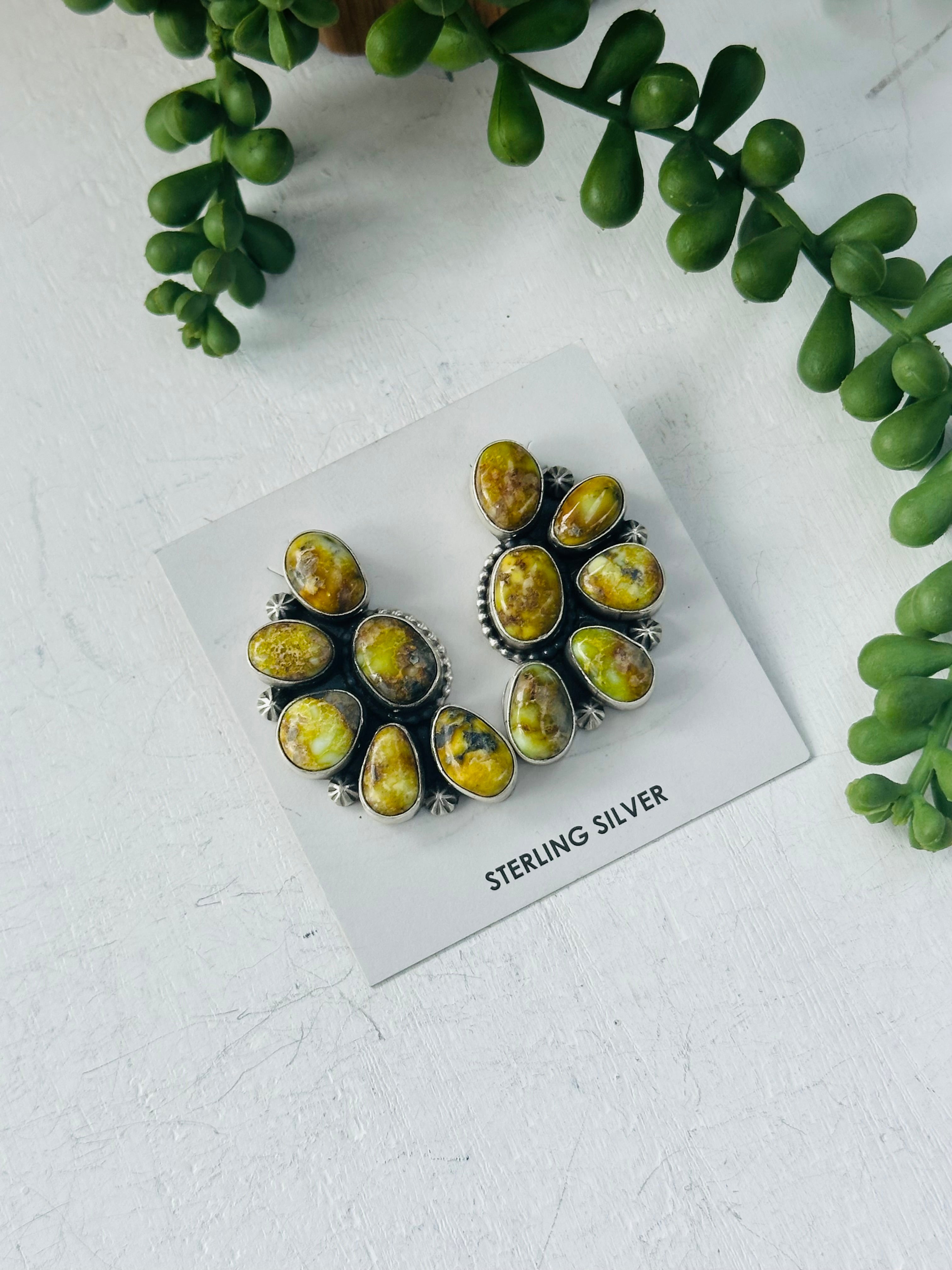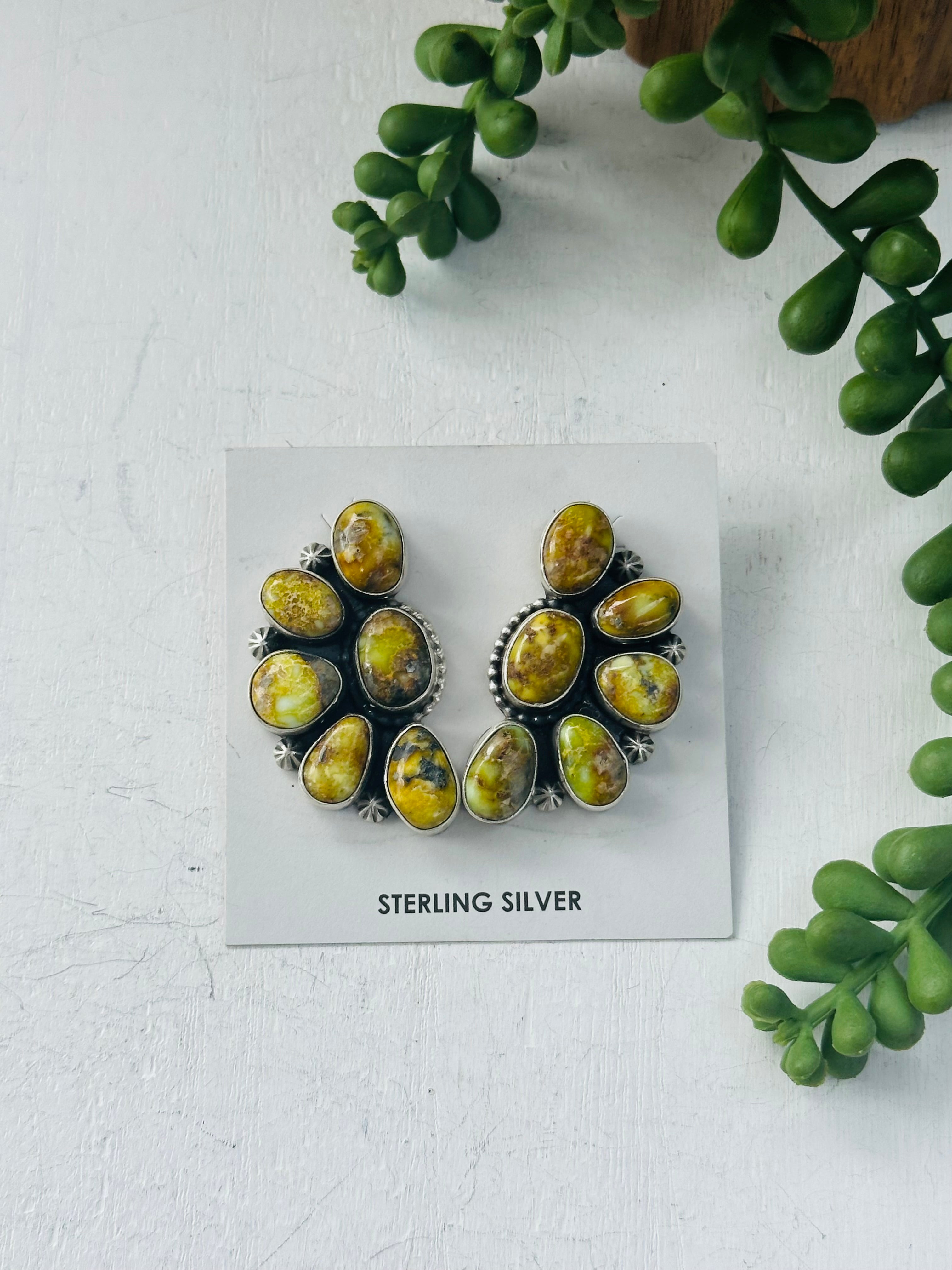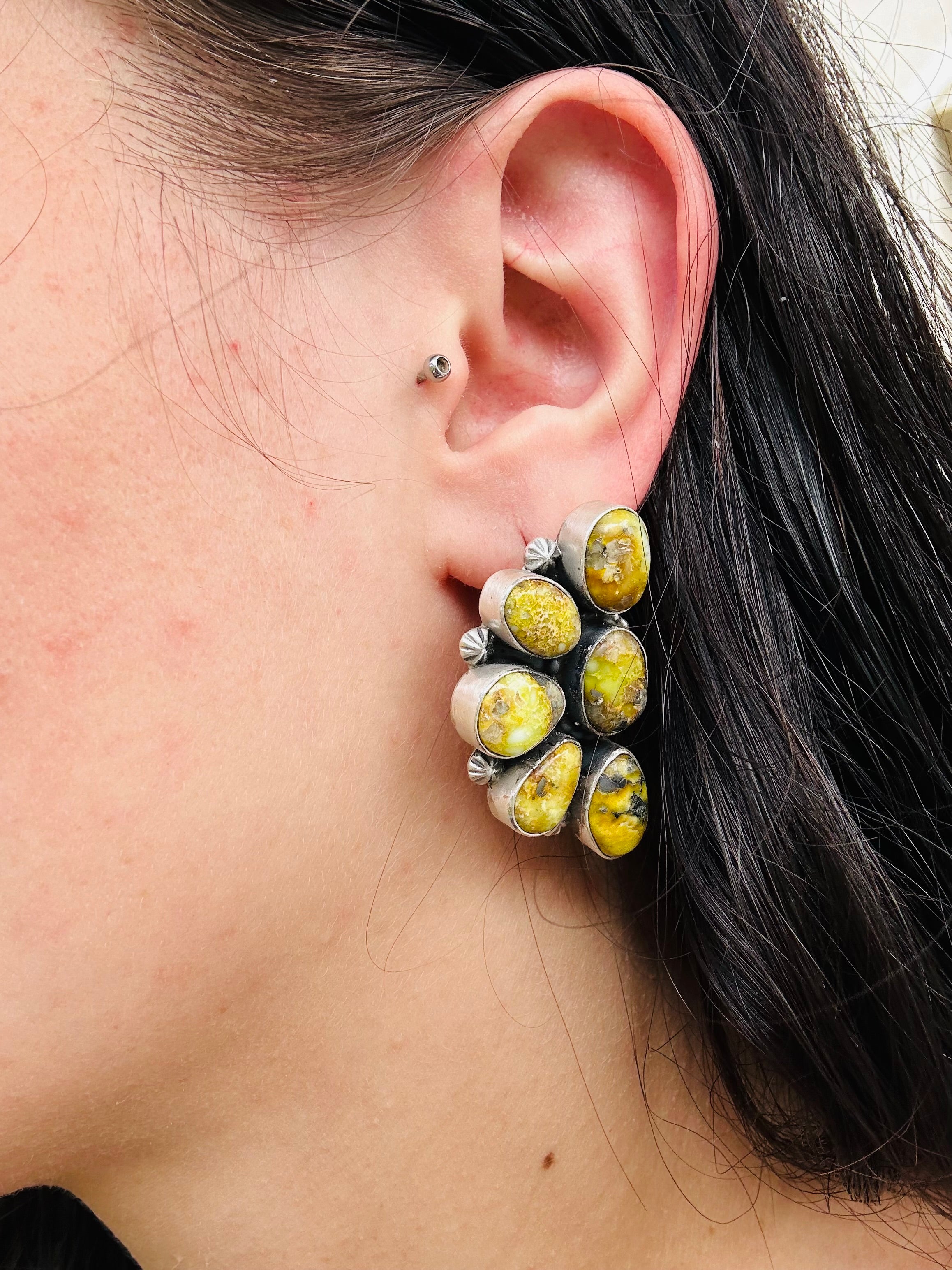 Timothy Yazzie Palomino Variscite & Sterling Silver Cluster Post Dangle Earrings